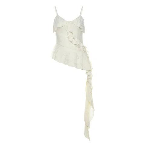 Top corto ajustado con volantes y tirantes finos de verano de Pure Desire Wind Sweet Spice Girl para mujer
