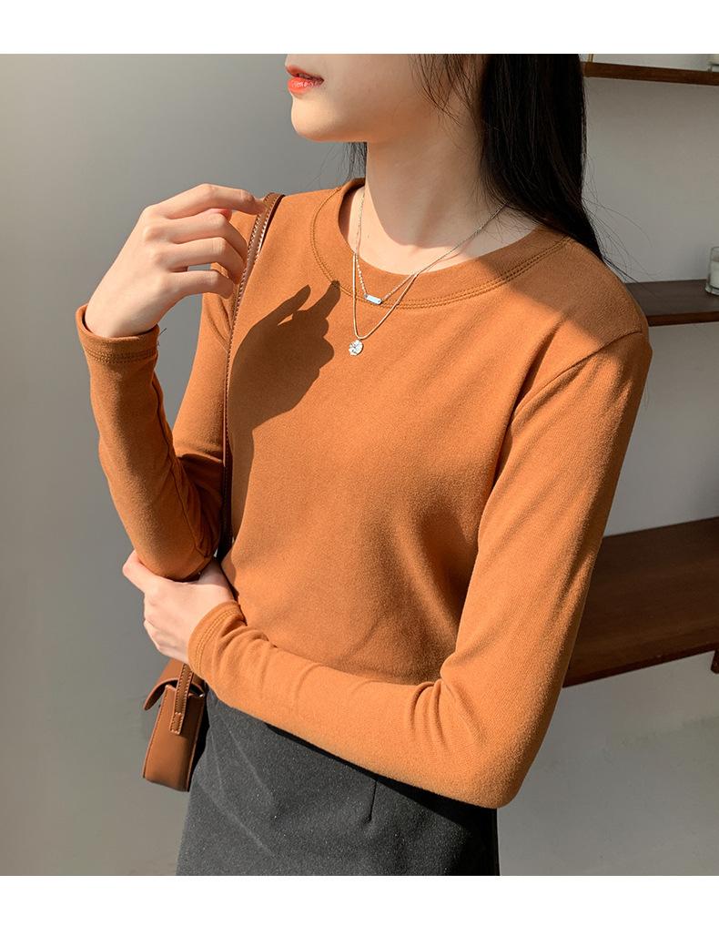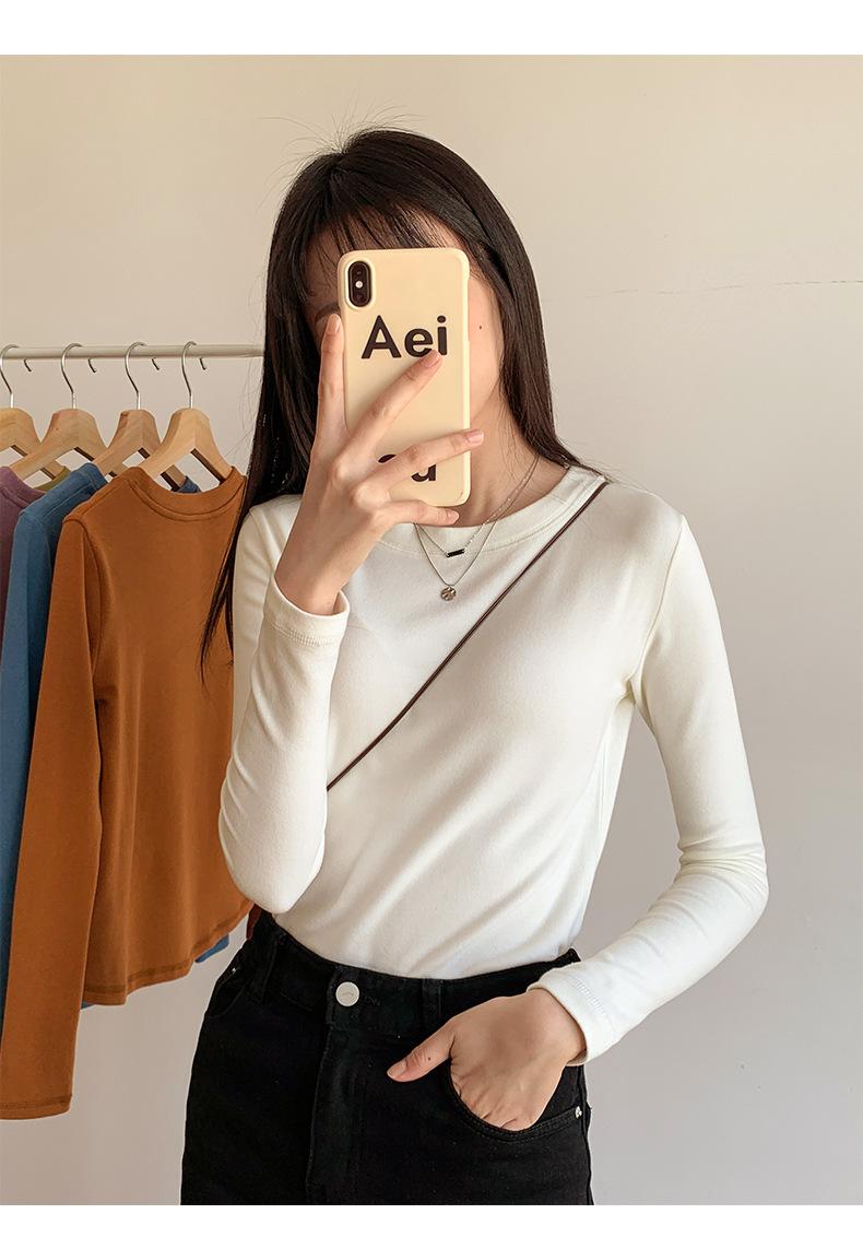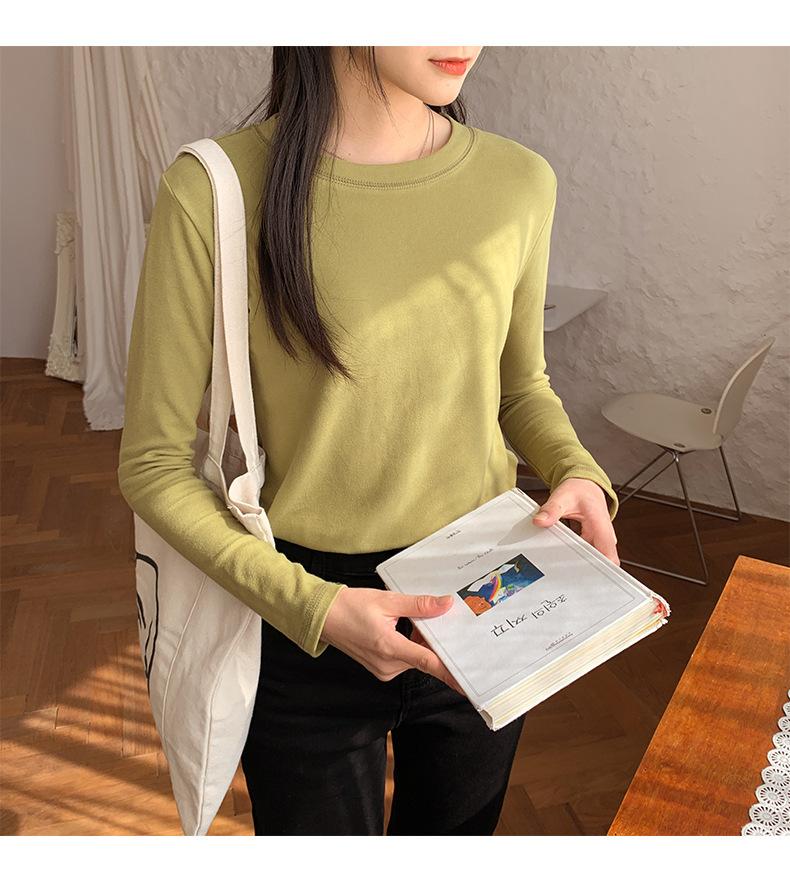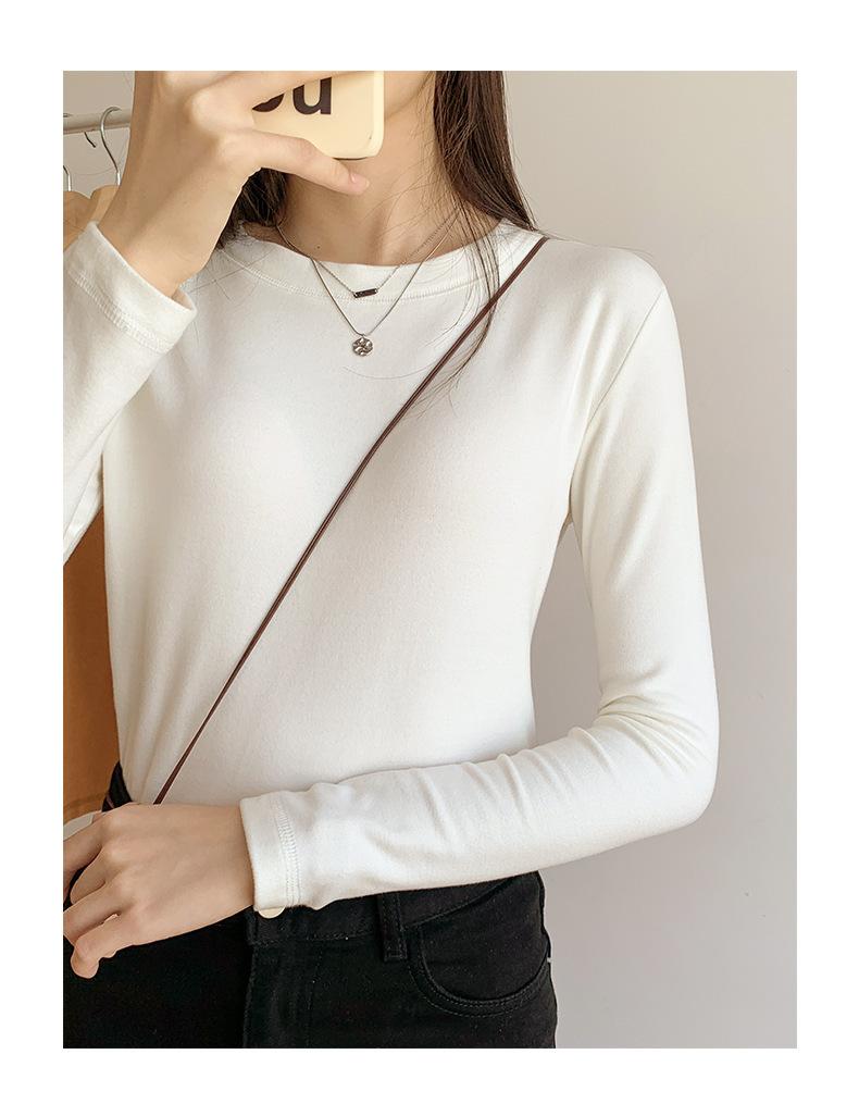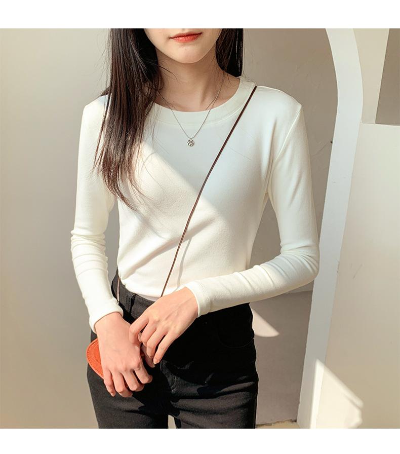 Camiseta básica blanca de manga larga con cuello redondo para mujer, otoño e invierno 2022, con base de terciopelo de doble cara y suave cera