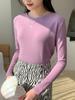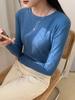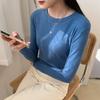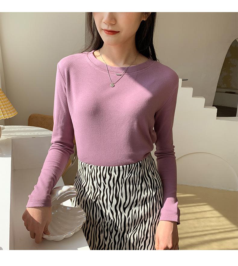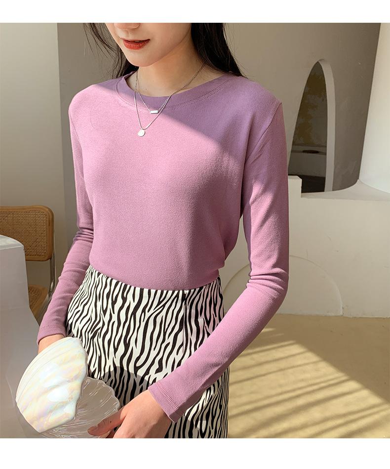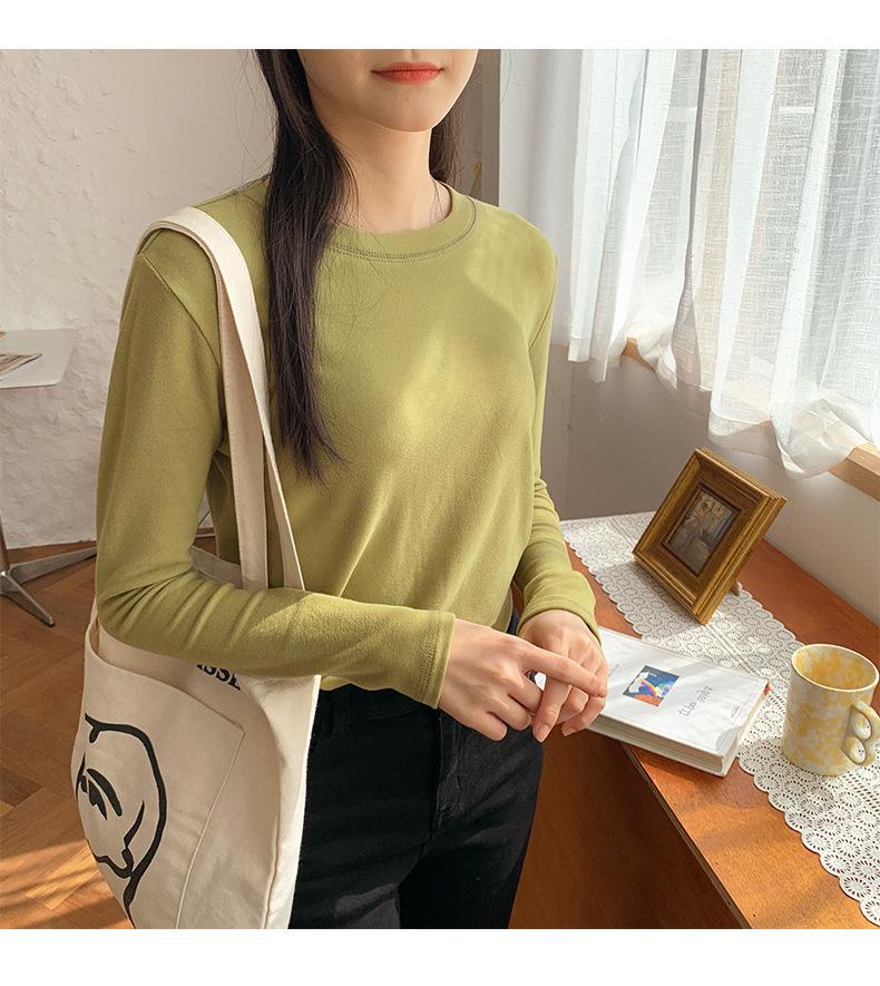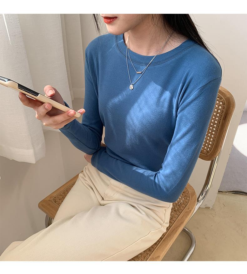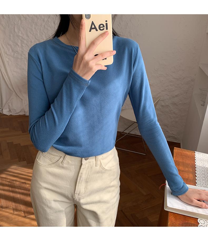Camiseta básica blanca de manga larga con cuello redondo para mujer, otoño e invierno 2022, con base de terciopelo de doble cara y suave cera