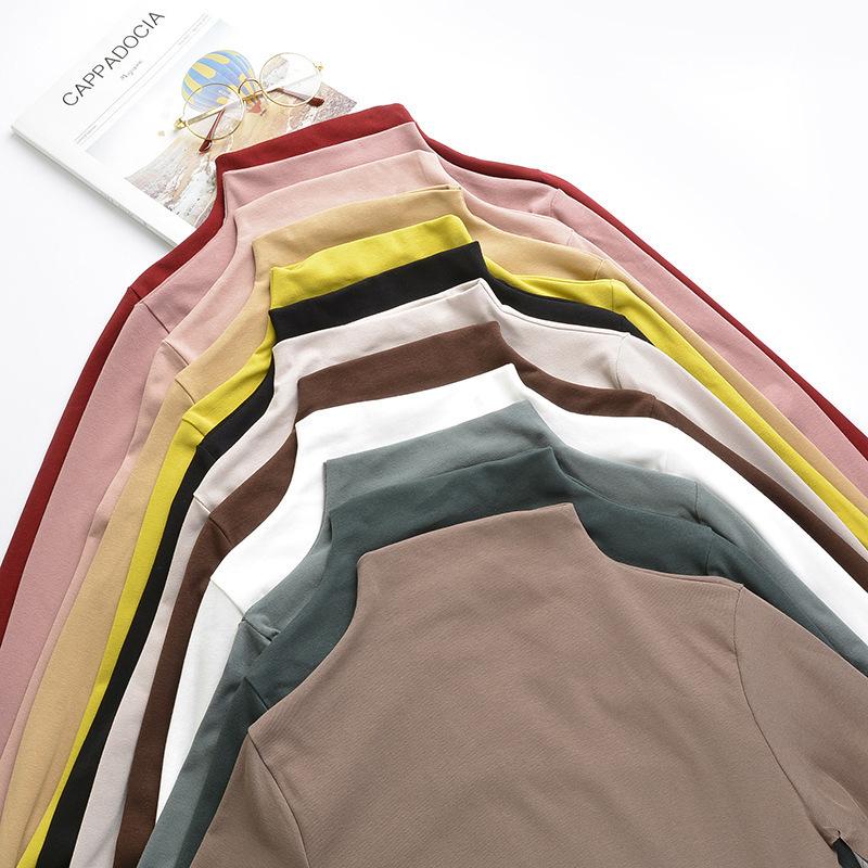 Camiseta básica de cuello alto 2025 para mujer Otoño e Invierno Color puro Manga larga Camiseta para mujer Nuevo estilo coreano Ajuste ceñido Top versátil