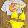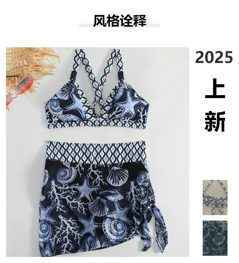 Traje de Baño Sexy de Dos Piezas de Moda Europea y Americana de Comercio Exterior 2025 Bikini para Mujer Traje de Baño Estampado Alta Elasticidad Secado Rápido