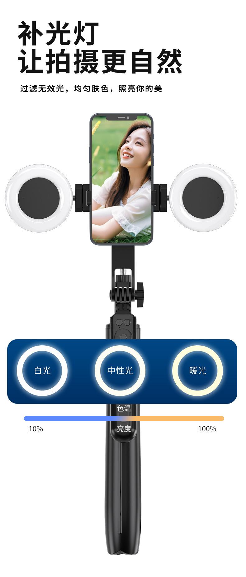 A17 selfie stick bracket [aluminum alloy tube] (double light model) 1.8m