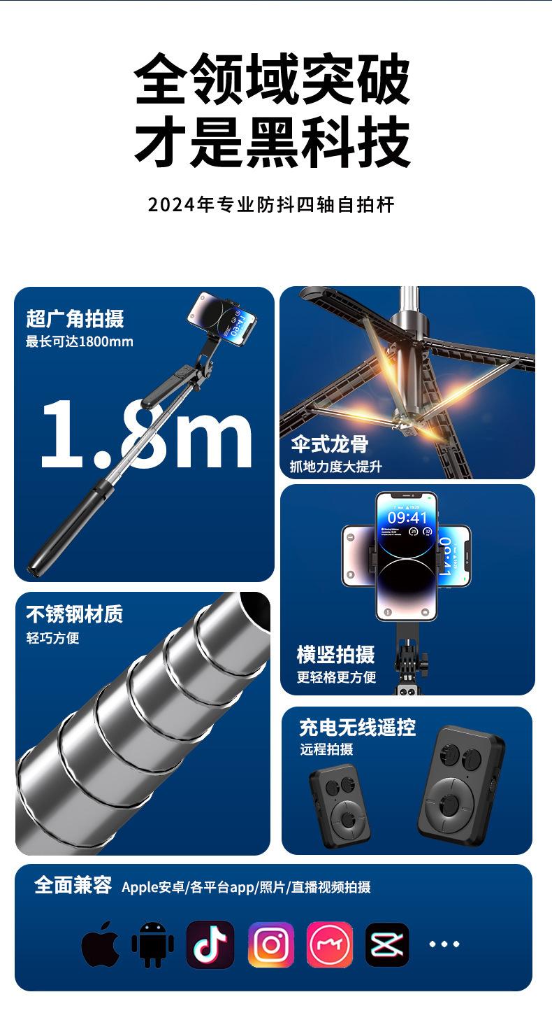 B17 selfie stick bracket [stainless steel tube] (without light) 1.8m, B17 selfie stick bracket [stainless stee...