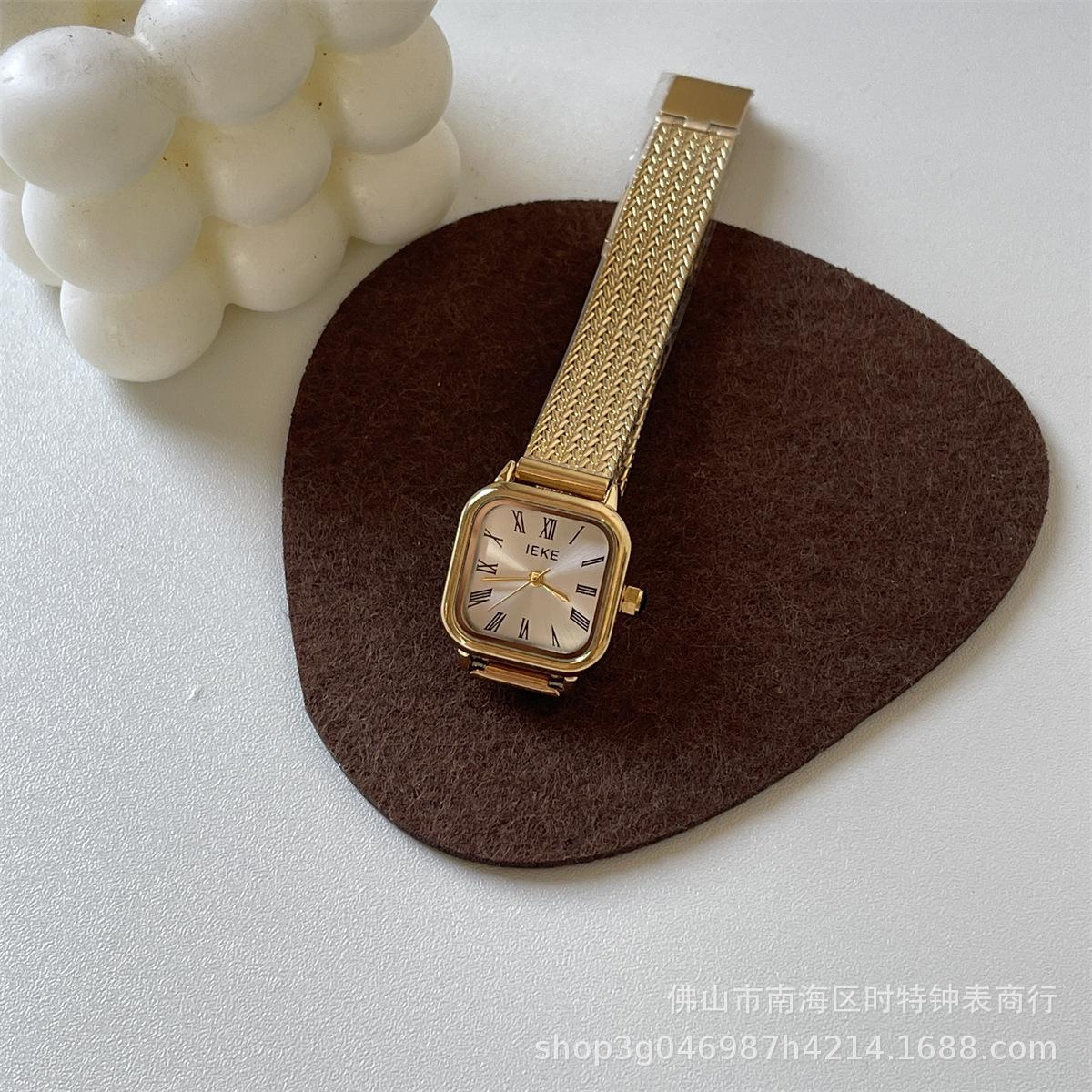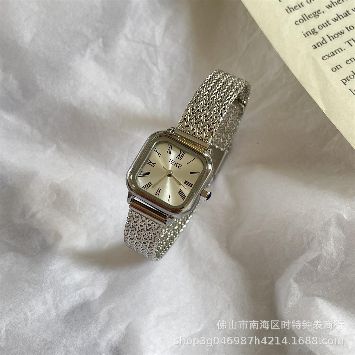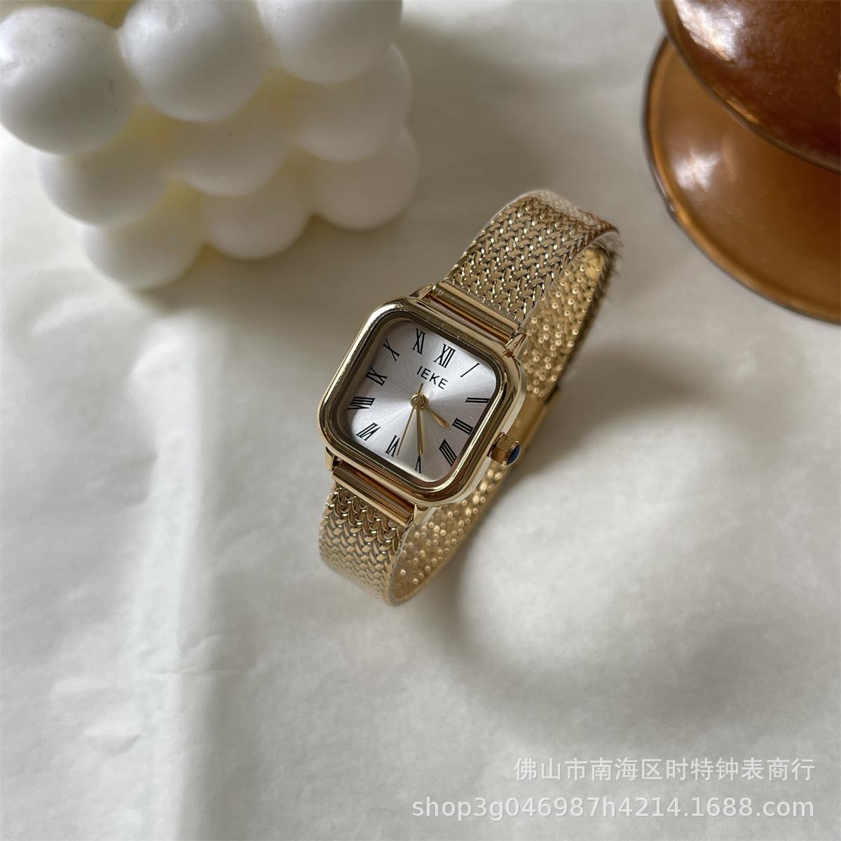 IEKE otoño e invierno Nuevo reloj retro romano con correa de acero para estudiante, simple, artístico, de alta gama, cuarzo de lujo ligero