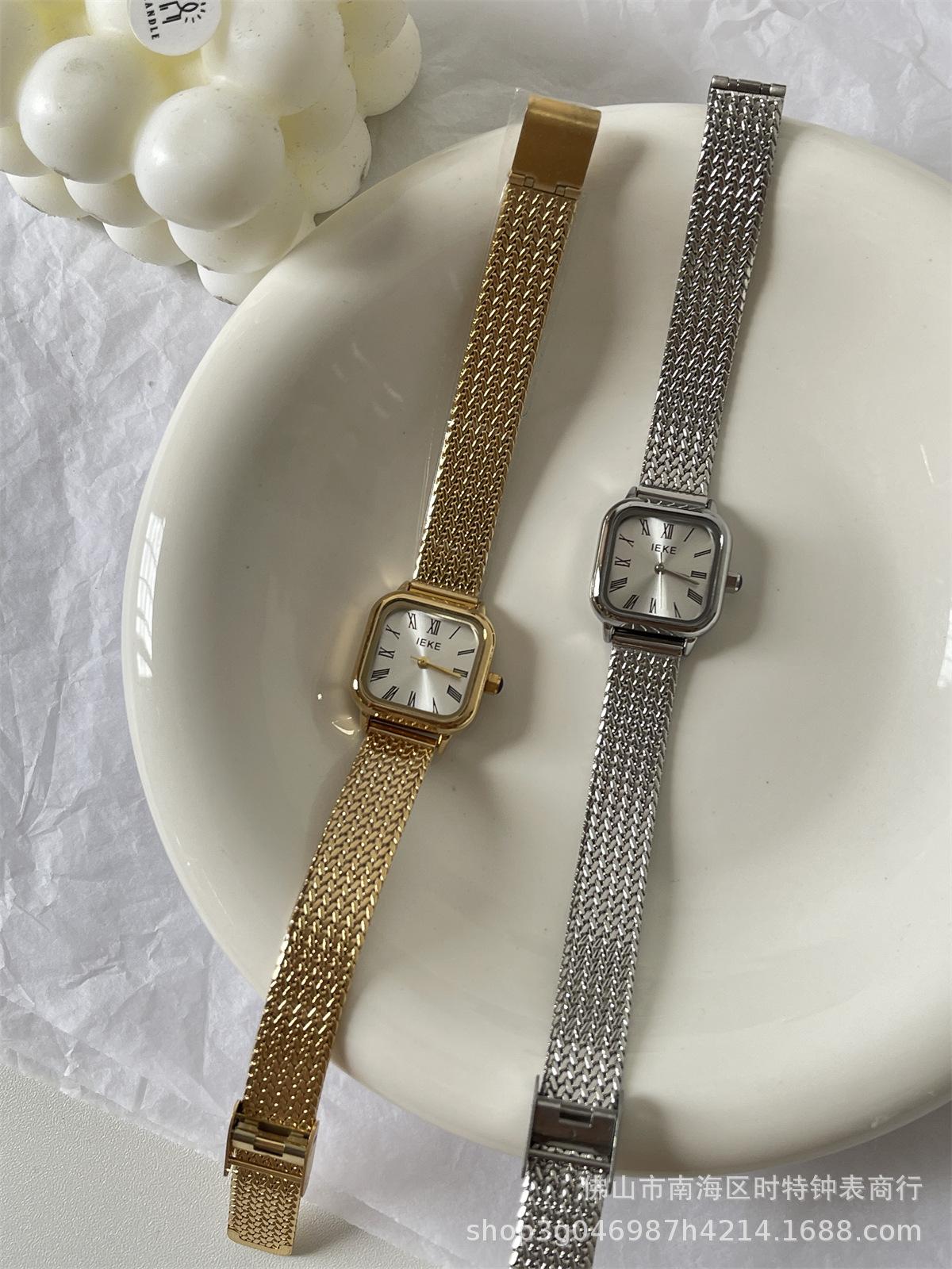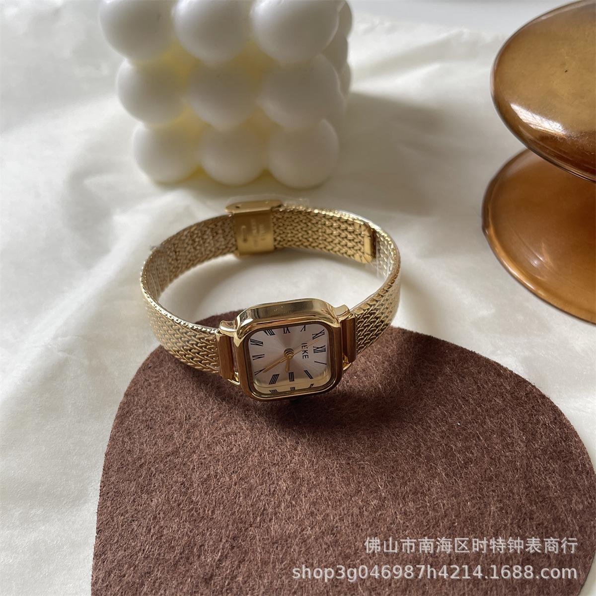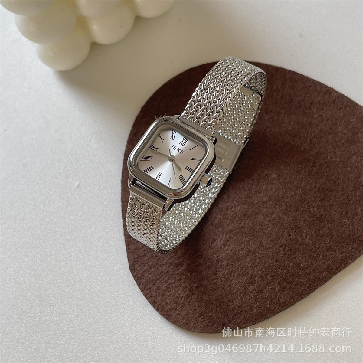 IEKE otoño e invierno Nuevo reloj retro romano con correa de acero para estudiante, simple, artístico, de alta gama, cuarzo de lujo ligero