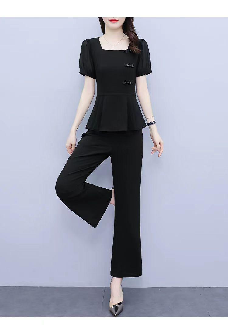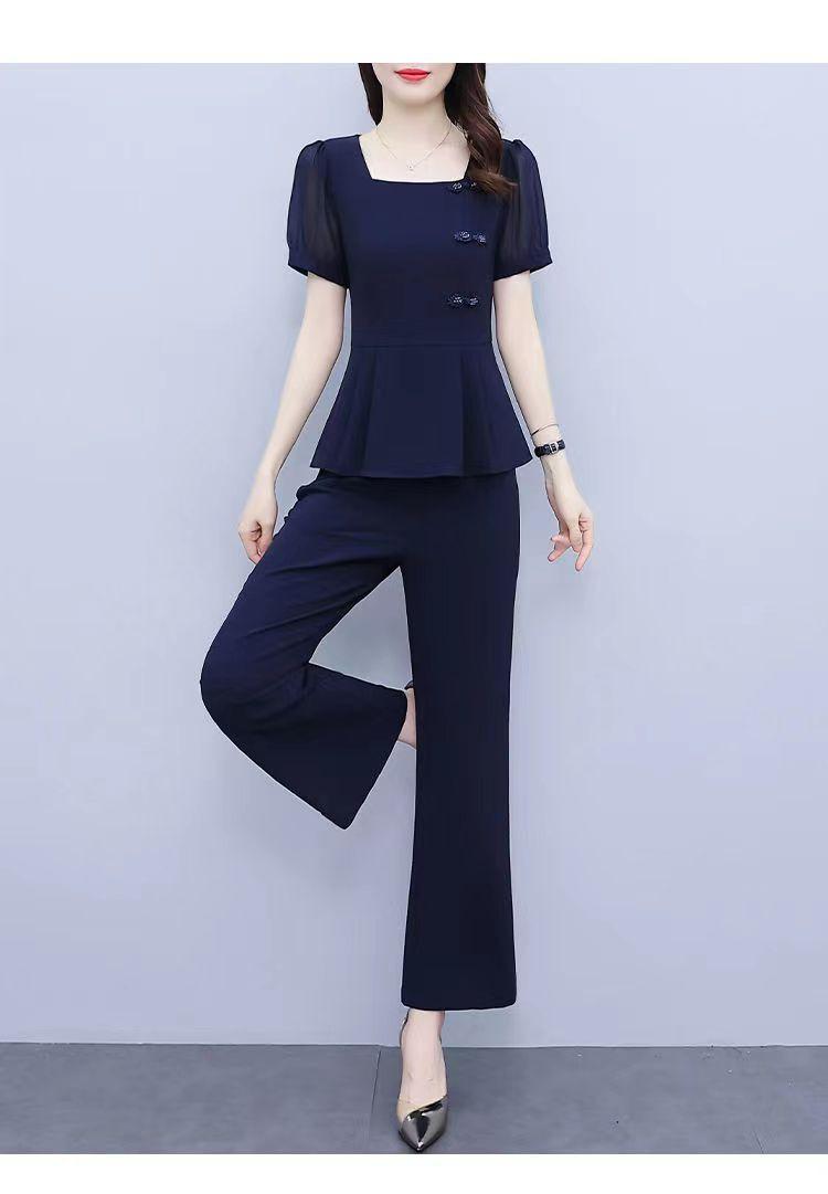 Transfronterizo 2023 verano mujer nueva moda traje estilo extranjero temperamento reductor de edad adelgazante talla grande mujer color sólido tendencia coreana