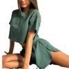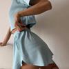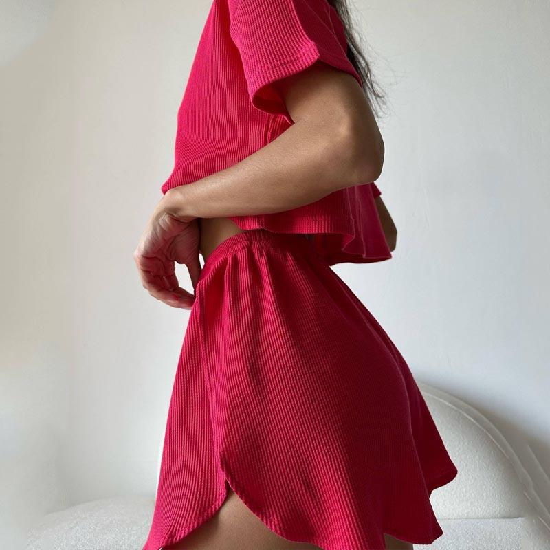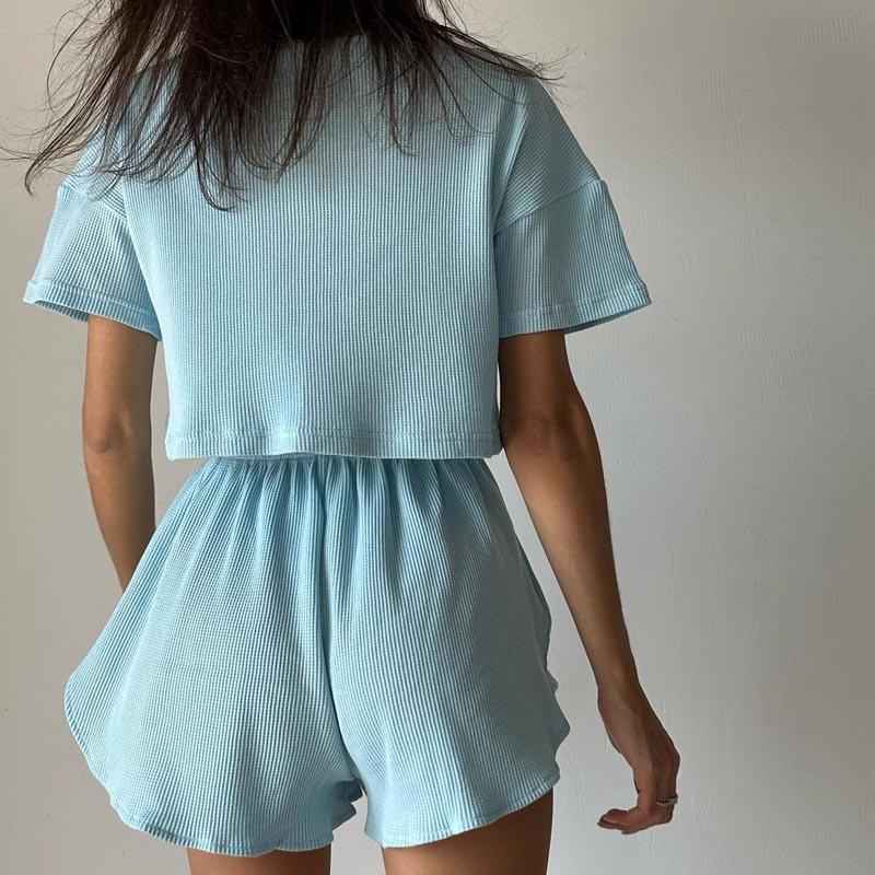 Conjunto de dos piezas de pijama de verano de manga corta y pantalones cortos de color sólido, cómodo y sexy, ropa de hogar transfronteriza europea y americana para mujer.