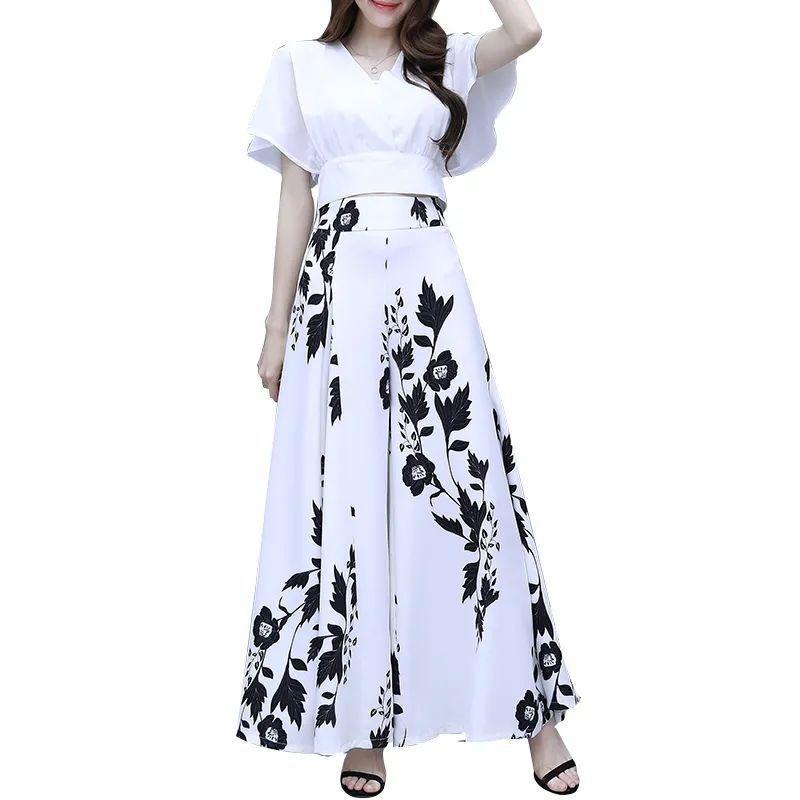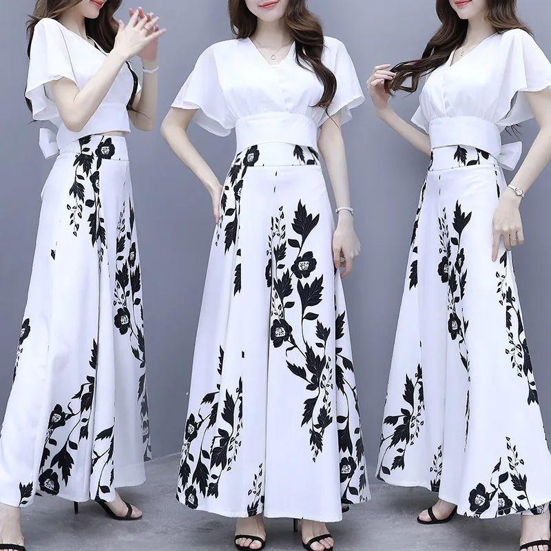 [1084 recompra] pantalones de pierna ancha estampados de verano 2024 verano nueva moda pantalones con colgante estilo extranjero para mujer