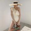 Traje de baño de una pieza ajustado con hombros descubiertos y espalda descubierta, estilo coreano, negro, para mujer, con almohadilla para el pecho.