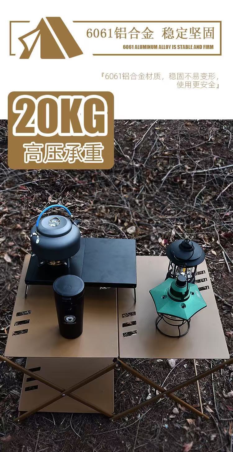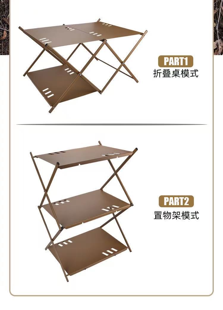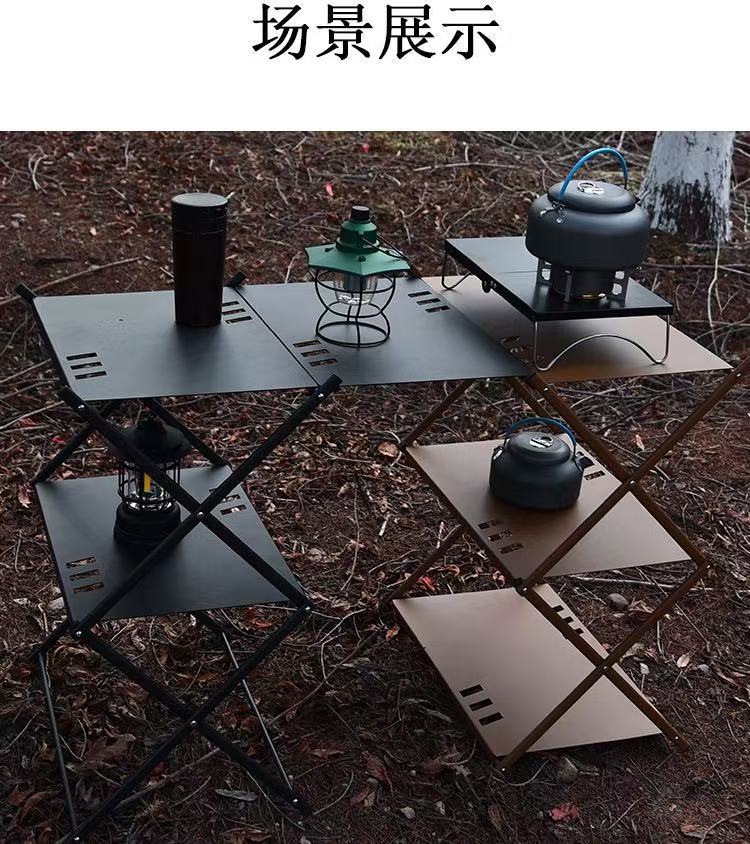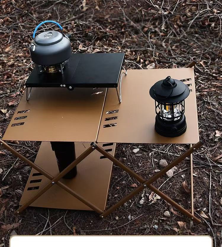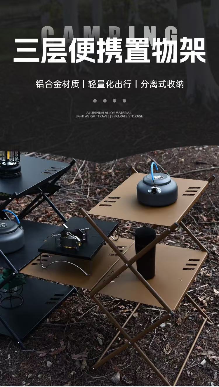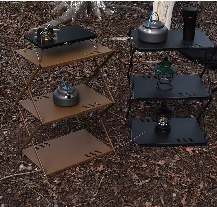 Mesa Portátil de Tres Capas de Aleación de Aluminio Empalmable para Camping al Aire Libre, Mesa de Almacenamiento de Aluminio para Barbacoa, Mesa Plegable para Camping