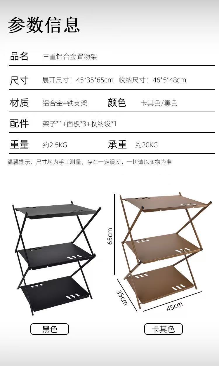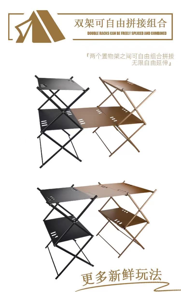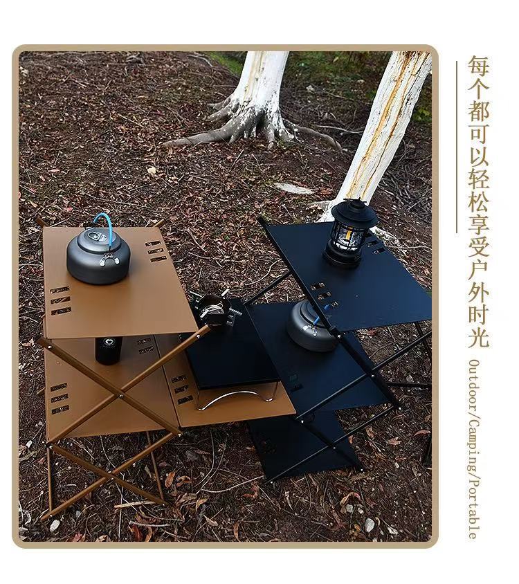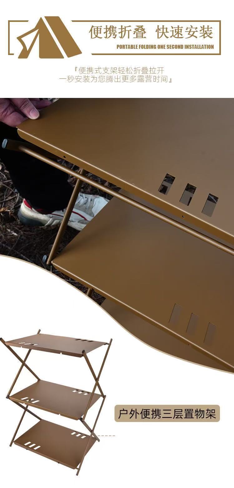 Mesa Portátil de Tres Capas de Aleación de Aluminio Empalmable para Camping al Aire Libre, Mesa de Almacenamiento de Aluminio para Barbacoa, Mesa Plegable para Camping