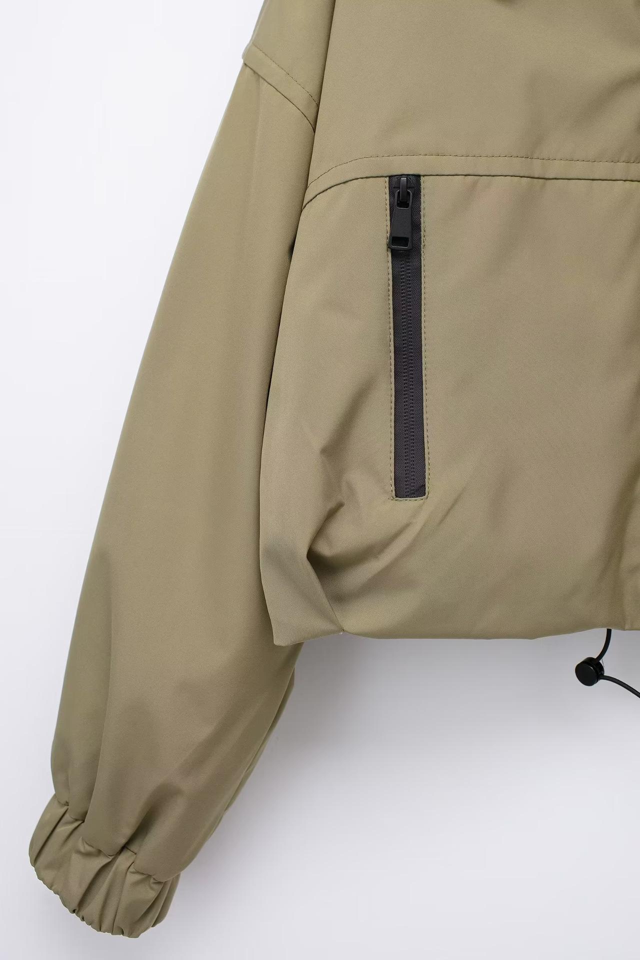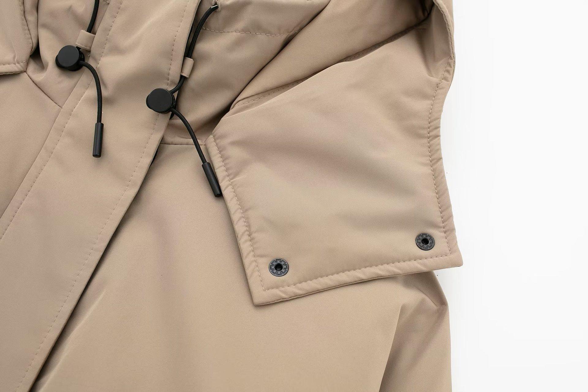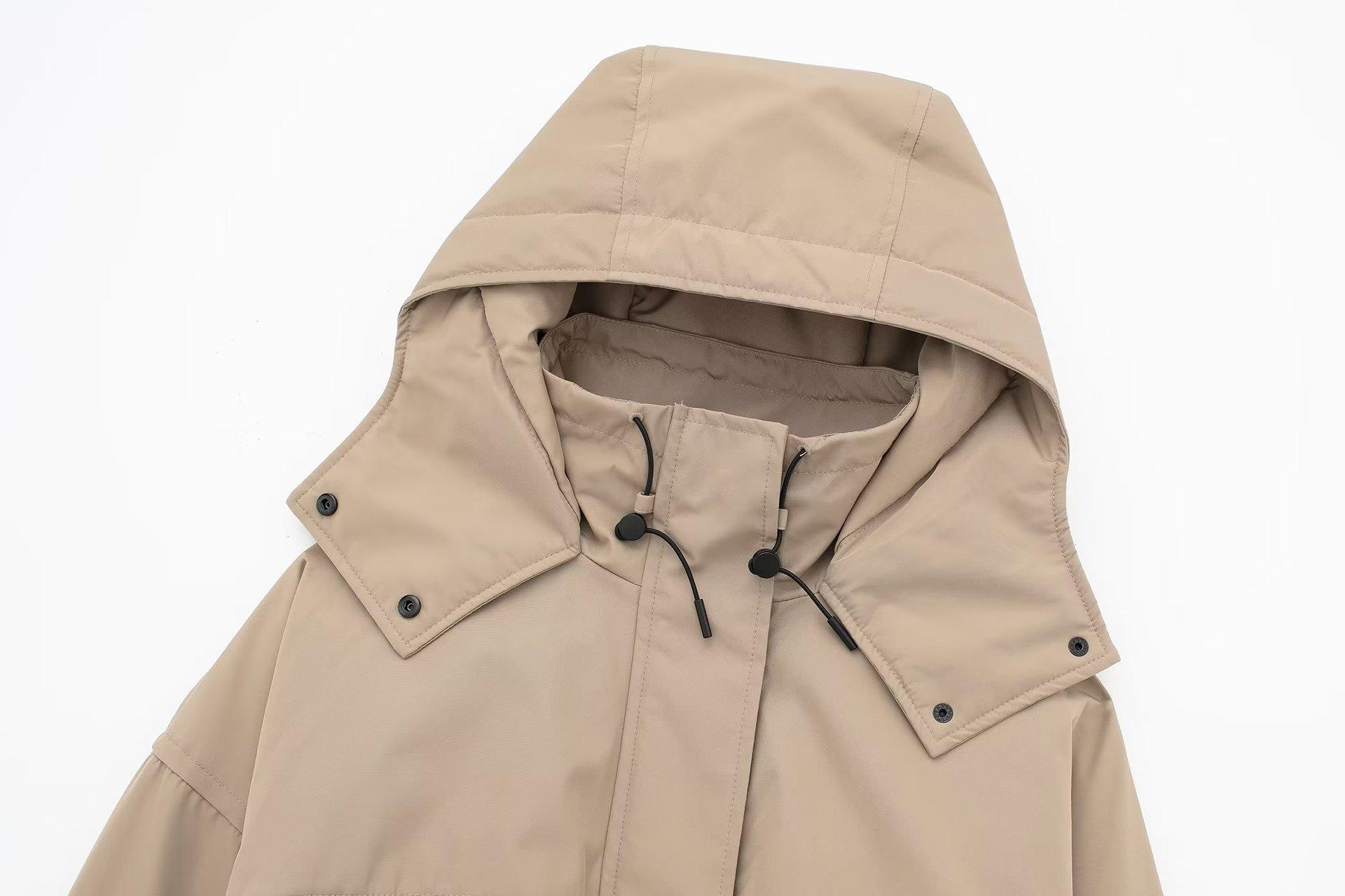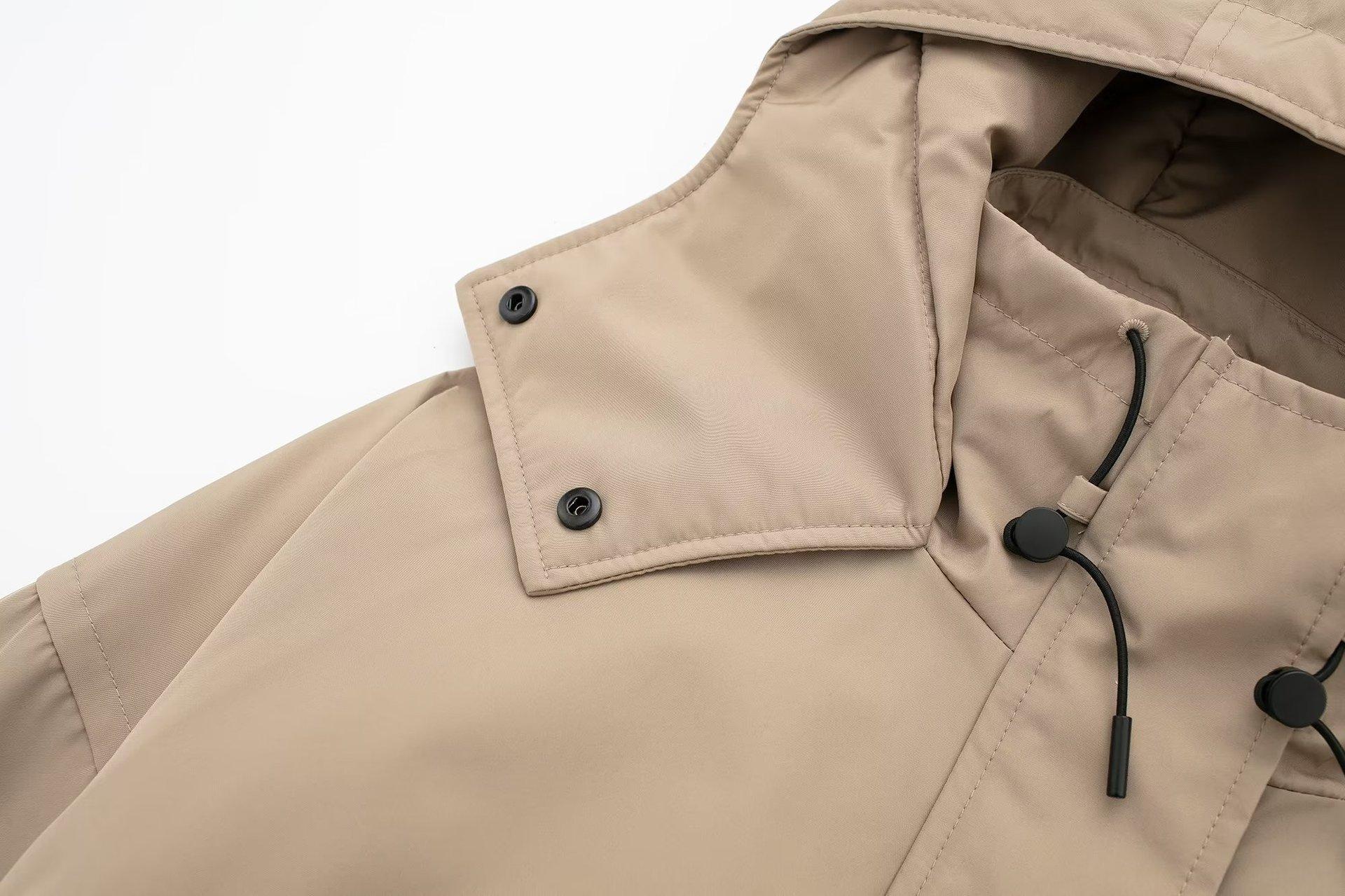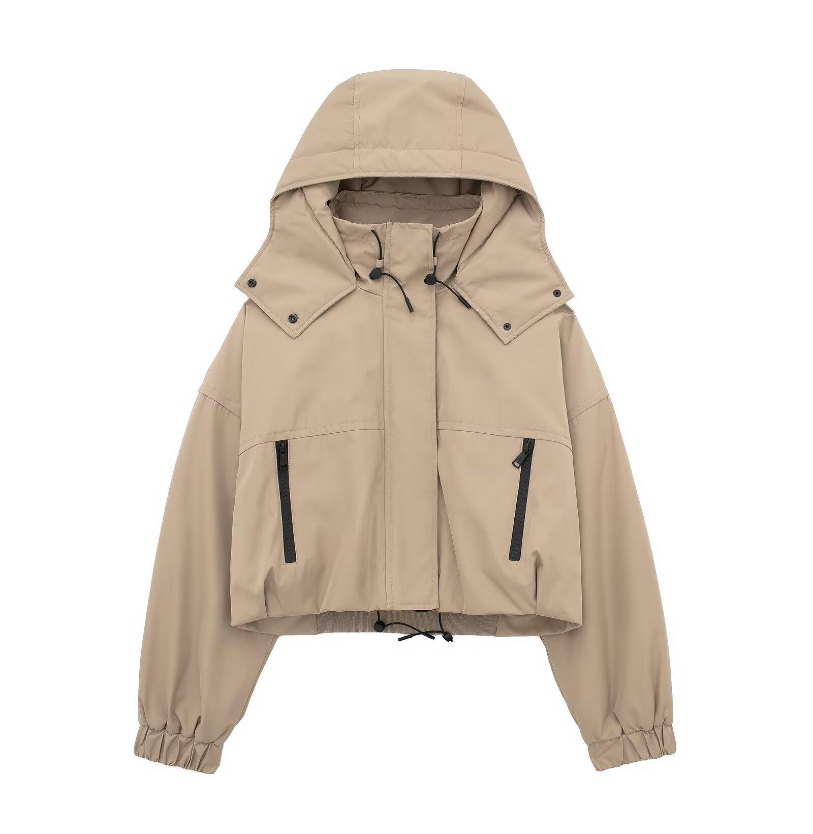 Chaqueta corta con capucha color caqui para mujer, estilo europeo y americano, moda urbana 2024, color liso, chaqueta holgada de invierno con borde cruzado, nuevo producto