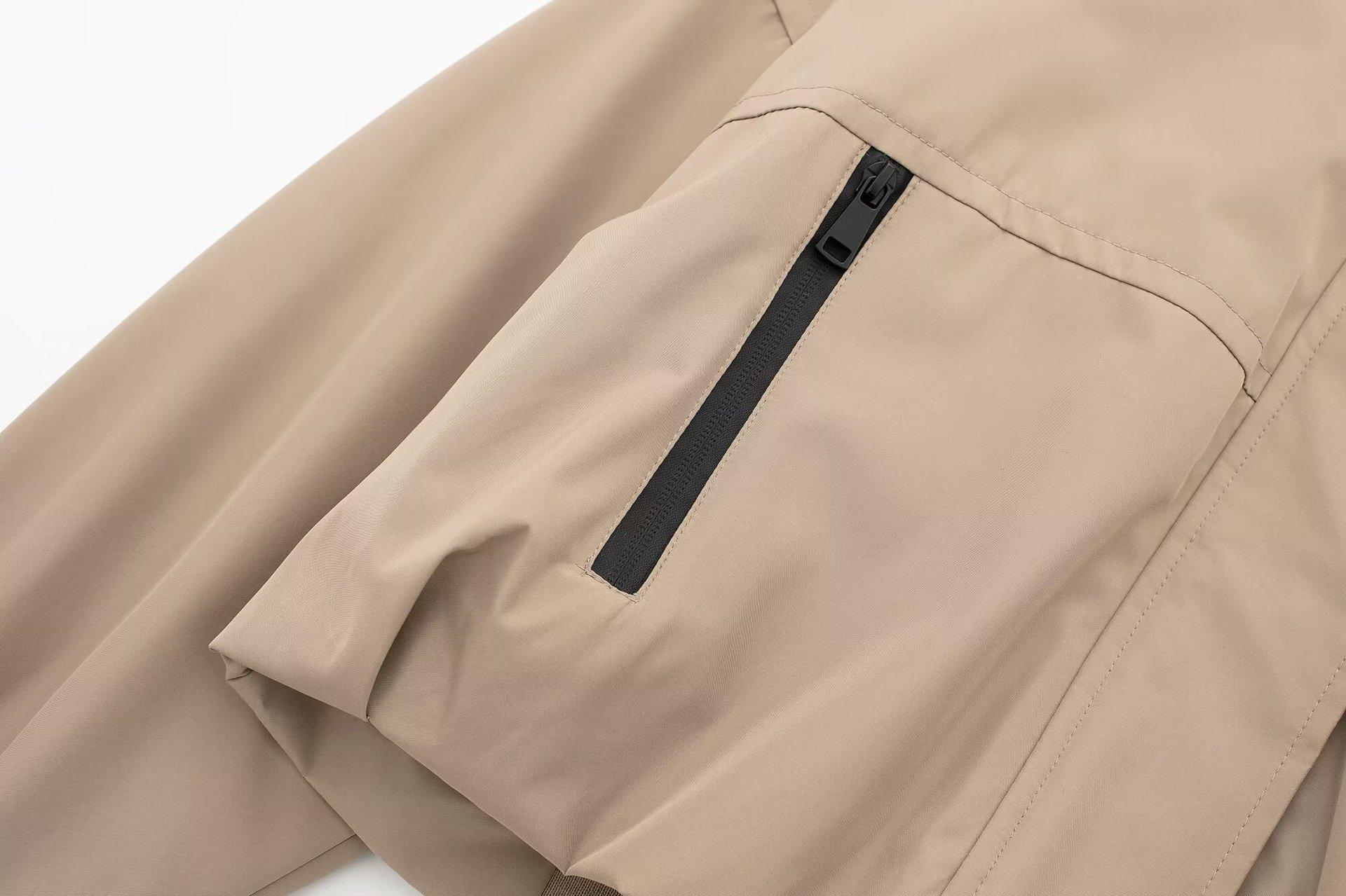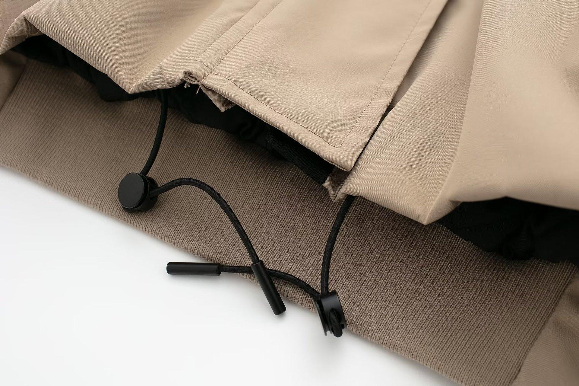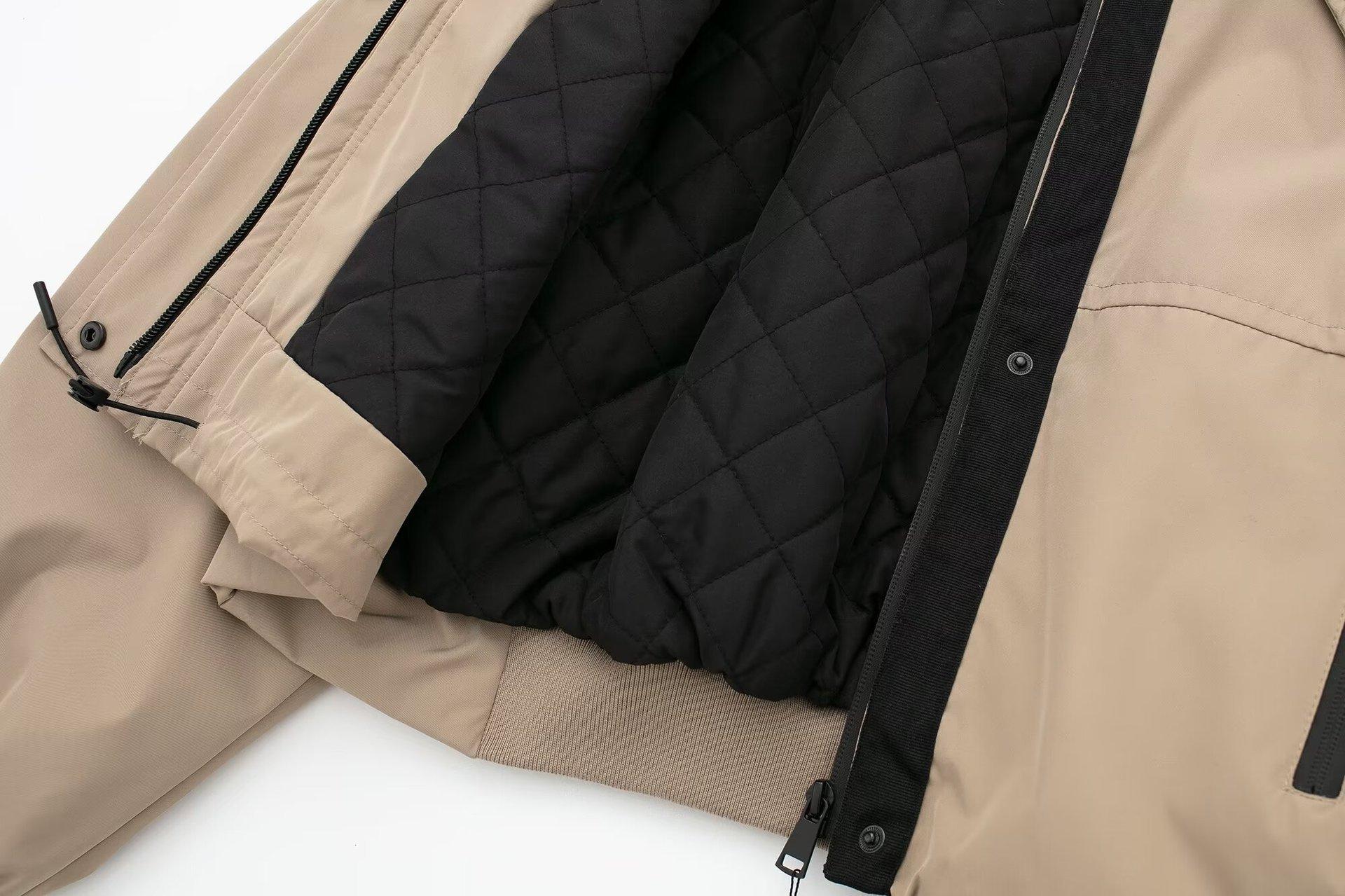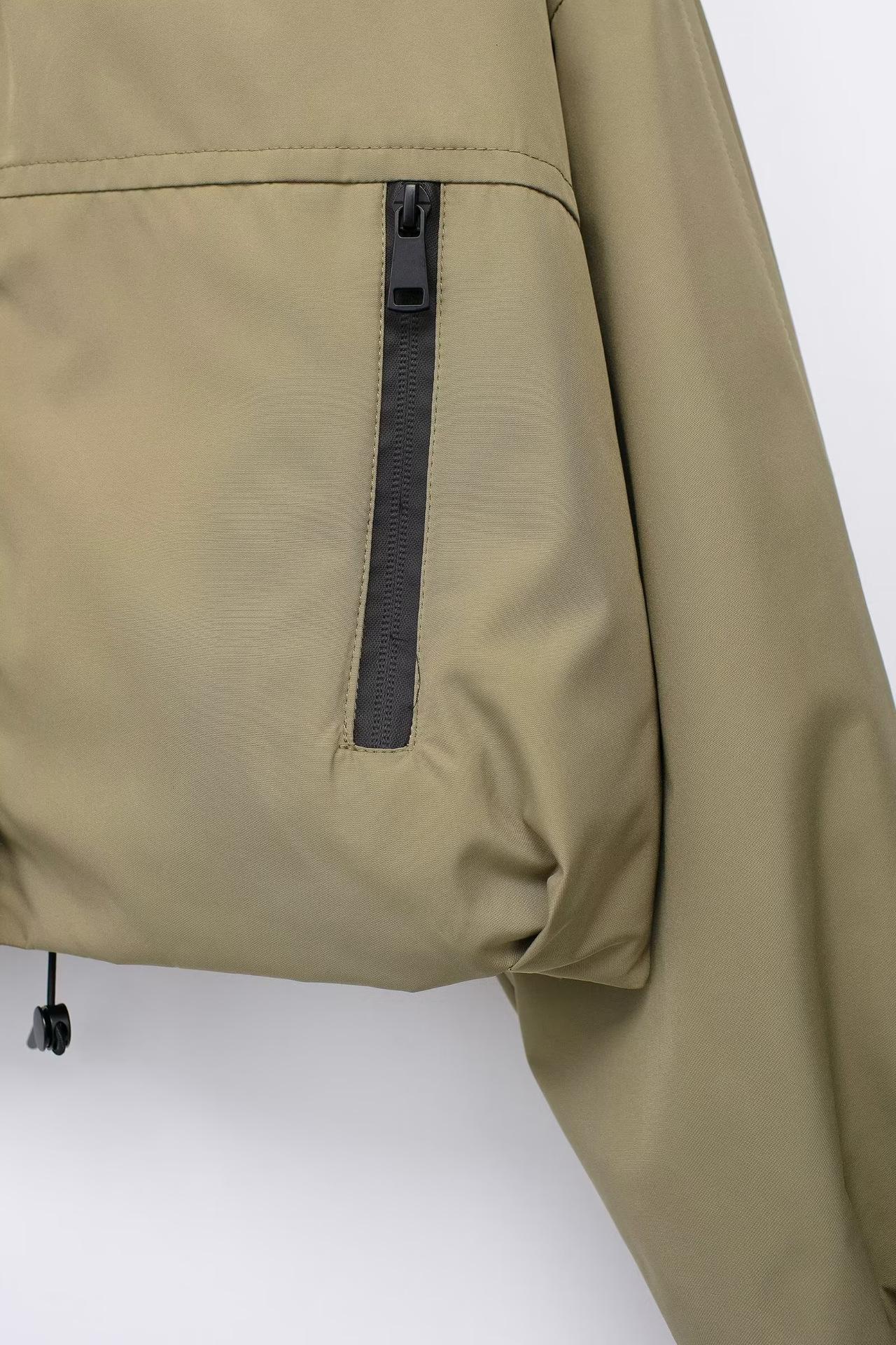 Chaqueta corta con capucha color caqui para mujer, estilo europeo y americano, moda urbana 2024, color liso, chaqueta holgada de invierno con borde cruzado, nuevo producto