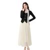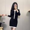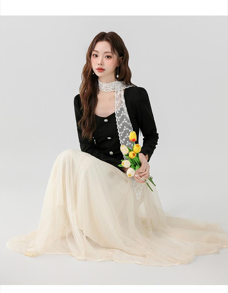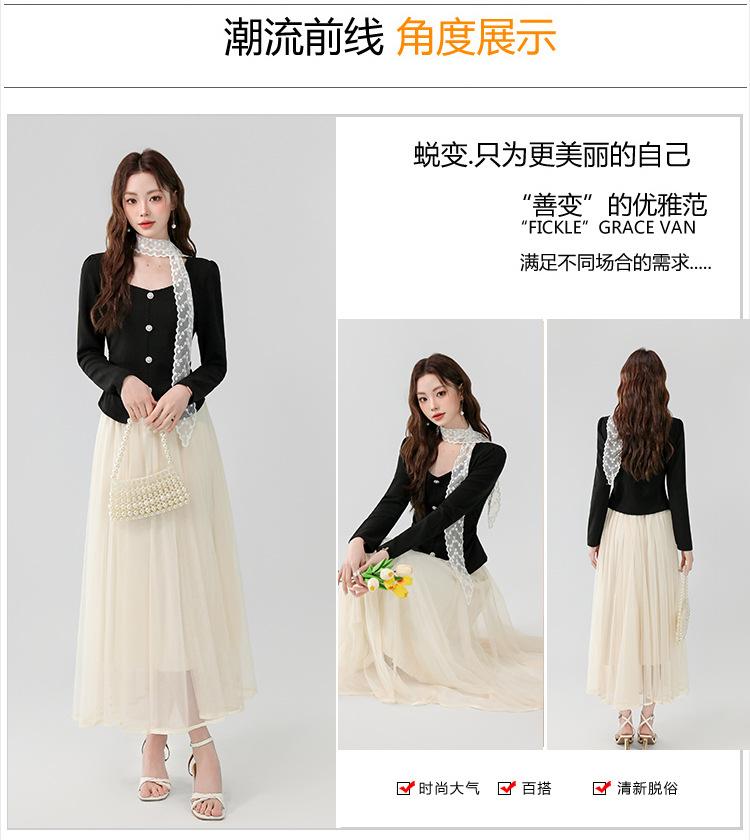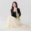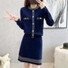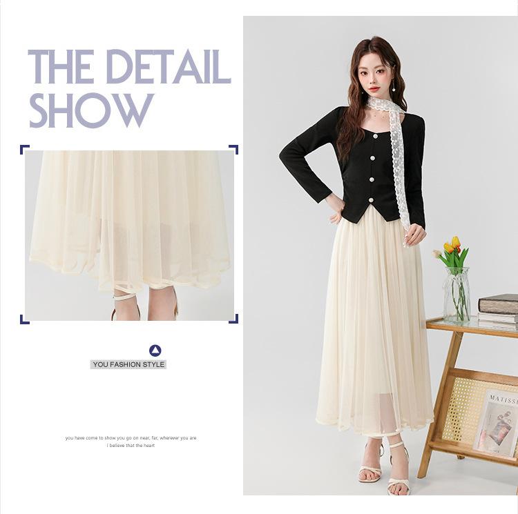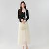 Top de punto, falda de malla, traje de dos piezas, moda femenina primavera-otoño 2025, estilo francés.