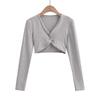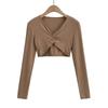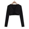 Camiseta de manga larga torcida con cuello en V para mujer, nueva camiseta sexy de alta calidad con escote en V para chica sexy de otoño 2023