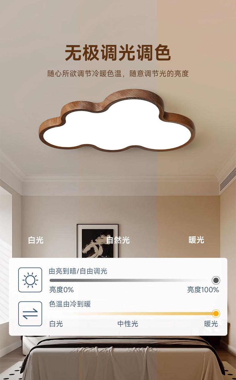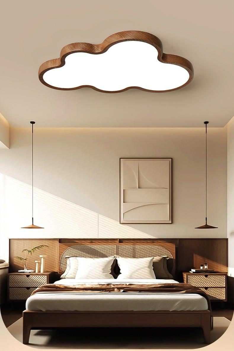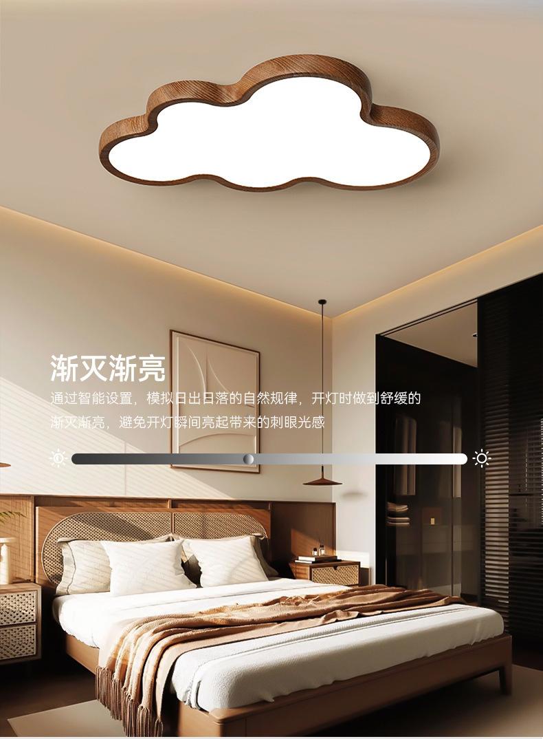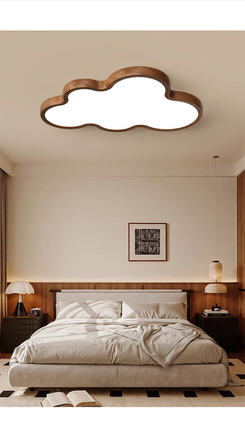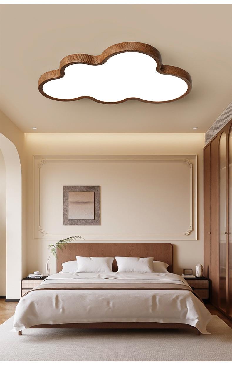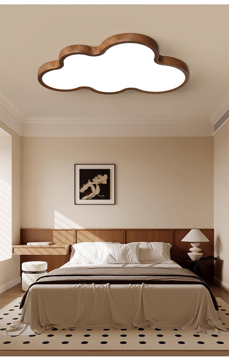 Lámpara de techo LED para dormitorio en forma de nube, moderna, sencilla, con color madera, protección ocular, lámpara de estudio, lámpara creativa con voz inteligente