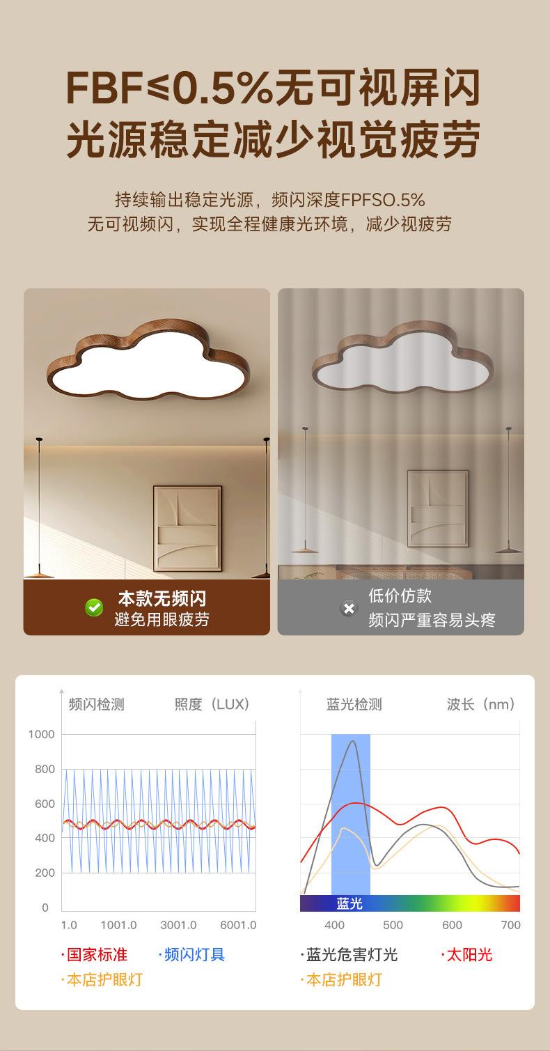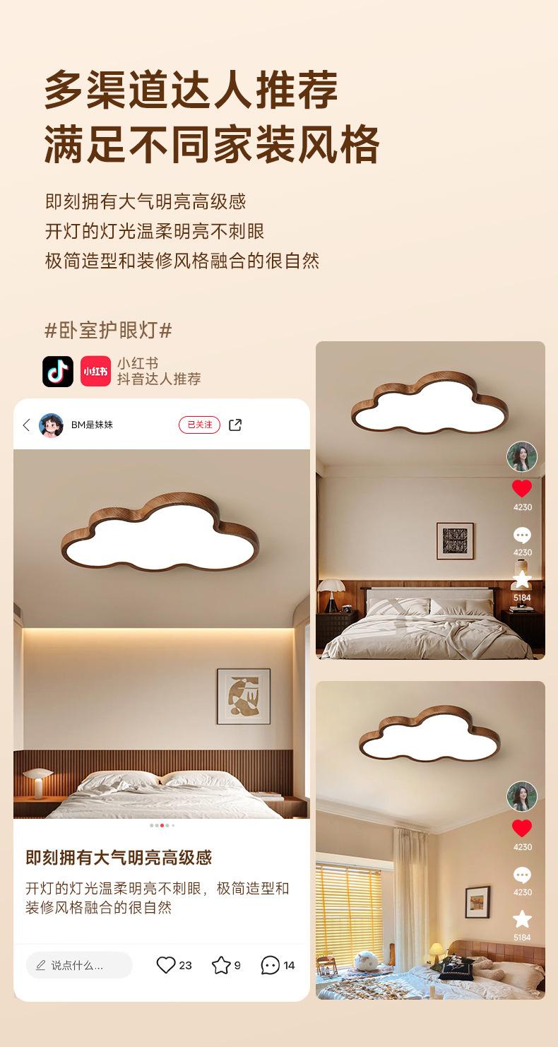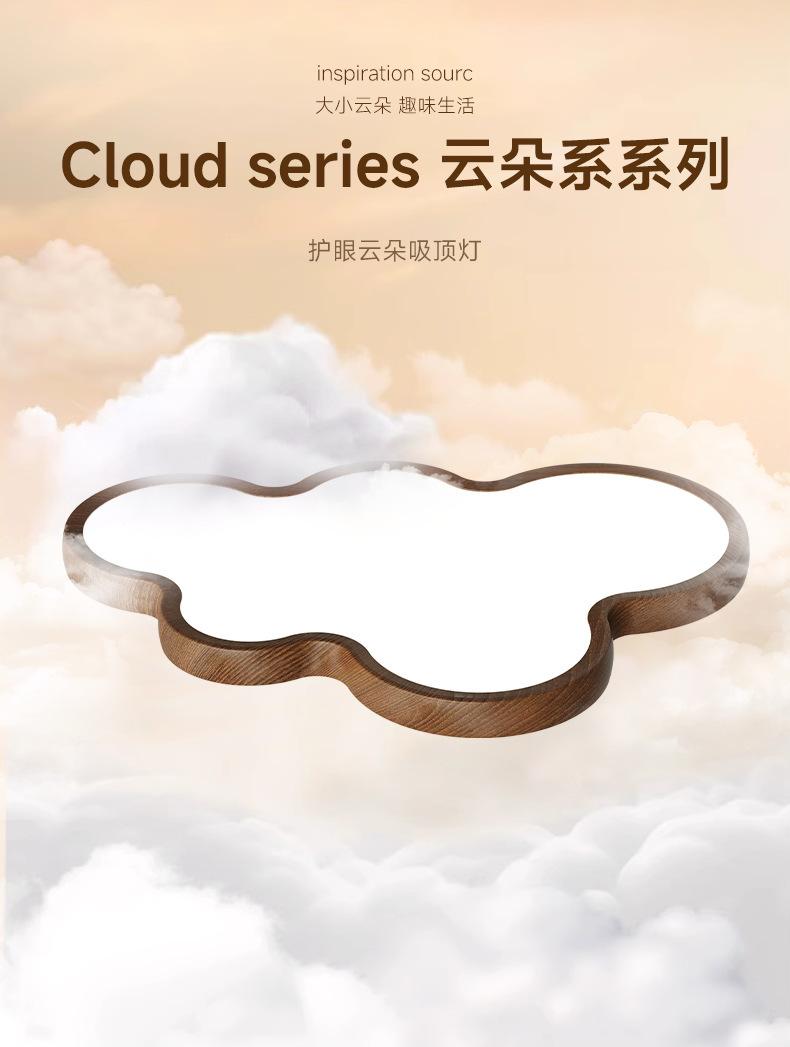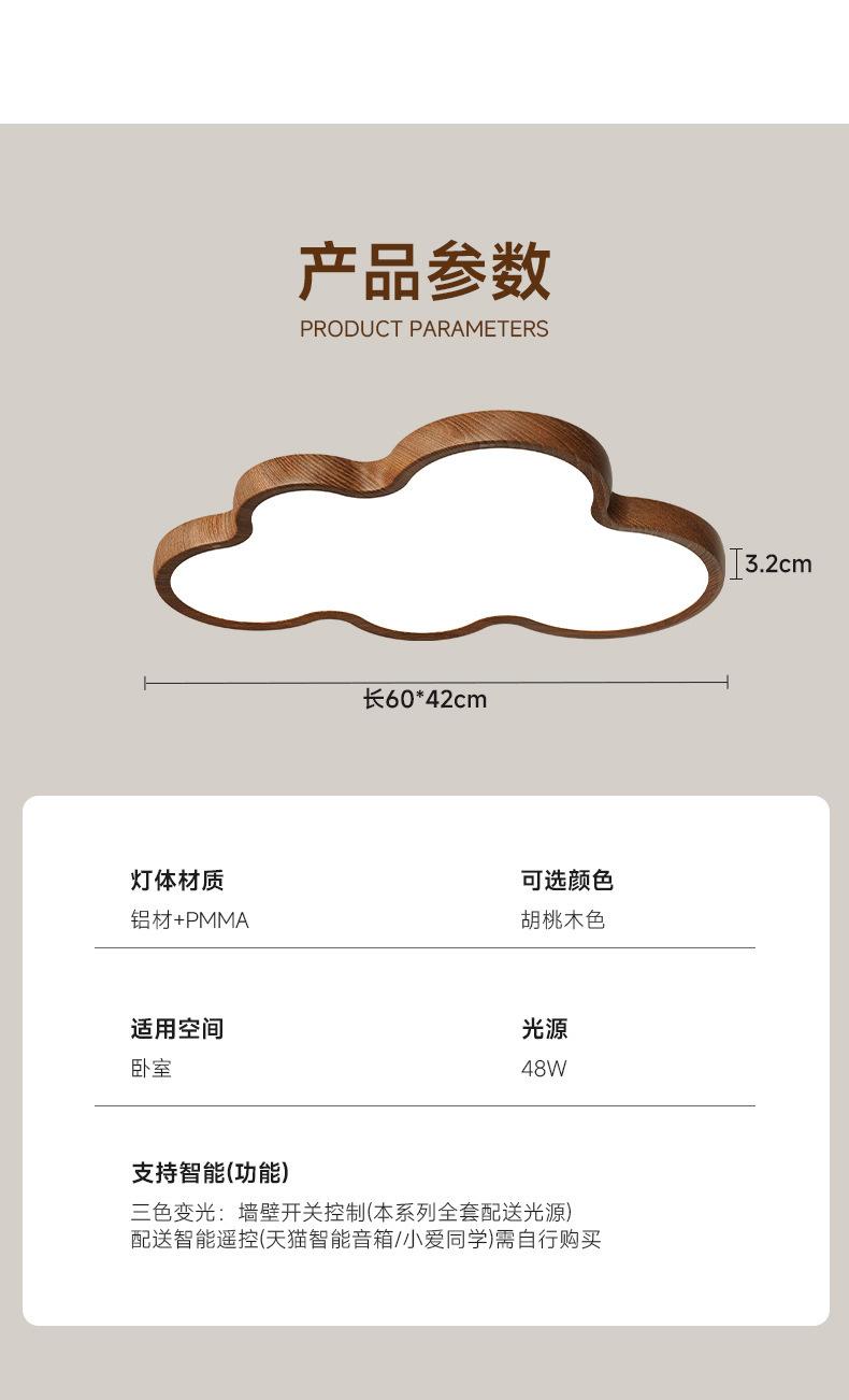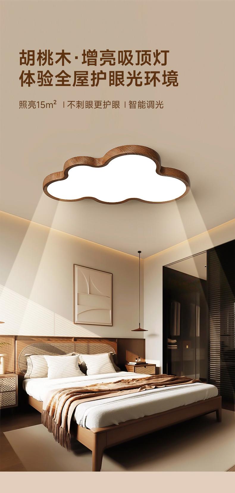 Lámpara de techo LED para dormitorio en forma de nube, moderna, sencilla, con color madera, protección ocular, lámpara de estudio, lámpara creativa con voz inteligente