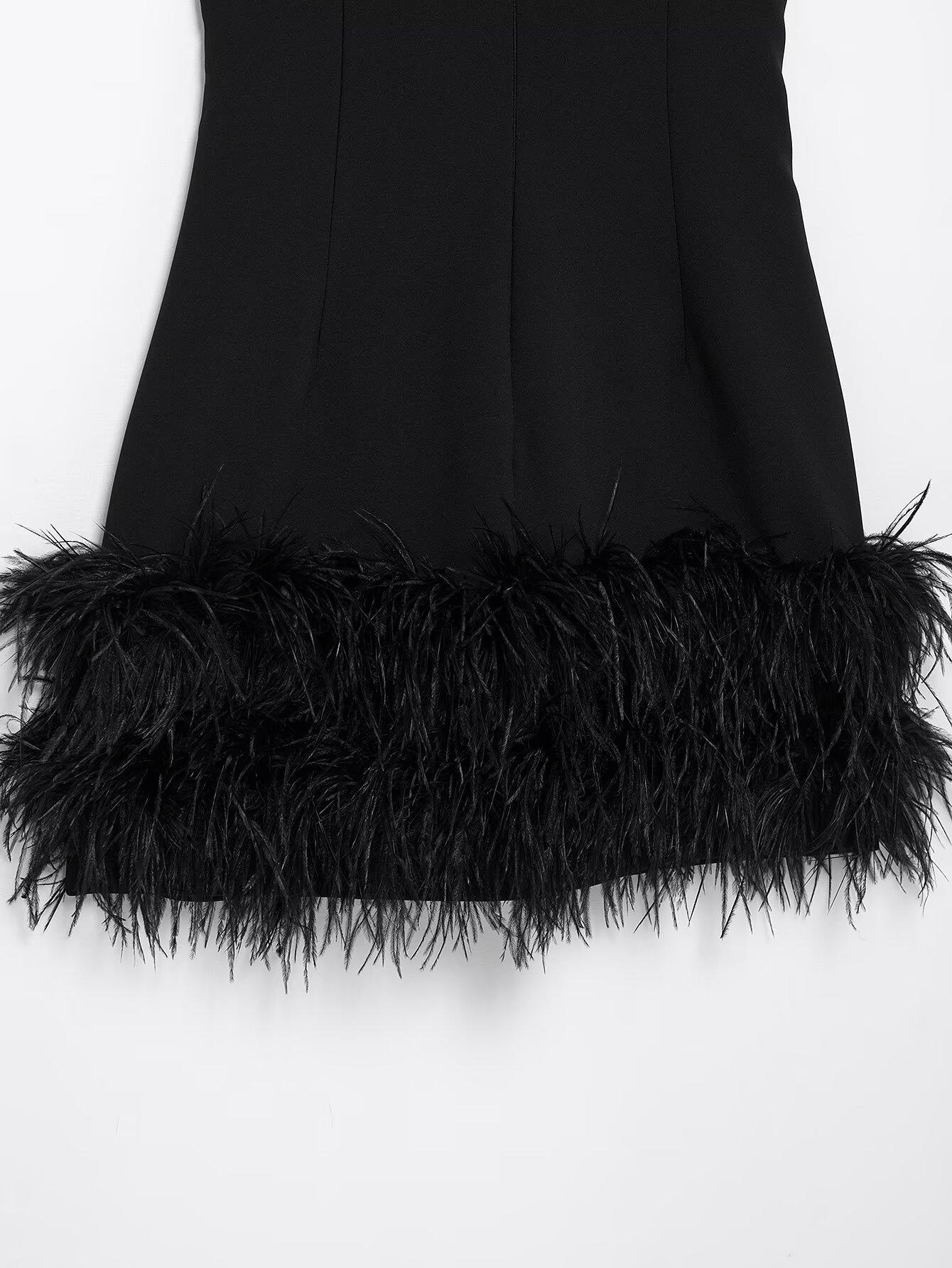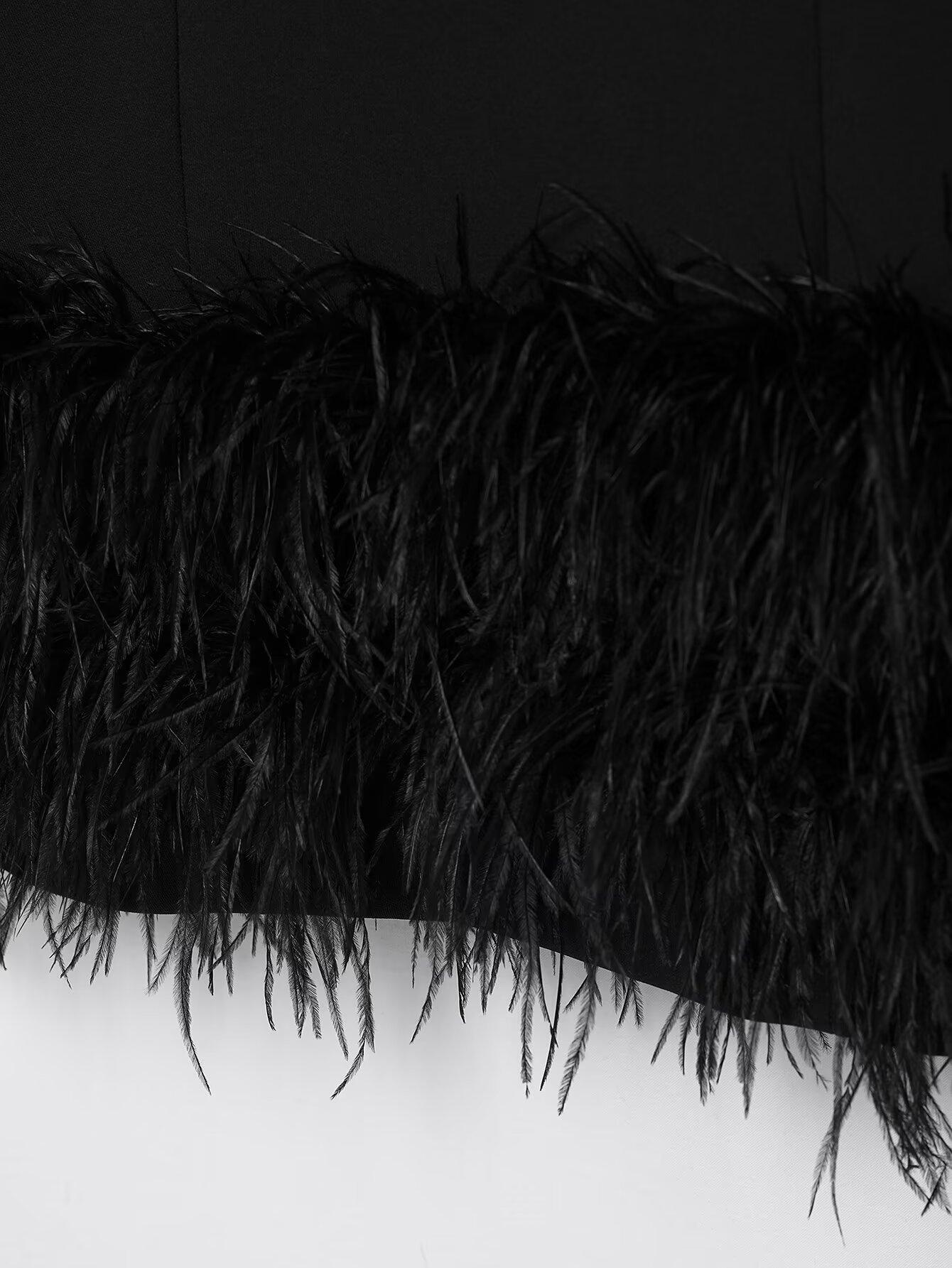 245024Black sleeveless feather skirt