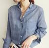 2023 Primavera Nuevo Manga Larga Algodón y Lino Camisa para Mujer Estilo Coreano Color Sólido Slim Lino Literario Suelto Camisa Delgada Top de Moda