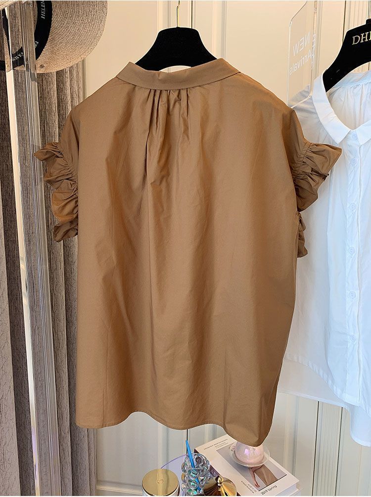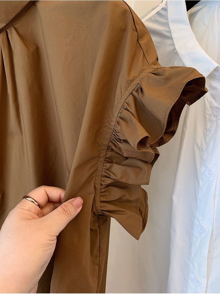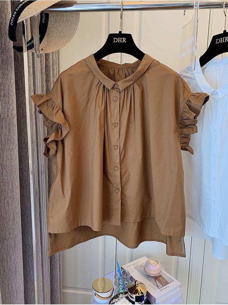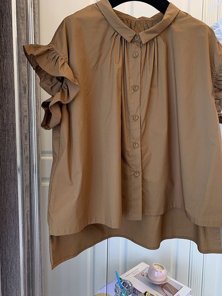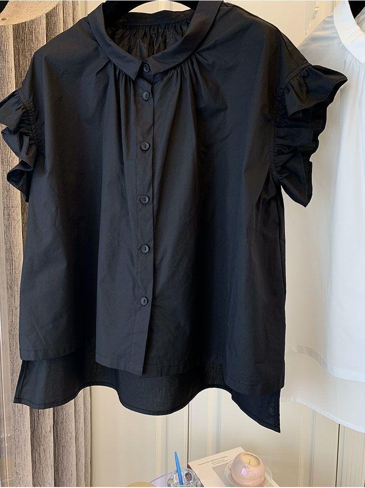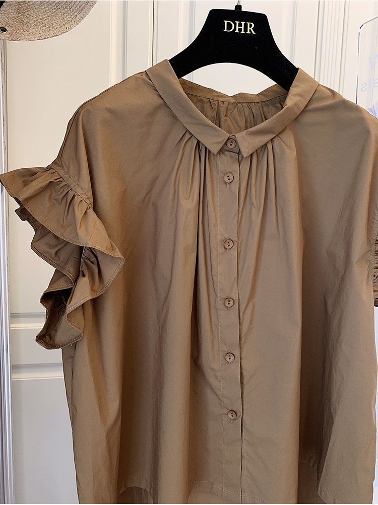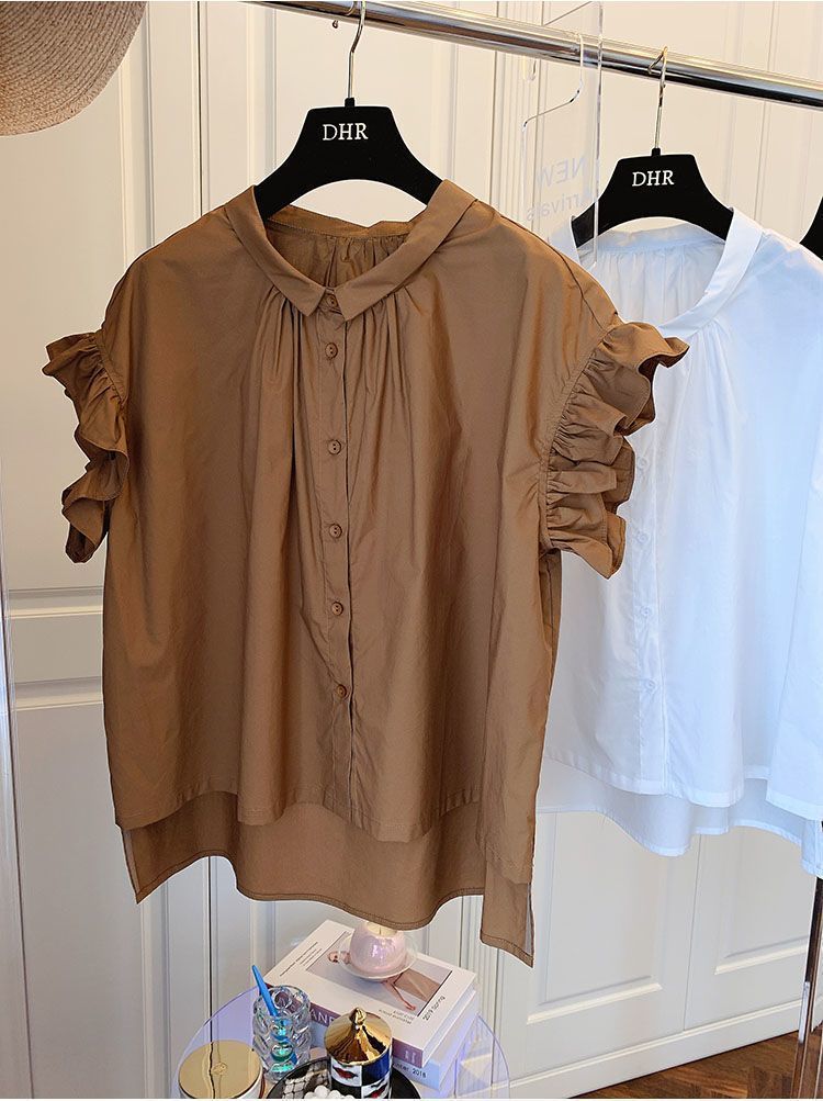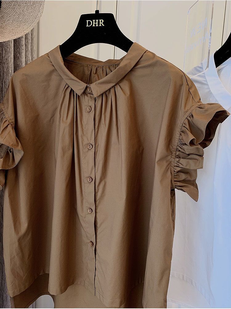 Compra Camisa de manga corta con volantes para mujer, nuevo diseño de verano, estilo francés, holgada, informal, con cuello pequeño y ribete en las orejas. al por mayor en Joom.pro