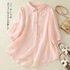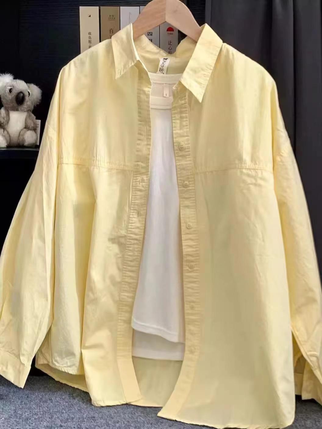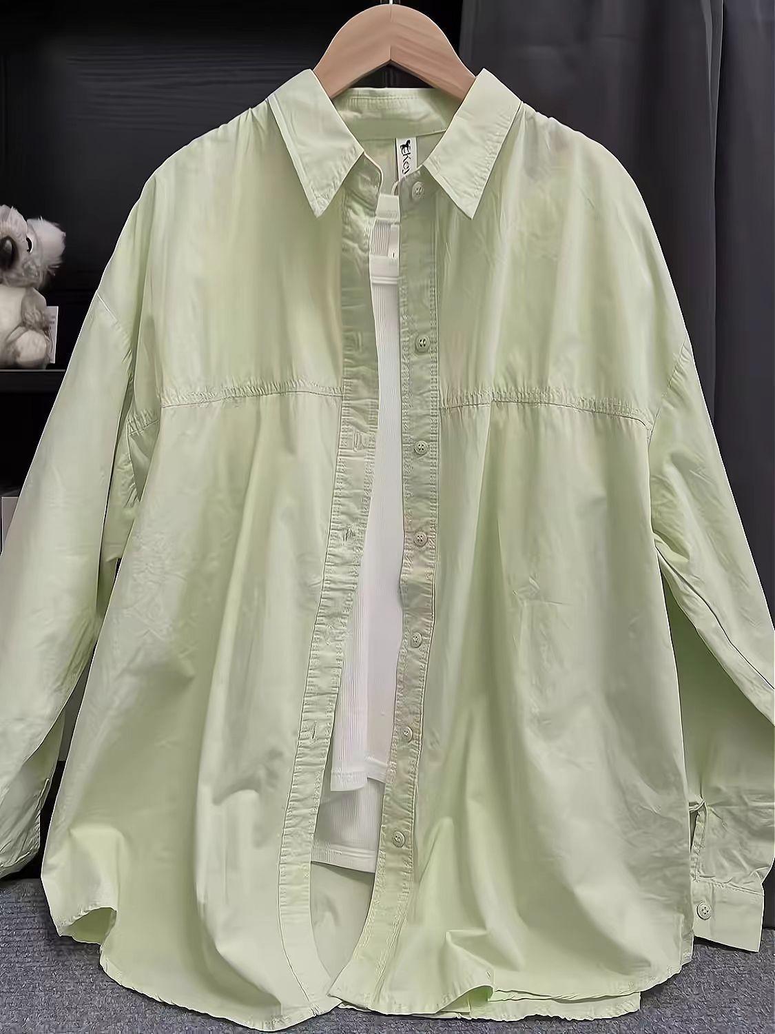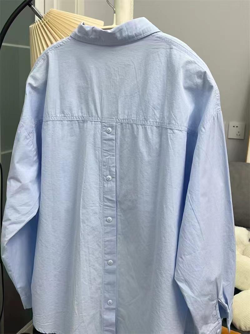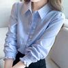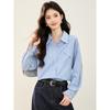 Camisa Azul Holgada de Lujo Ligero para Mujer de Manga Larga Estilo Nuevo 2025 Chic Combinable Súper Bonita Camisa Top Chaqueta
