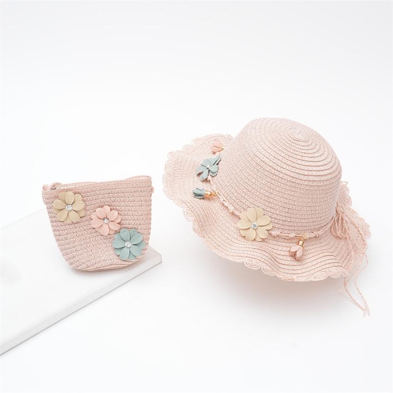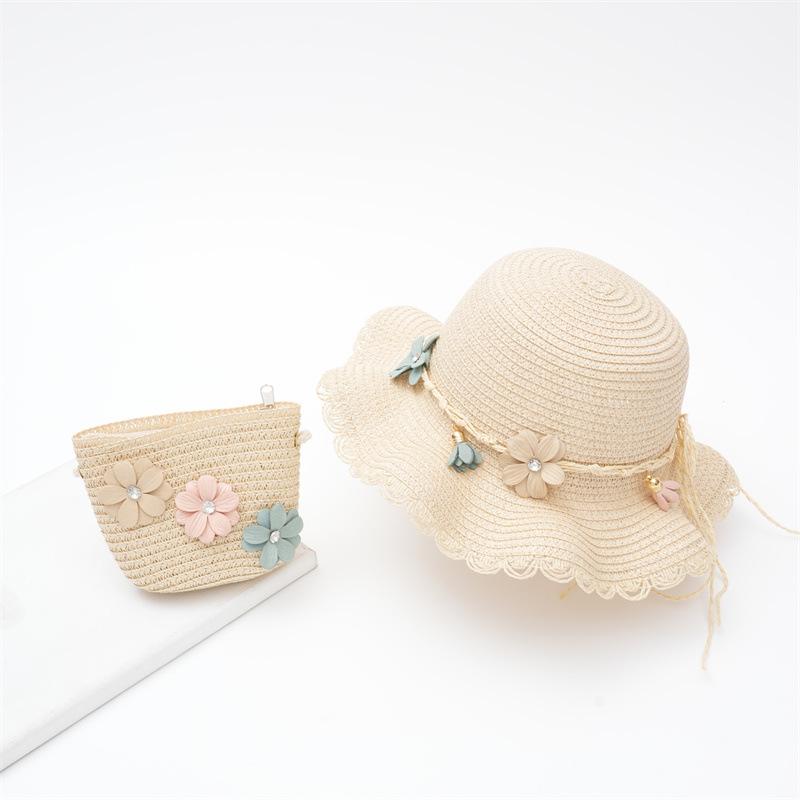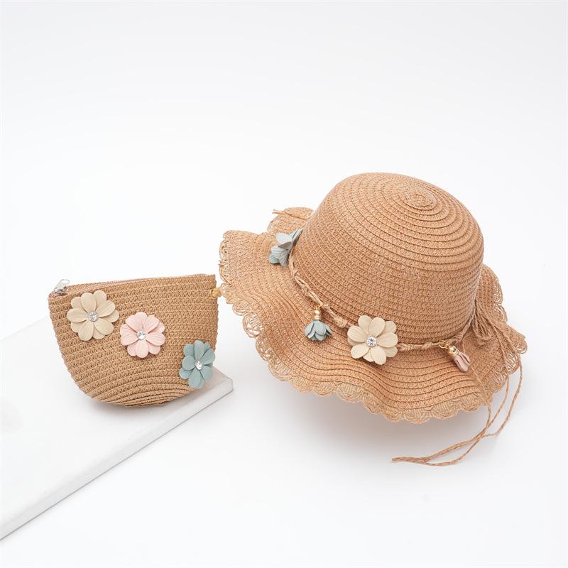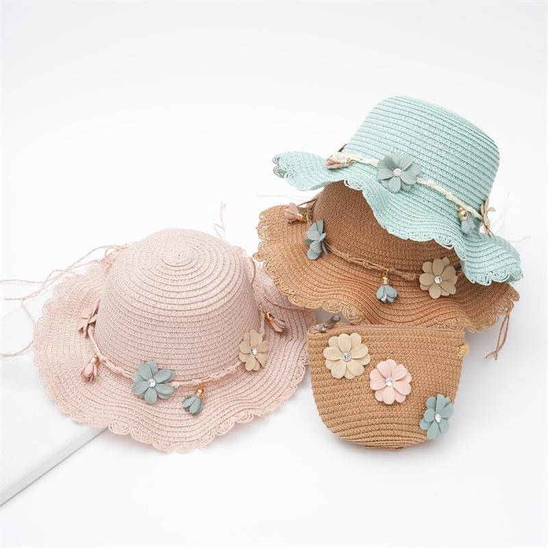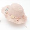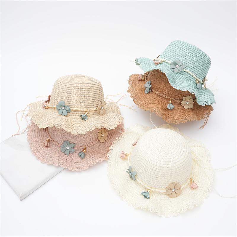 Sombrero de Sol de Verano para Niña Vacaciones Playa Sombra Sombrero de Paja Pequeña Princesa Flor Cúpula Borde Ondulado Sombrero de Sol