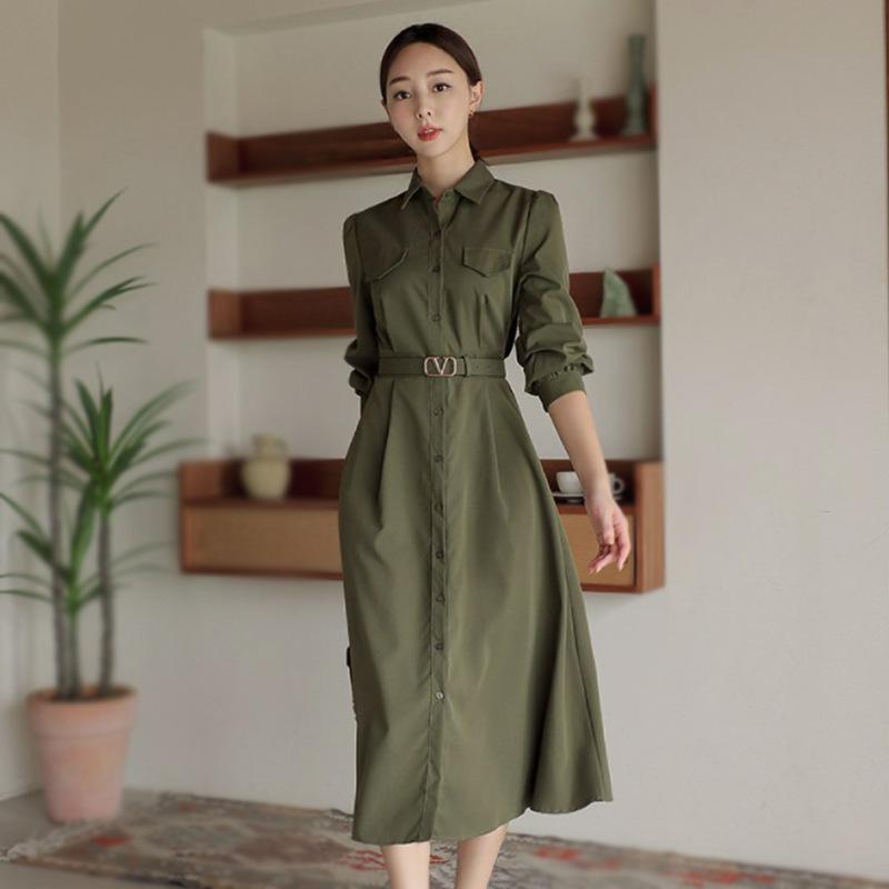 Vestido Chic Estilo Francés con Cintura Lazo para Mujer Primavera 2025 Nuevo Versátil Ropa de Trabajo Falda Midi