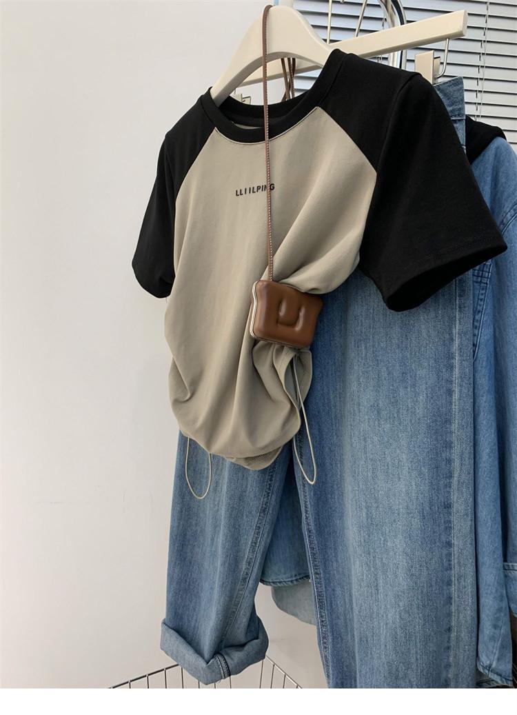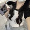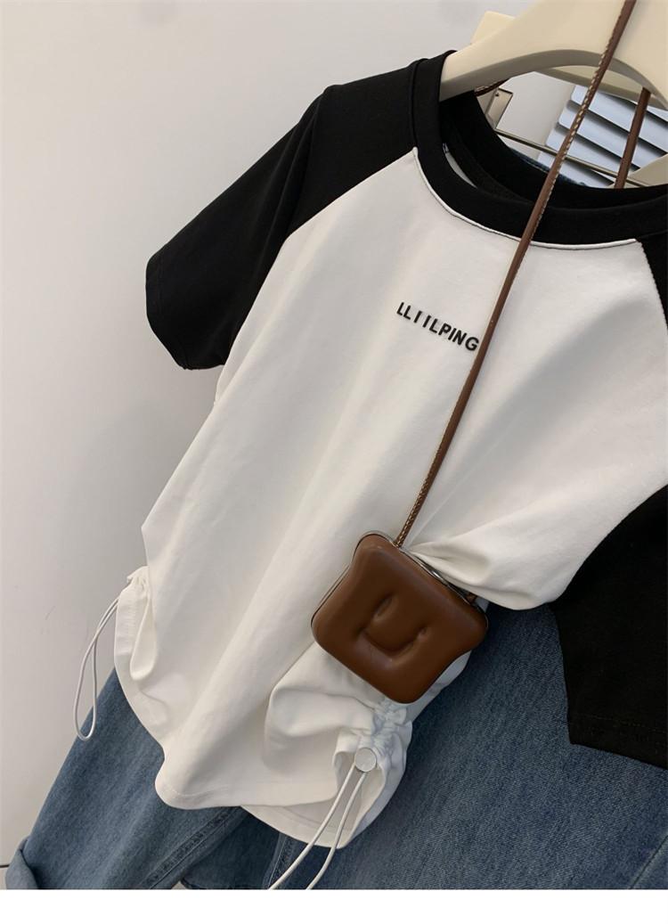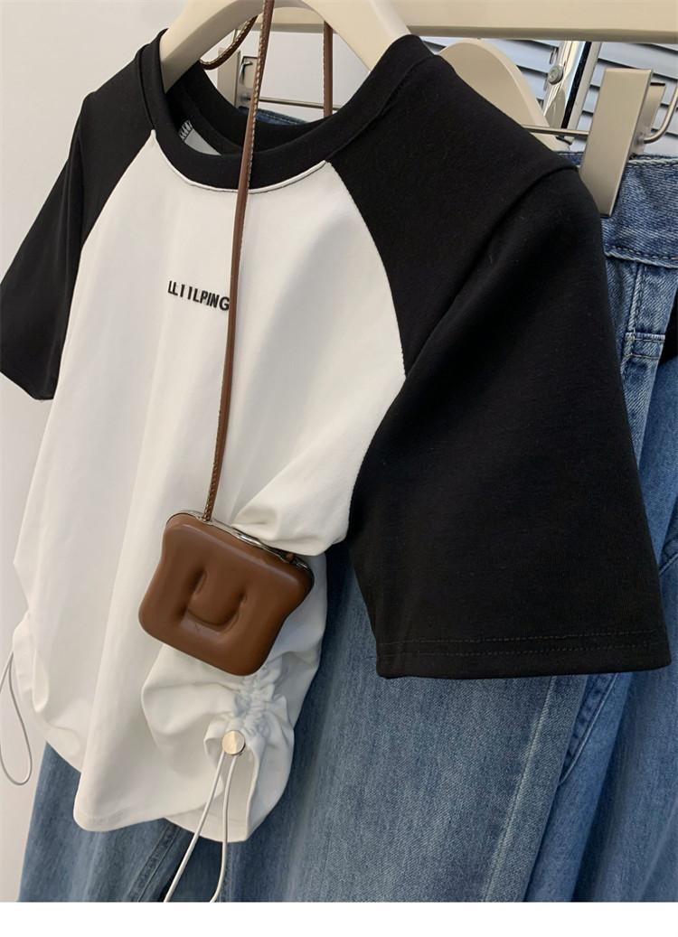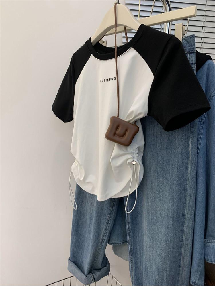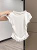 Camiseta de Algodón Puro con Cordones en el Hombro Derecho para Mujer de Manga Corta Verano 2025 Diseño Nicho Corta Sexy Ajustada Top