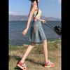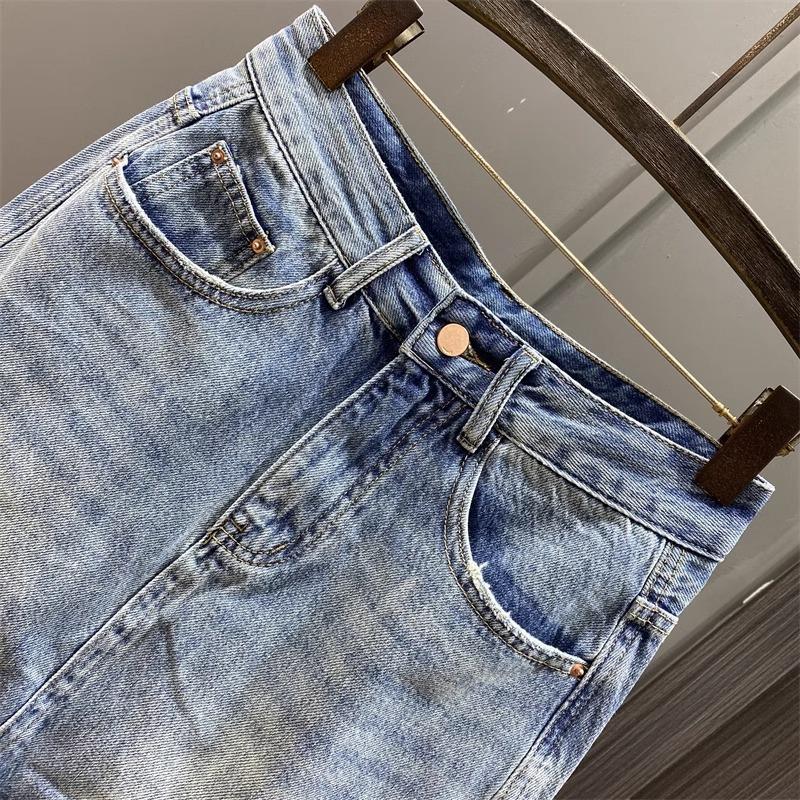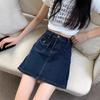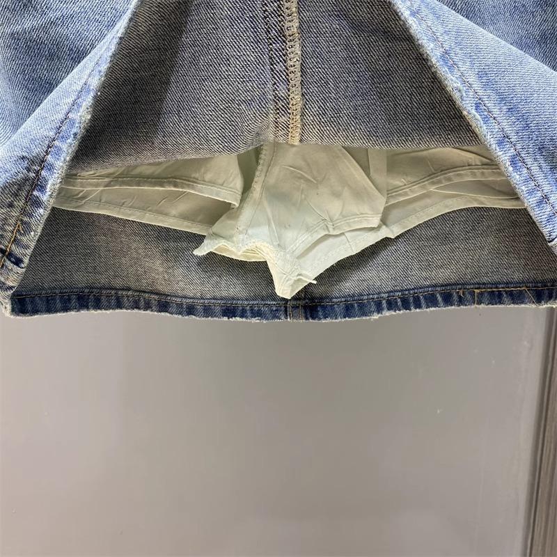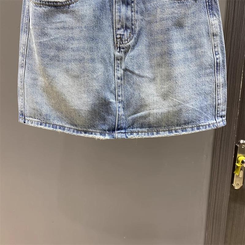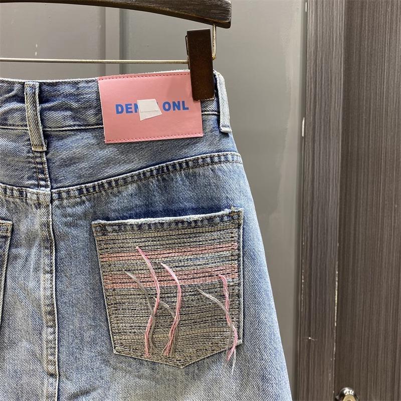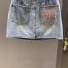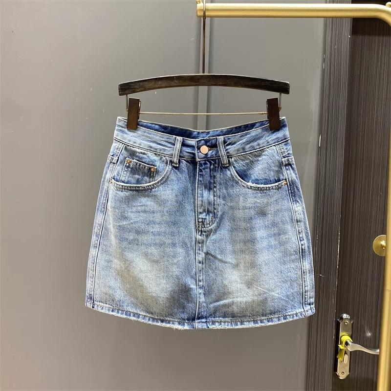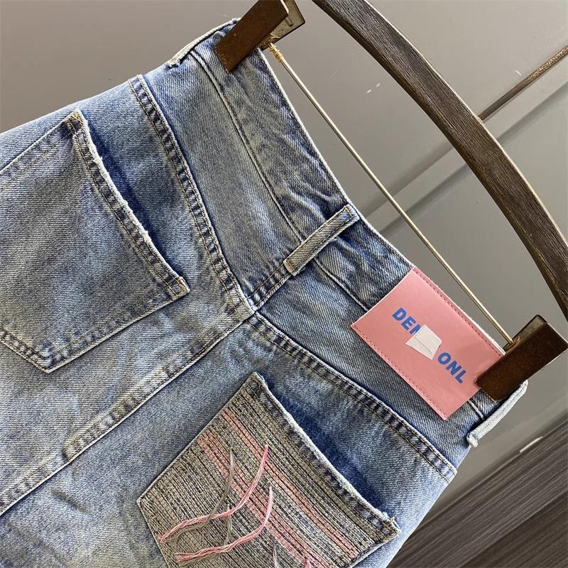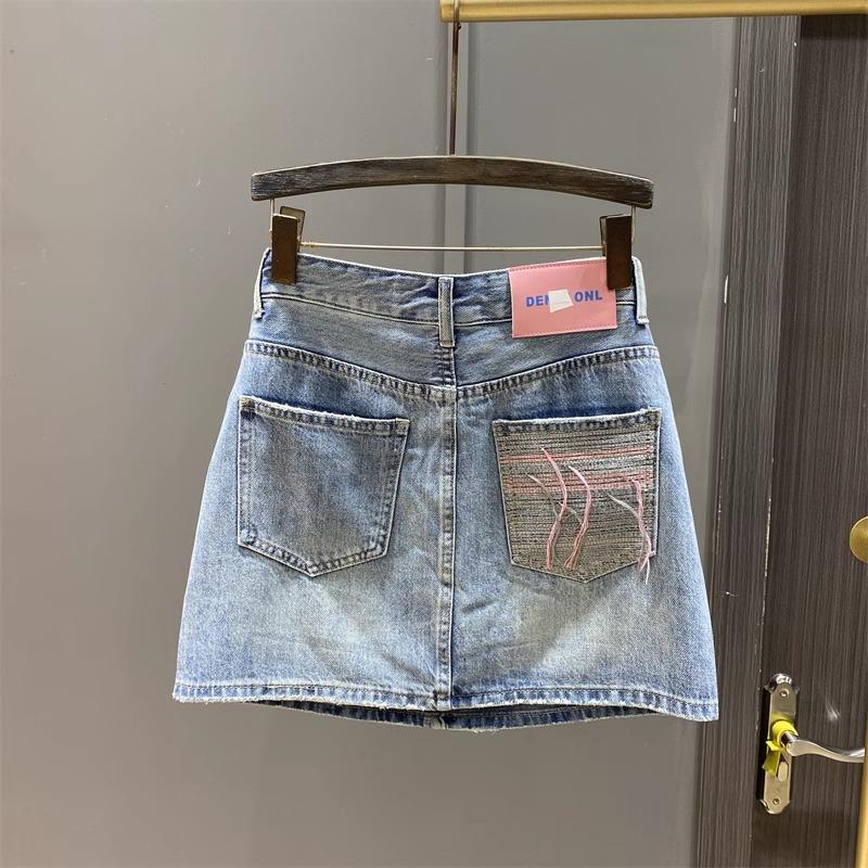 Falda Corta de Mezclilla con Bolsillo Bordado de Diseño, Nueva Versátil Anti-Exposición de Cintura Alta Adelgazante Línea A 2025
