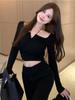 Otoño Nuevo Estilo Coreano Estilo Deseo Puro Ajustado Adelgazante Camiseta de Manga Larga Spice Girls Sexy Chic Combinable Top Nicho Ins