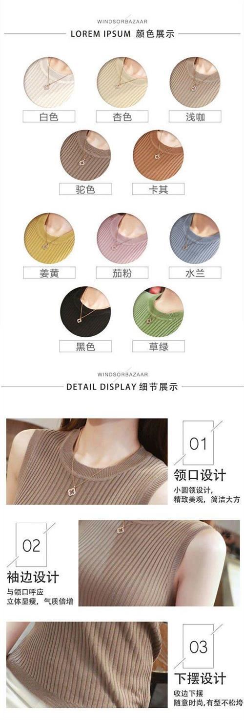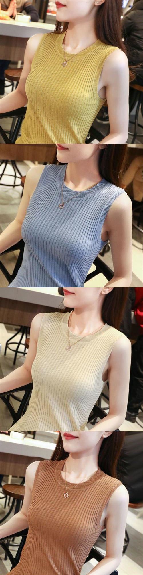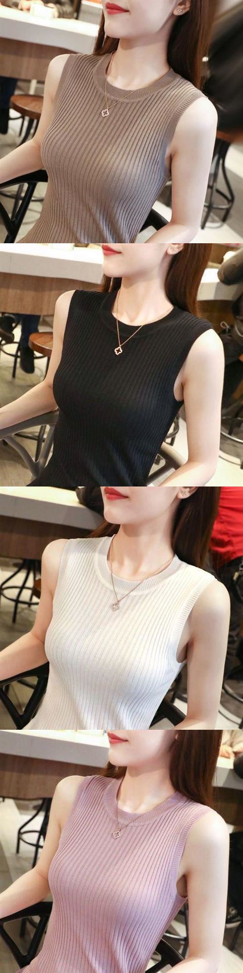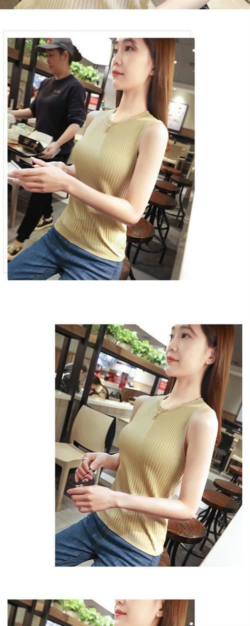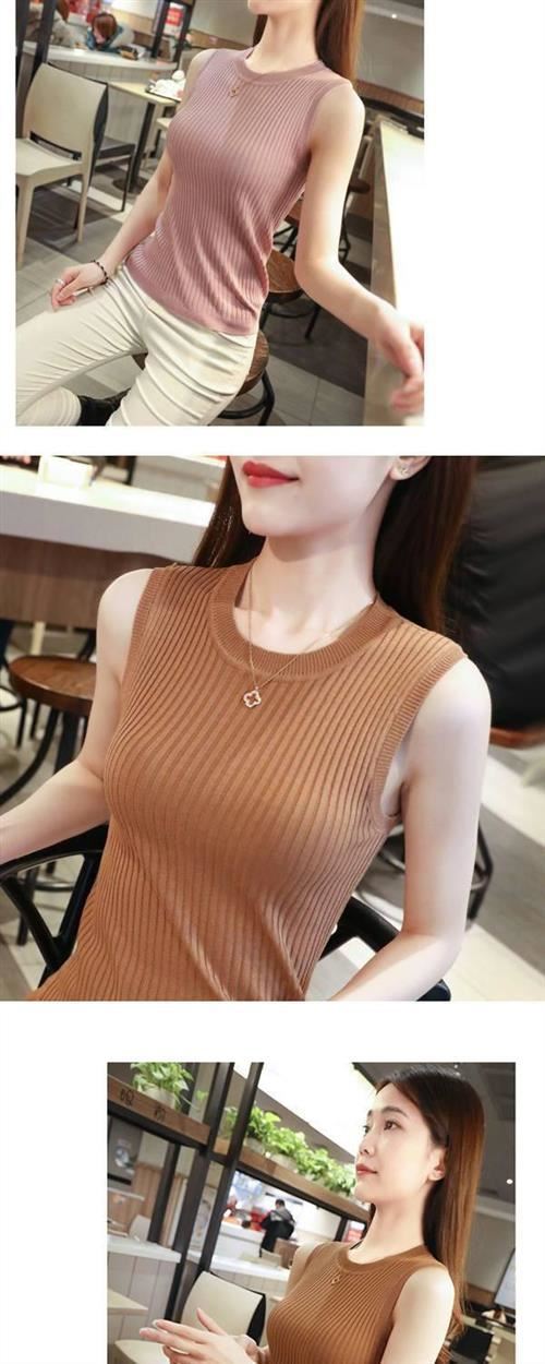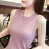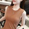 Chaleco de cuello redondo de seda de hielo para mujer, estilo coreano de verano, camiseta sin mangas que combina con todo, jersey interior de punto básico