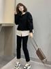 Suéter de dos piezas falsas con capucha para mujer, camisa de manga larga con costuras, moda nueva de alta gama para primavera y otoño 2025