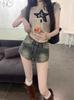 Pantalones cortos vaqueros vintage para mujer, de cintura alta, adelgazantes y sexys, de verano