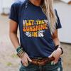 Camiseta de manga corta con cuello redondo y estampado de letras divertidas, disponible en Europa y América, nueva y cómoda camiseta de verano.