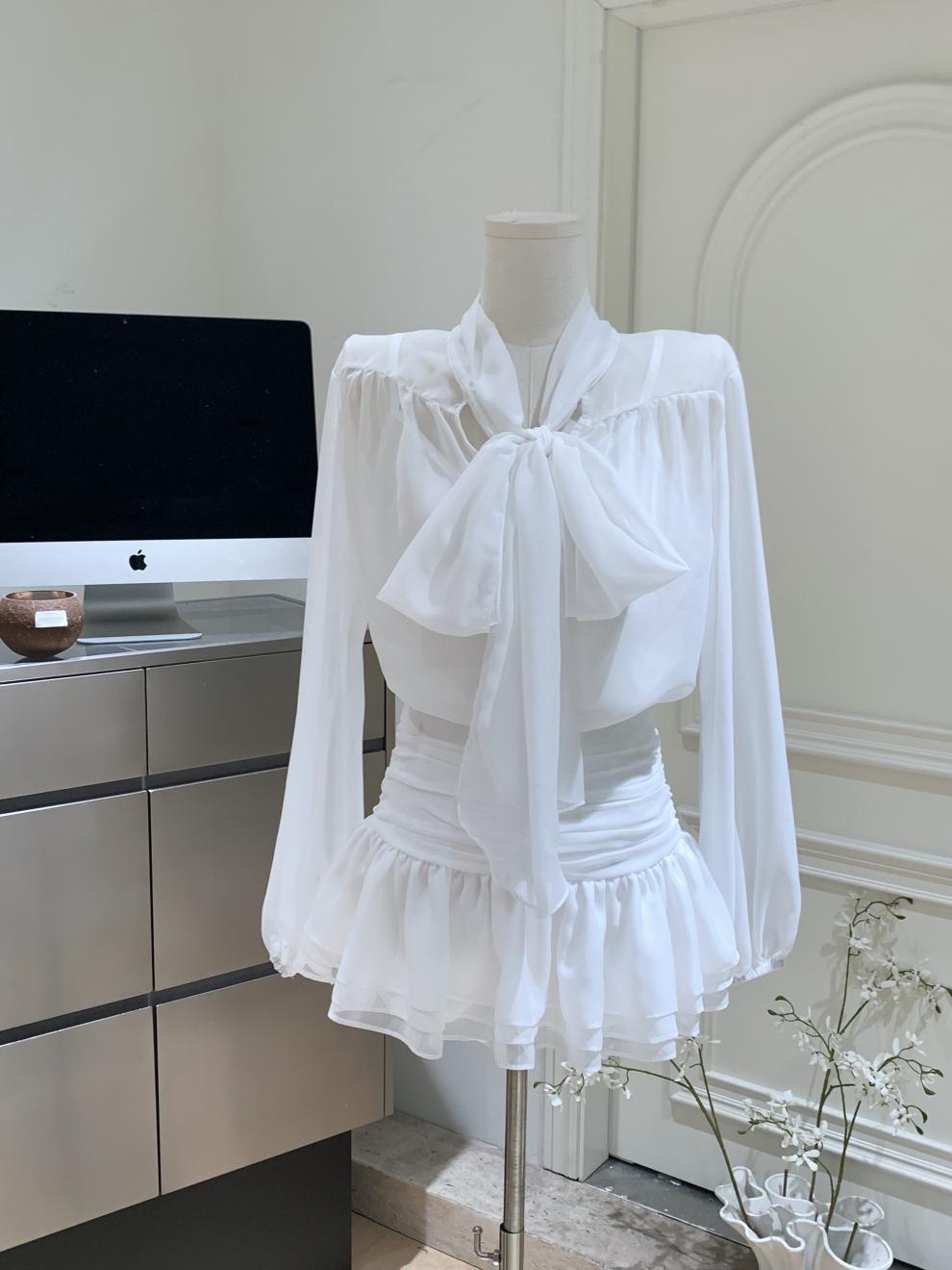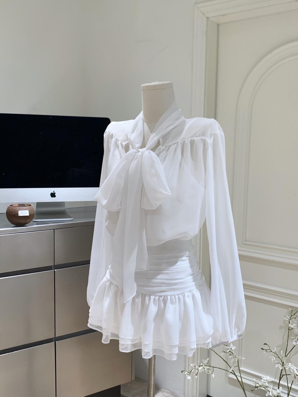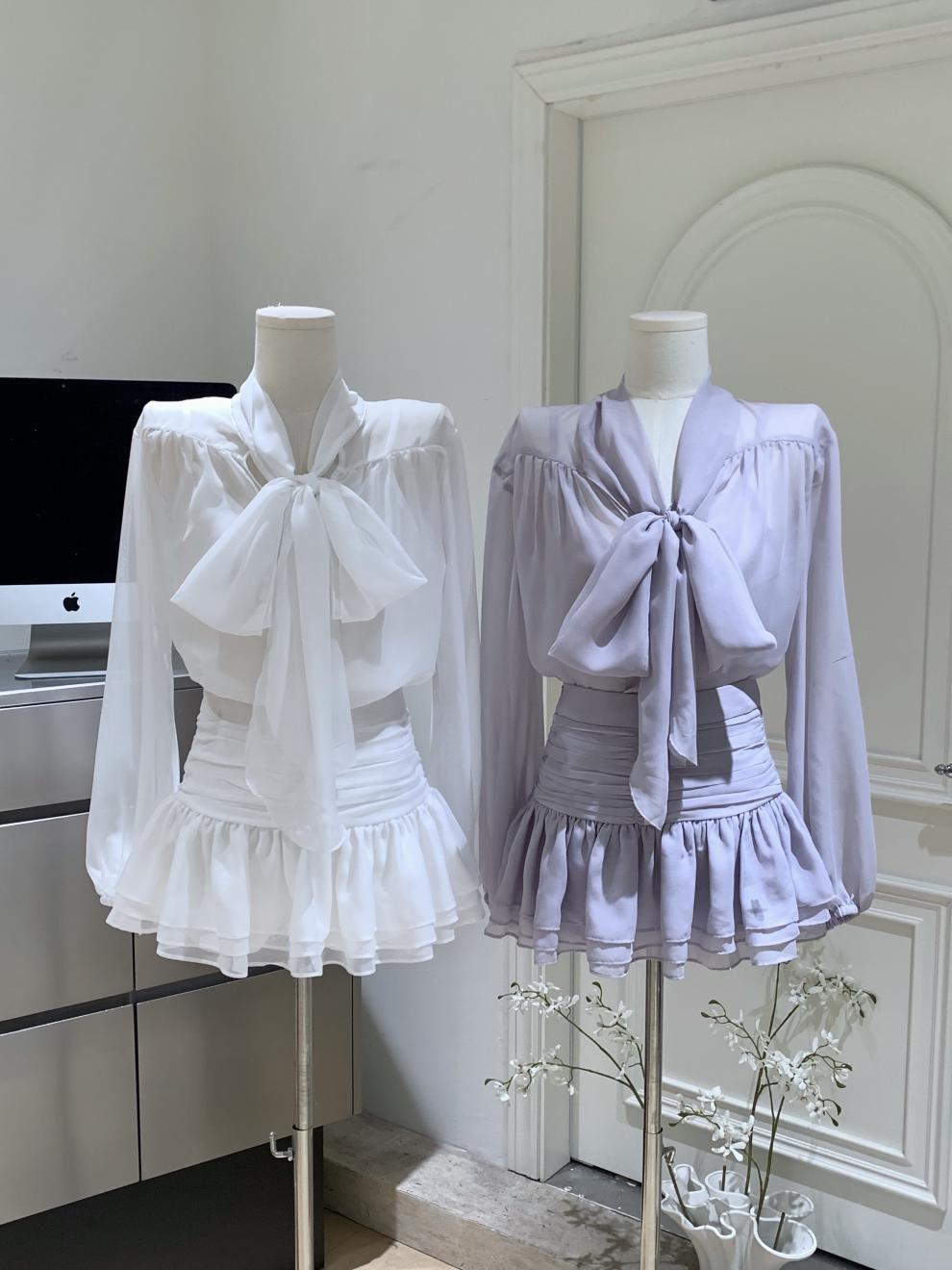 Conjunto de Dos Piezas de Camisa de Lazo Dongdaemun de Alta Gama para Mujer Coreana + Falda Slim