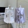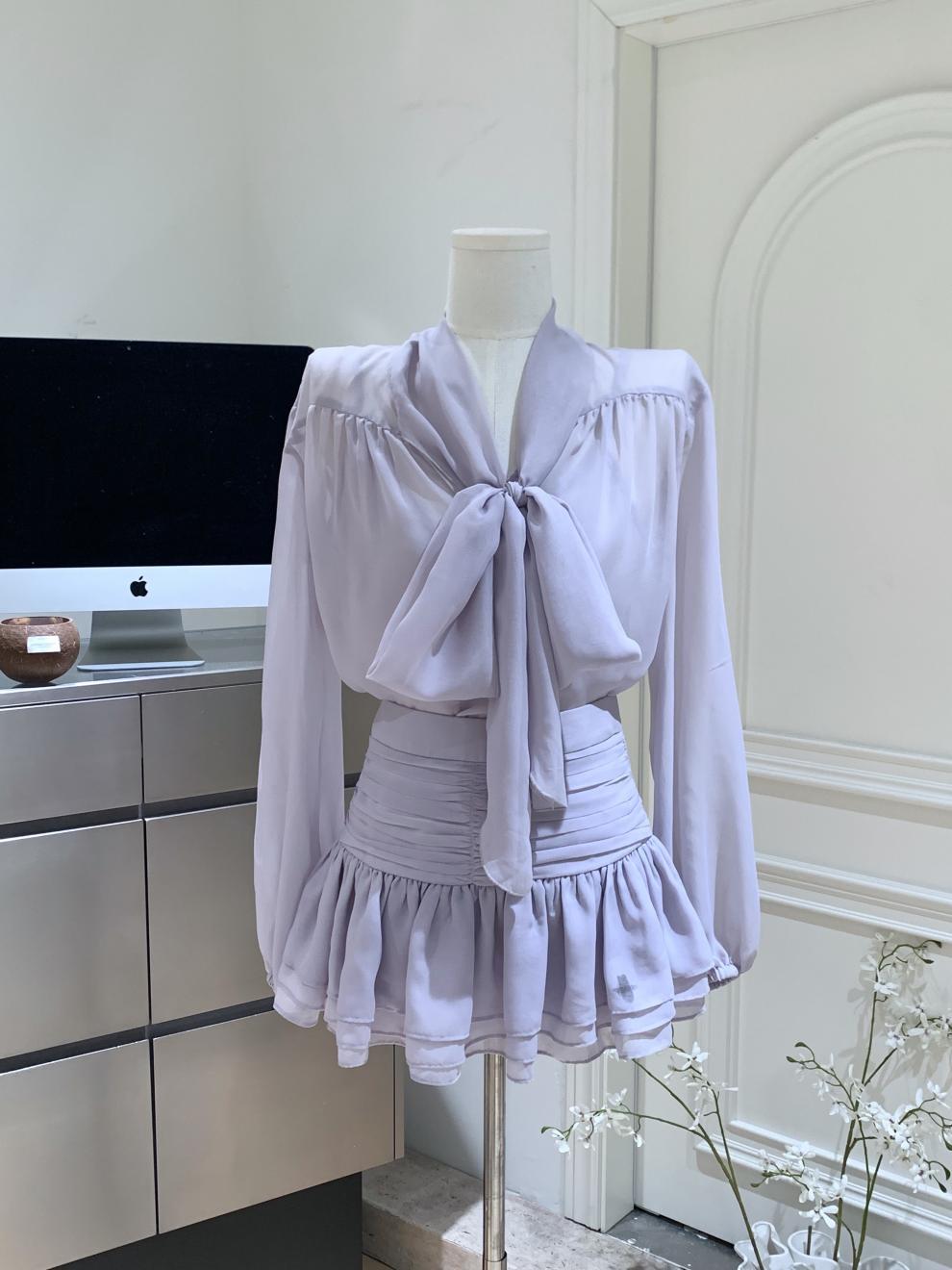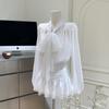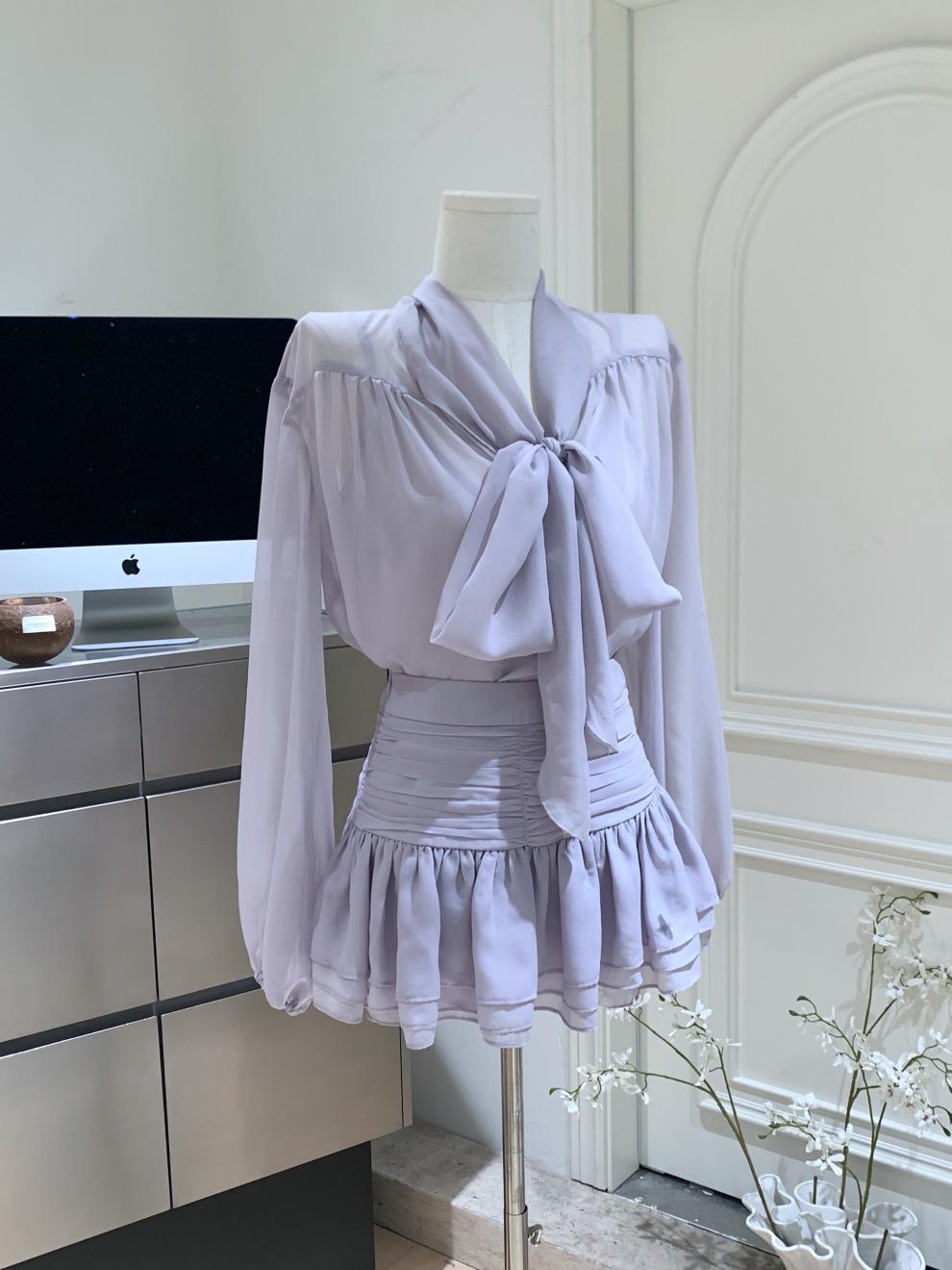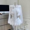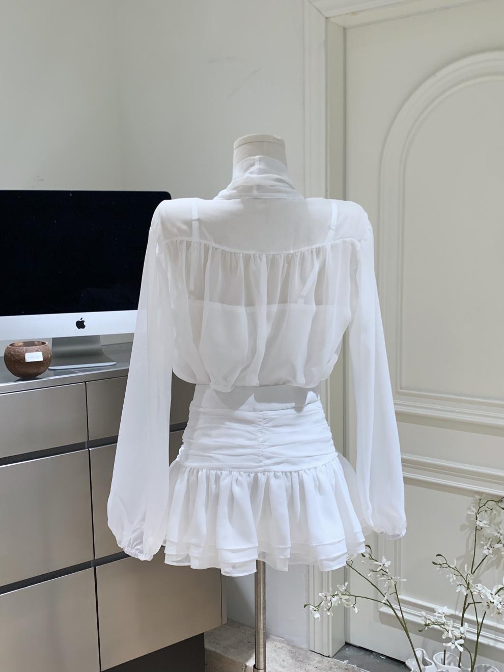 Conjunto de Dos Piezas de Camisa de Lazo Dongdaemun de Alta Gama para Mujer Coreana + Falda Slim