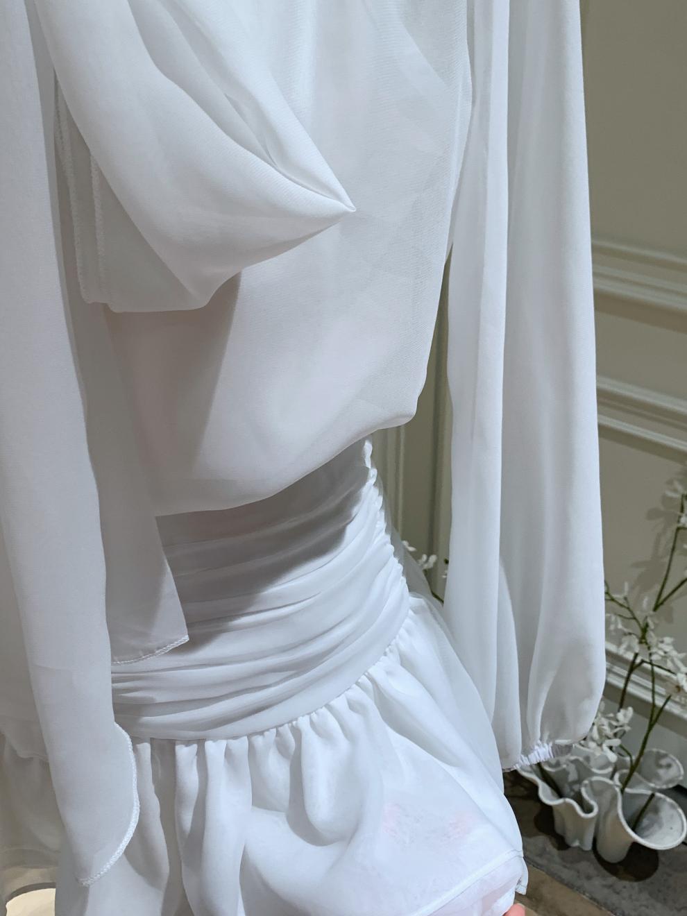 Purple top + suspenders, Purple skirt, White top + suspenders, White skirt