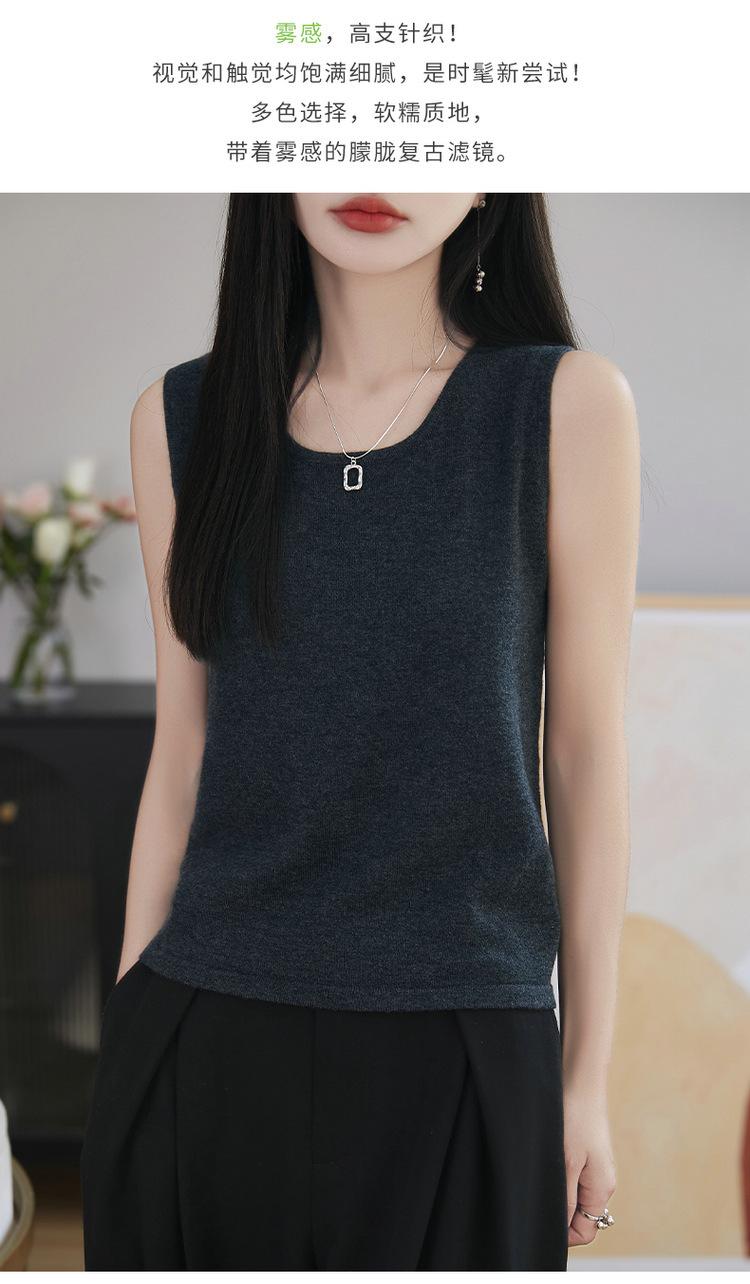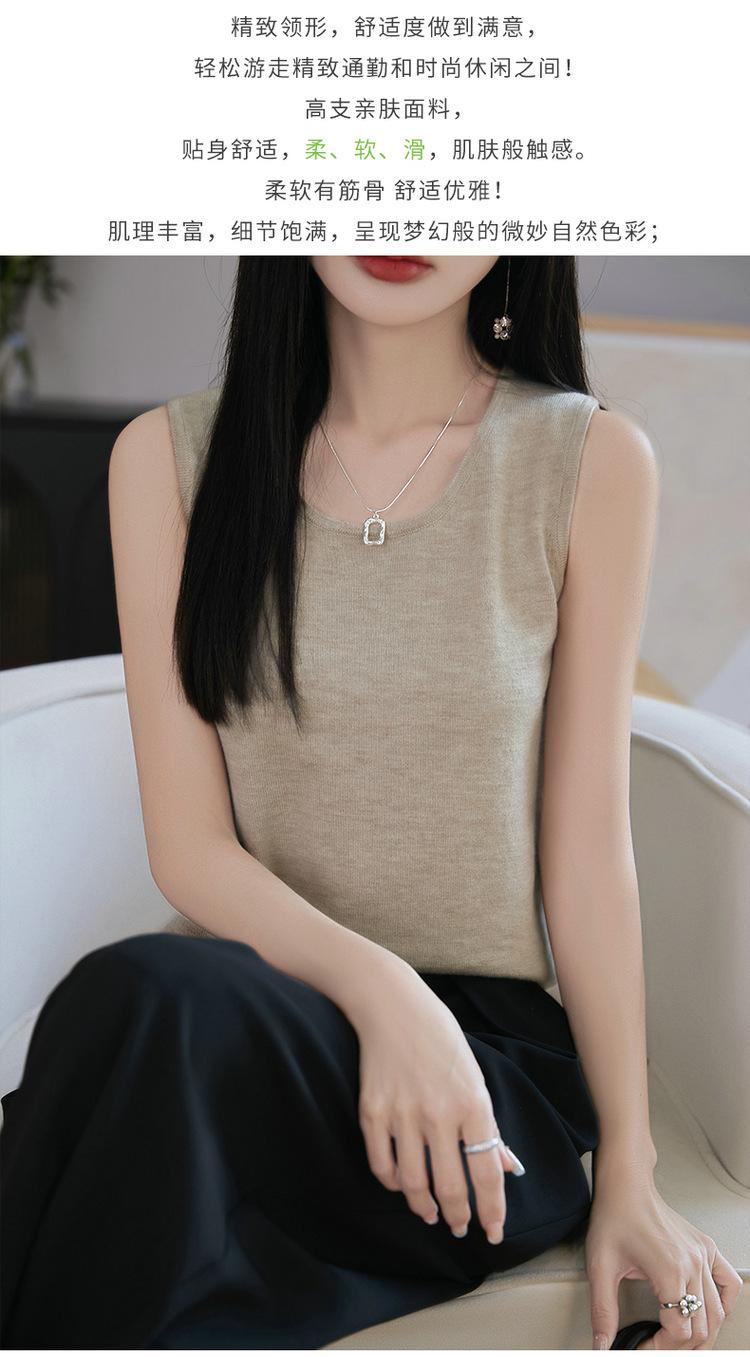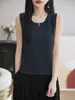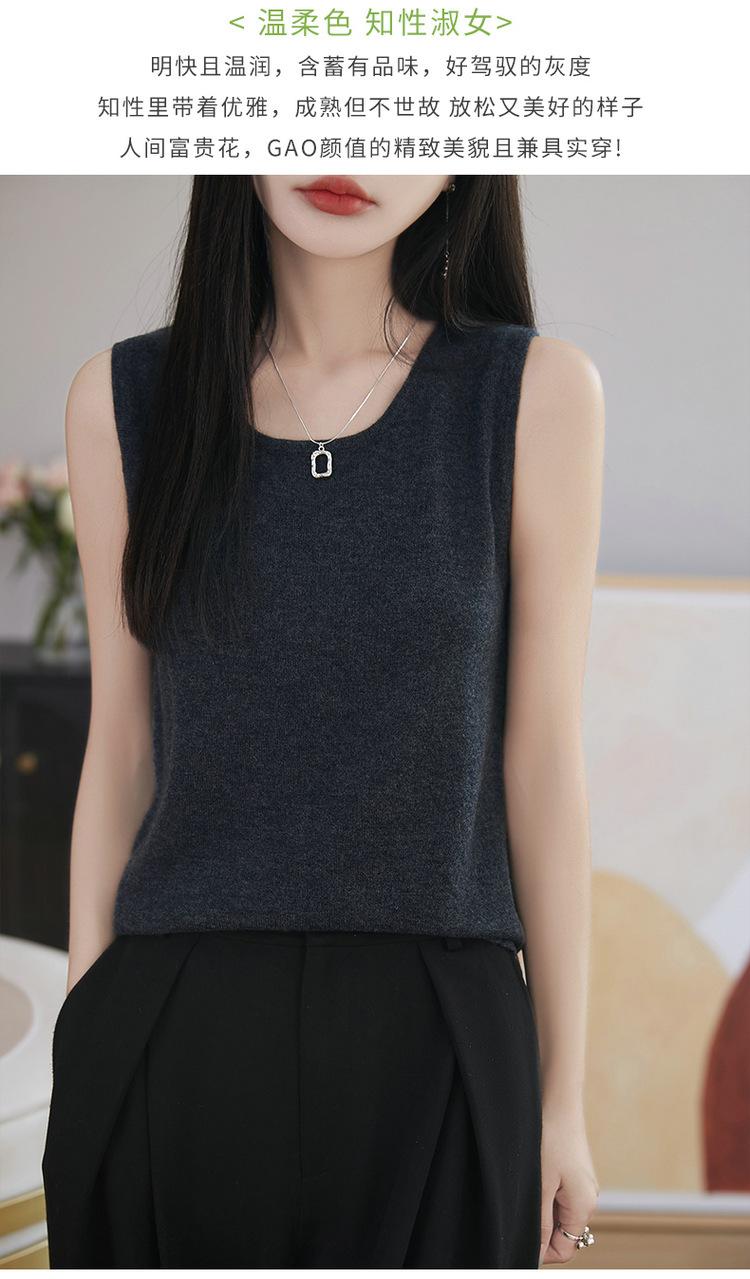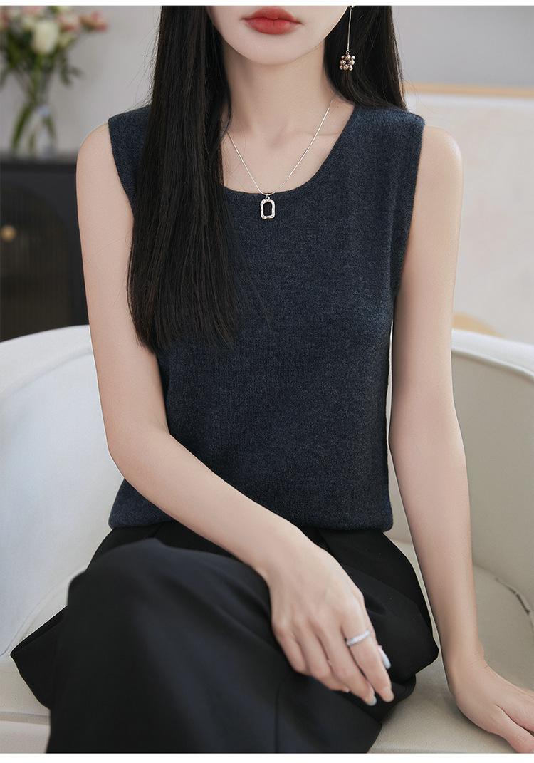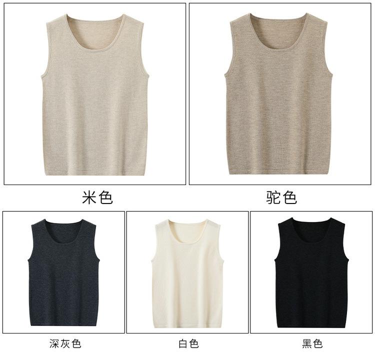 Chaleco de lana para mujer, primavera, otoño e invierno, suave, encerado, interior, ajustado, de punto, sin mangas, con cuello redondo y tirantes pequeños.