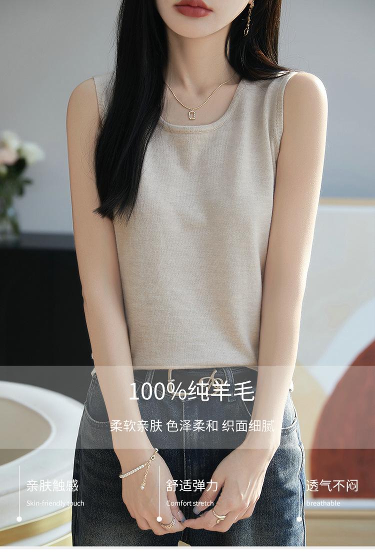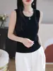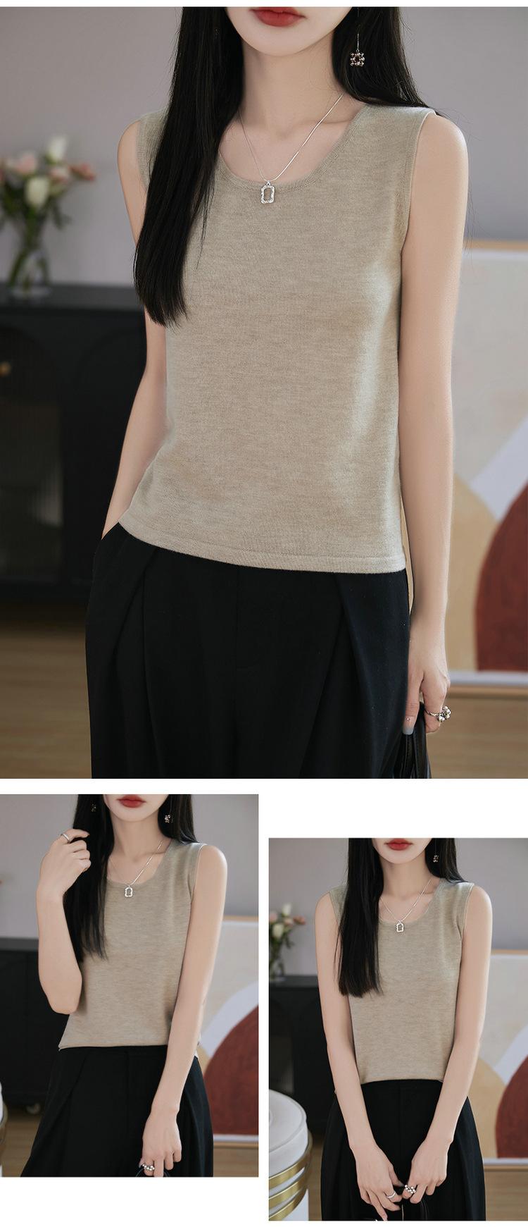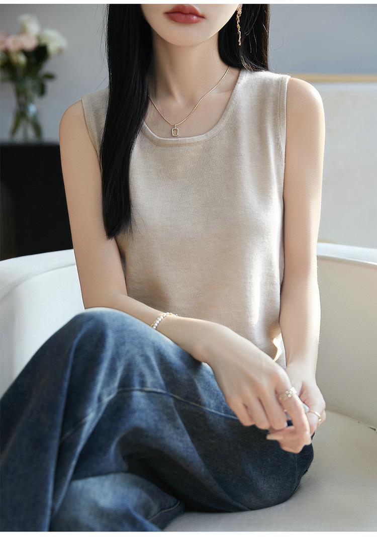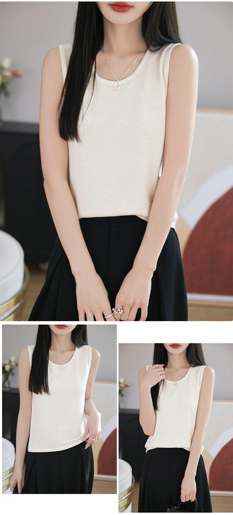 Chaleco de lana para mujer, primavera, otoño e invierno, suave, encerado, interior, ajustado, de punto, sin mangas, con cuello redondo y tirantes pequeños.