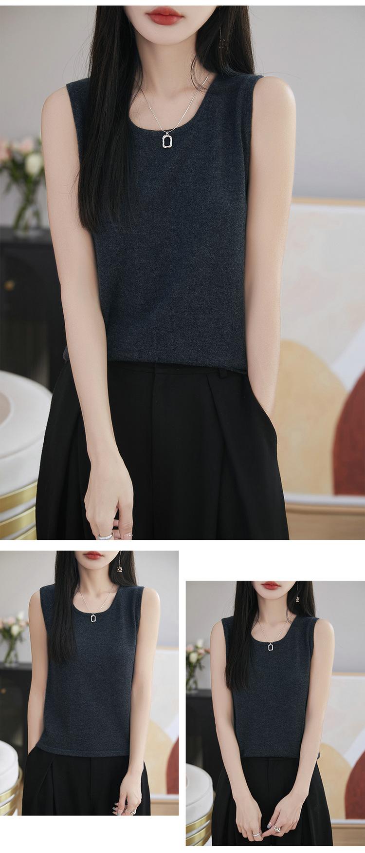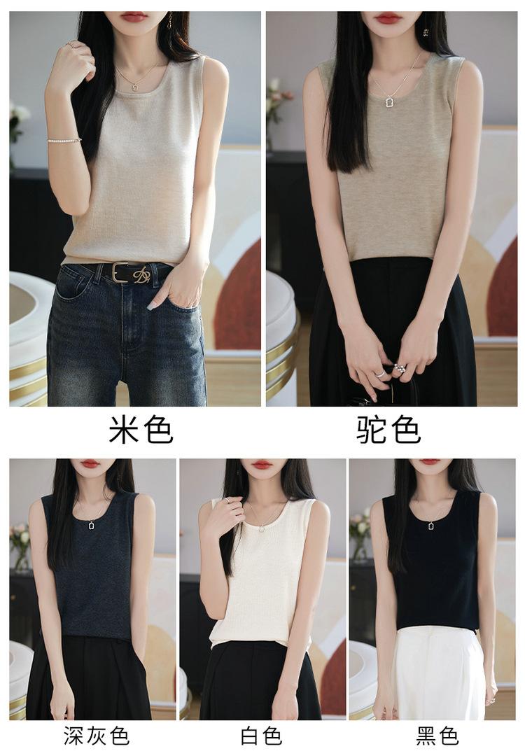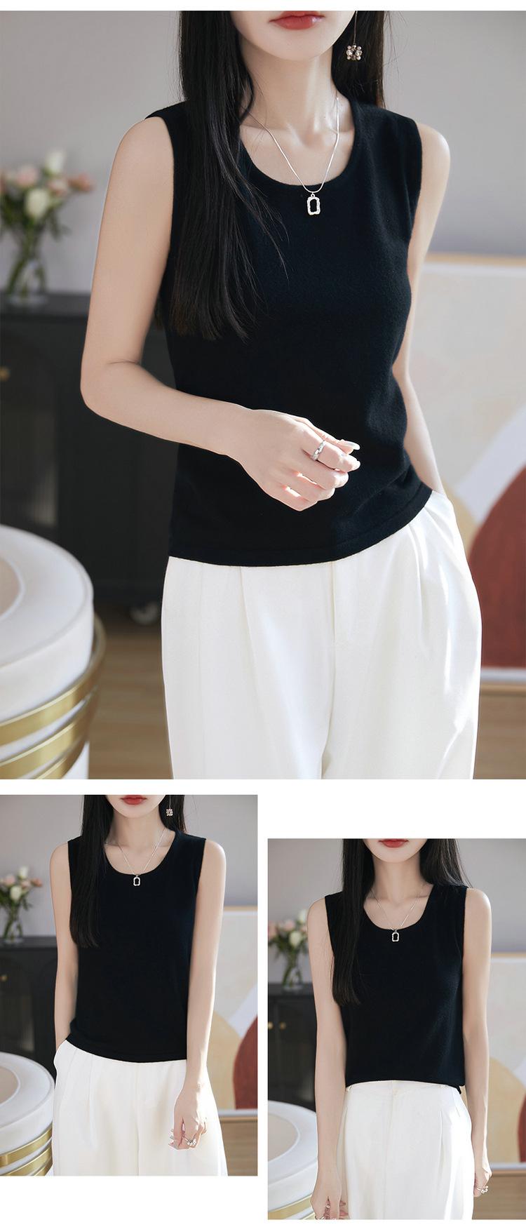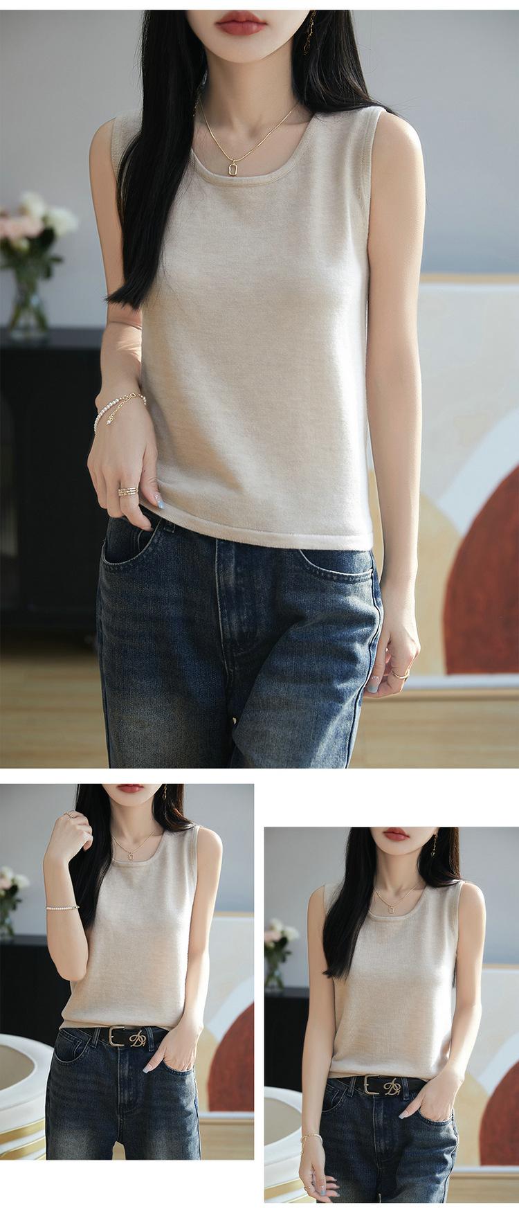 Chaleco de lana para mujer, primavera, otoño e invierno, suave, encerado, interior, ajustado, de punto, sin mangas, con cuello redondo y tirantes pequeños.