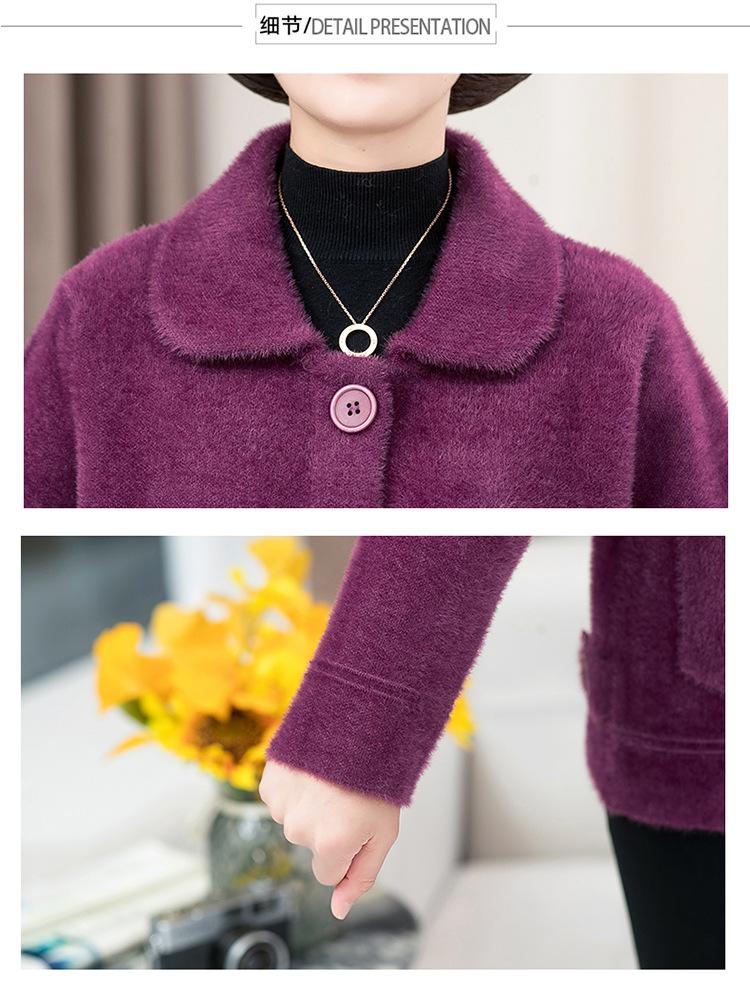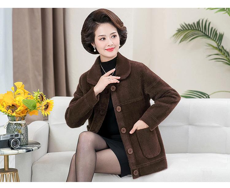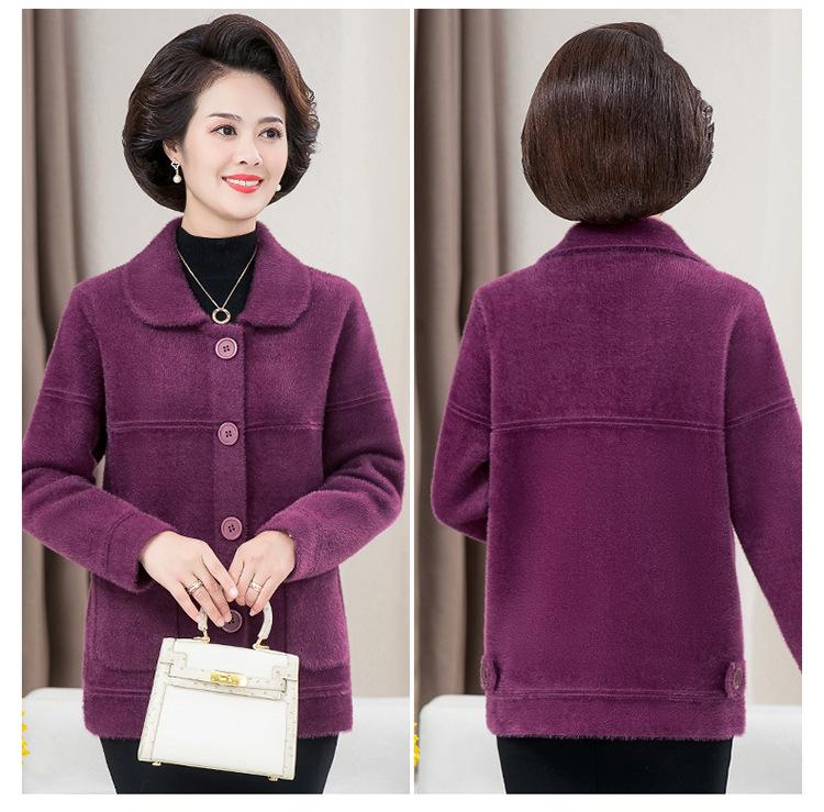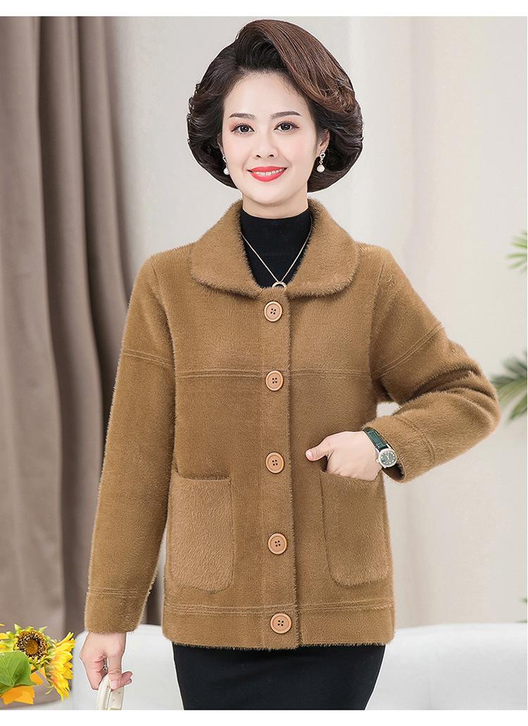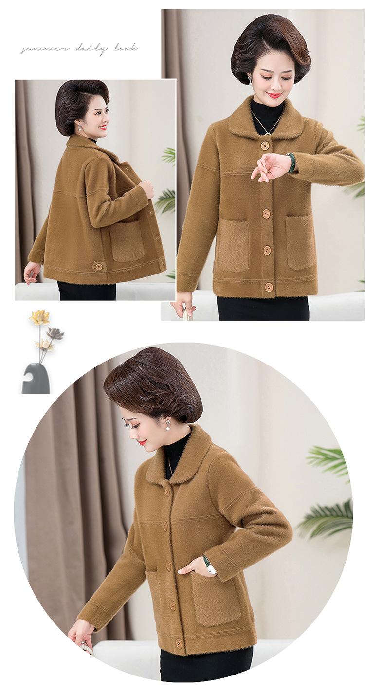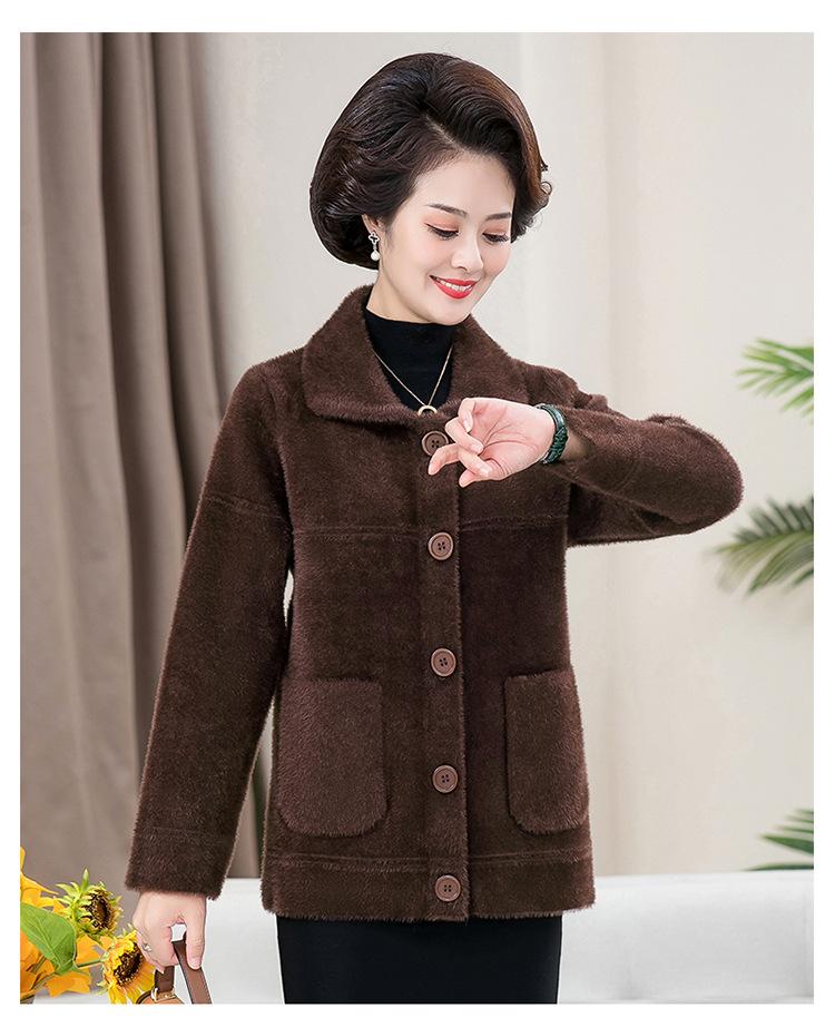 Abrigo Suelto de Visón Sintético Nuevo de Otoño e Invierno para Mujeres de Mediana Edad, Top Corto de Punto de Color Sólido Moderno para Mamá