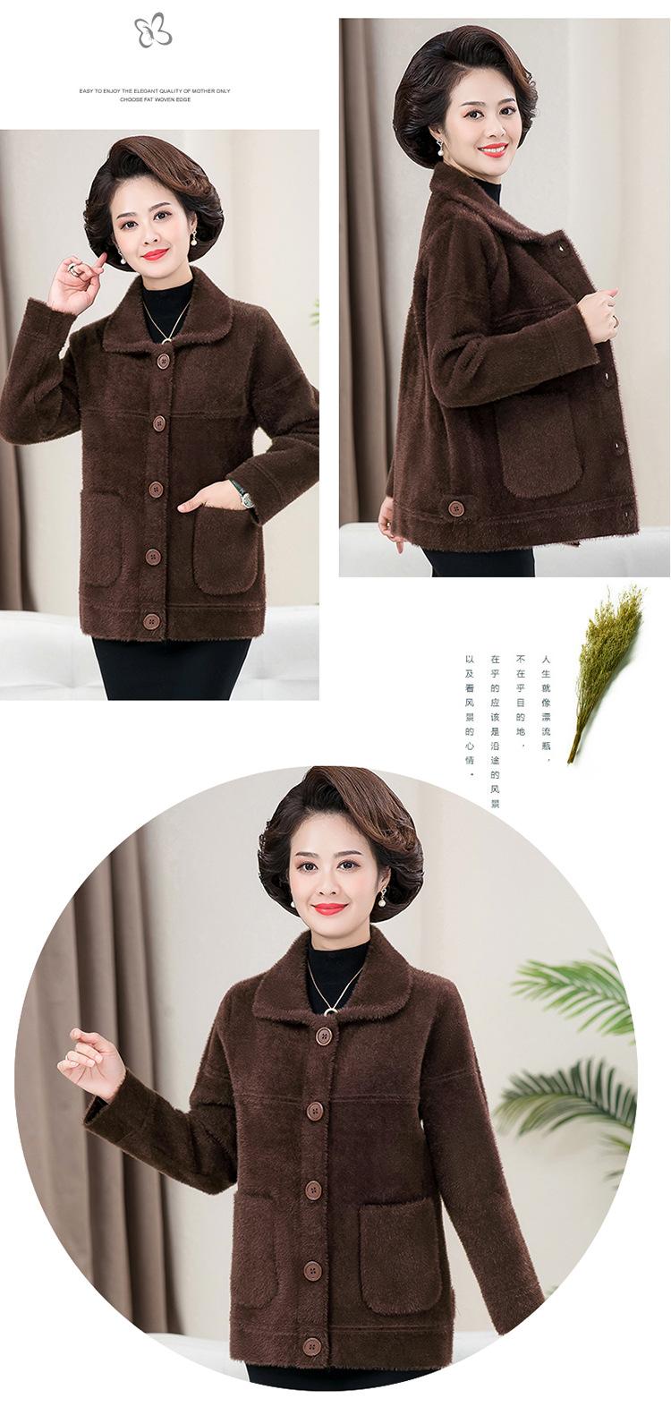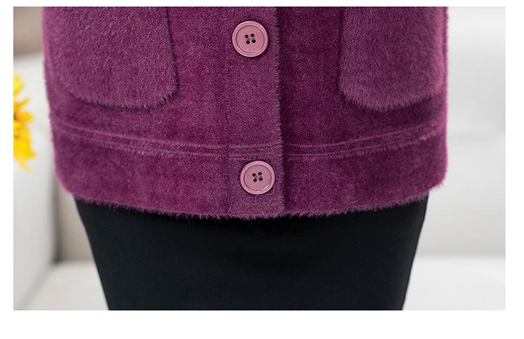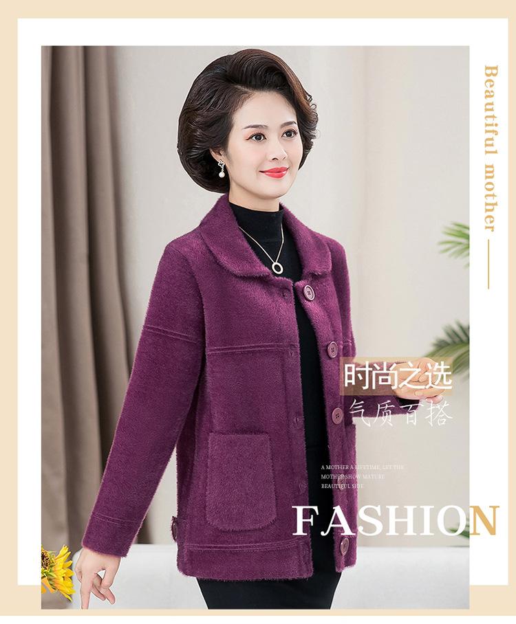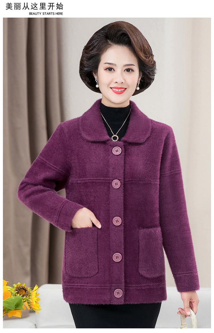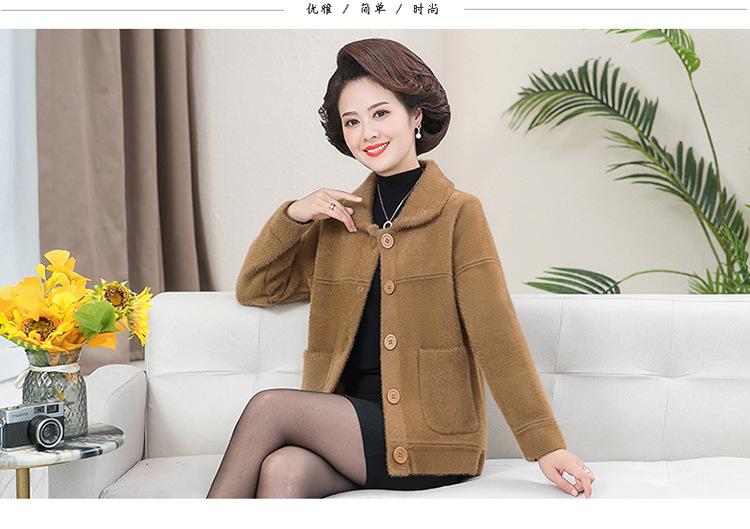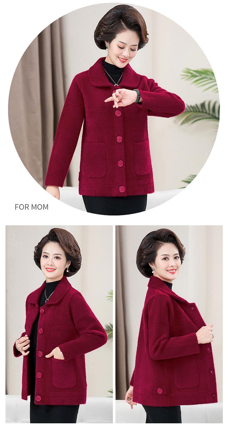Abrigo Suelto de Visón Sintético Nuevo de Otoño e Invierno para Mujeres de Mediana Edad, Top Corto de Punto de Color Sólido Moderno para Mamá