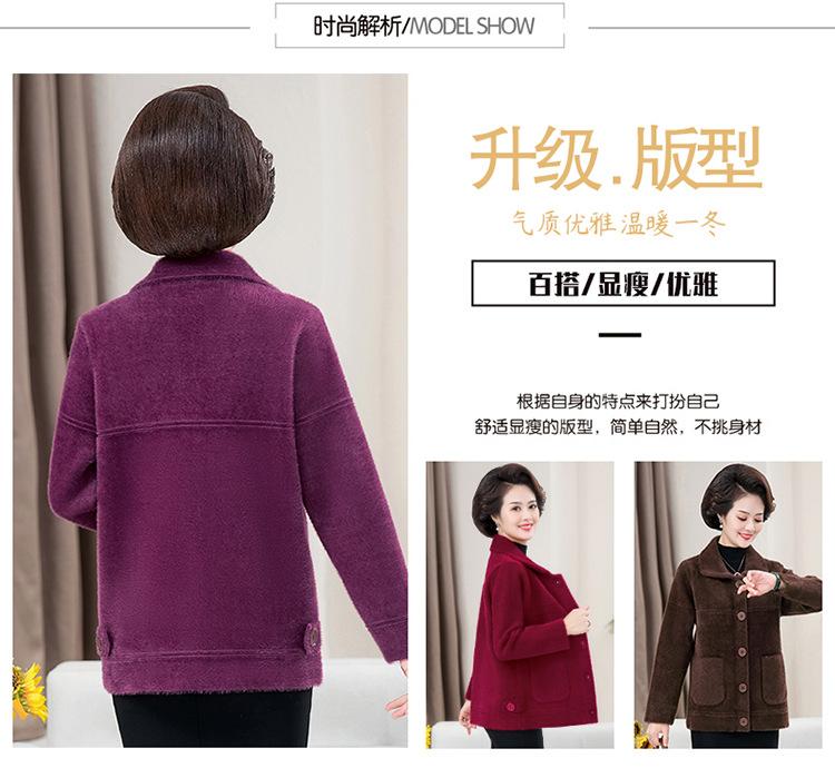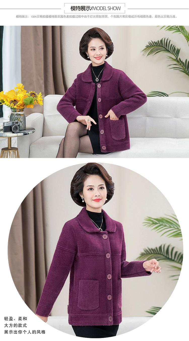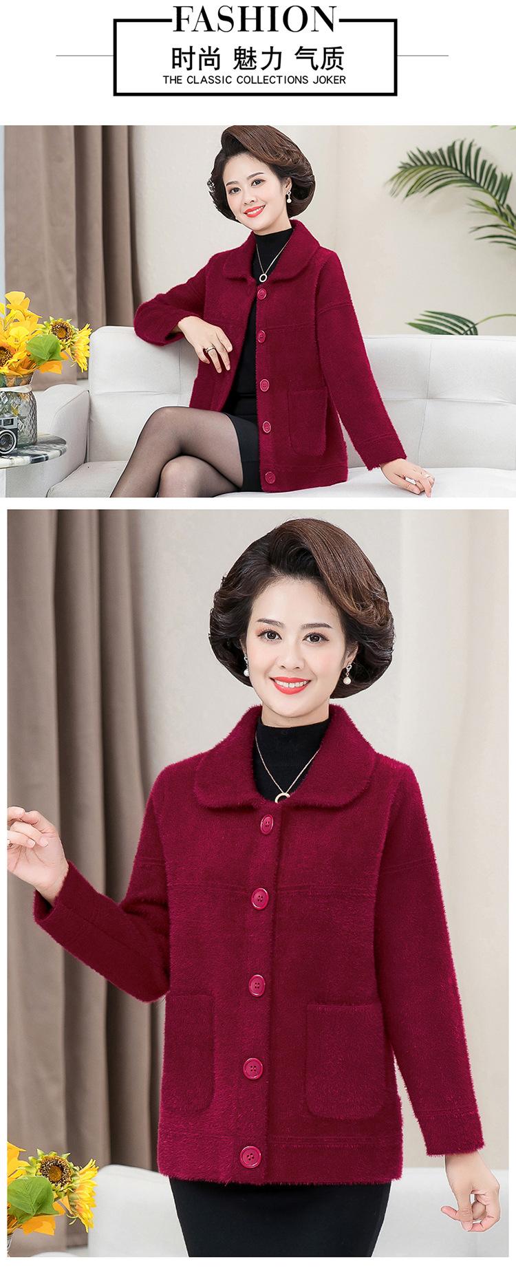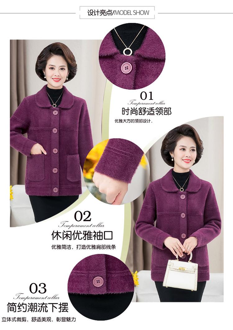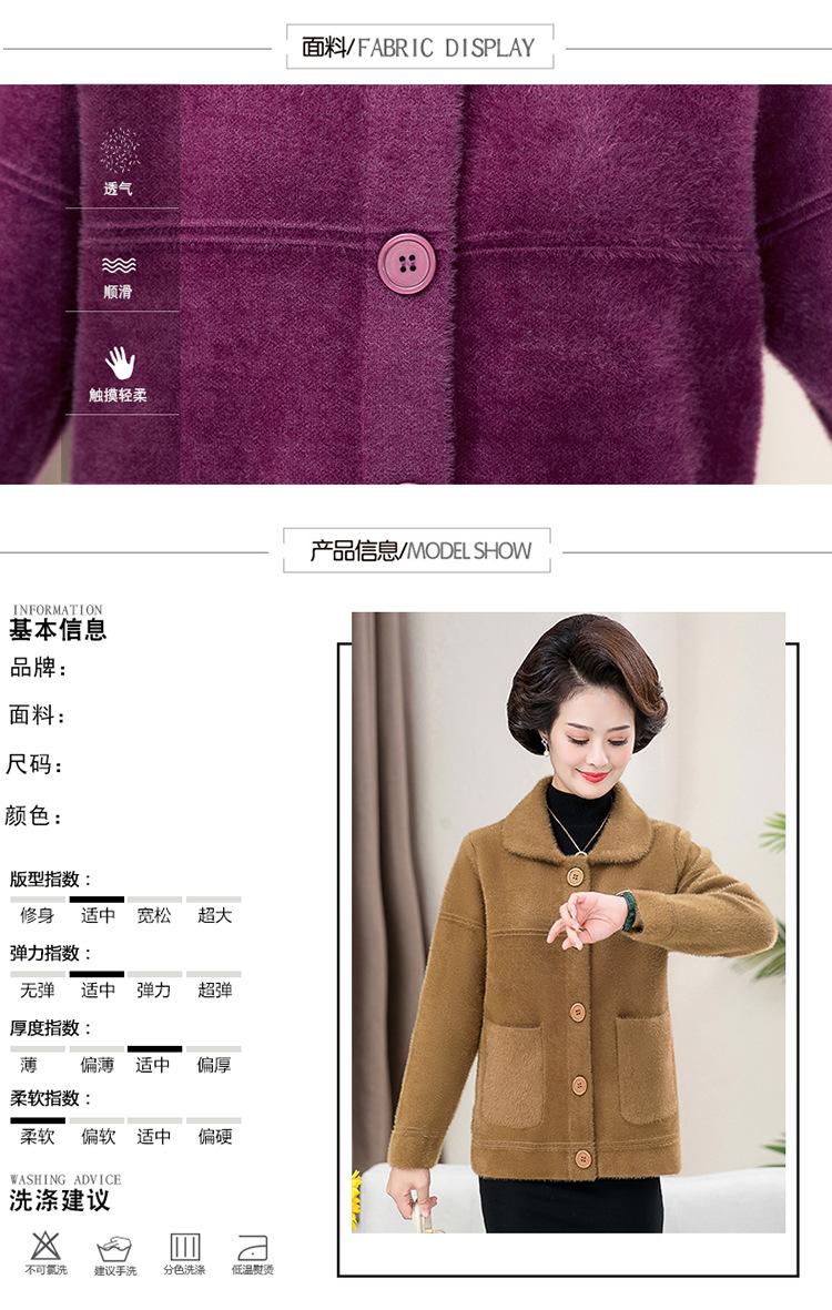 Abrigo Suelto de Visón Sintético Nuevo de Otoño e Invierno para Mujeres de Mediana Edad, Top Corto de Punto de Color Sólido Moderno para Mamá