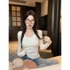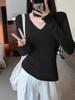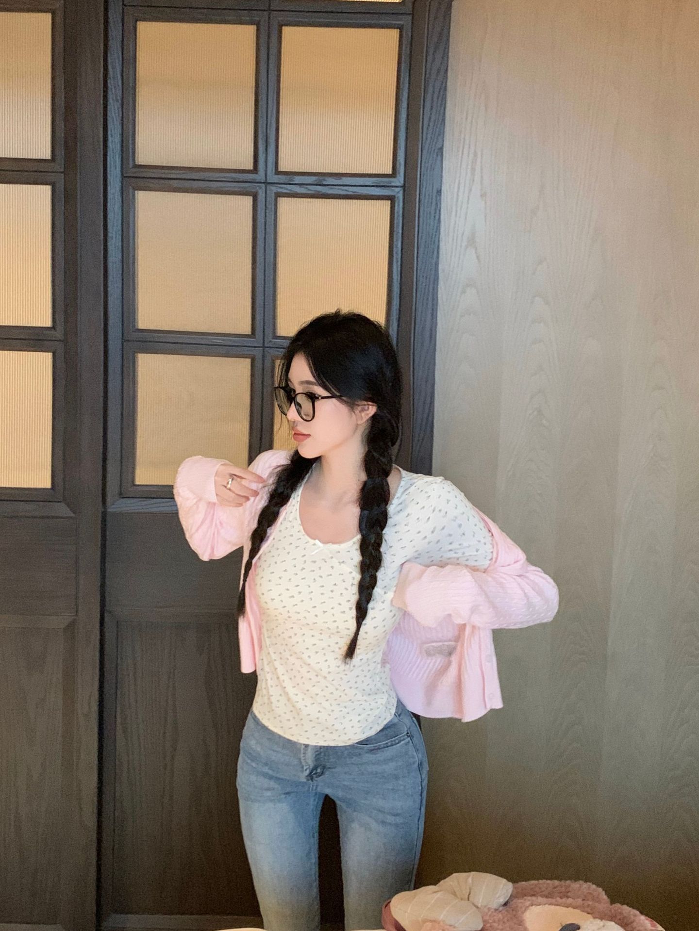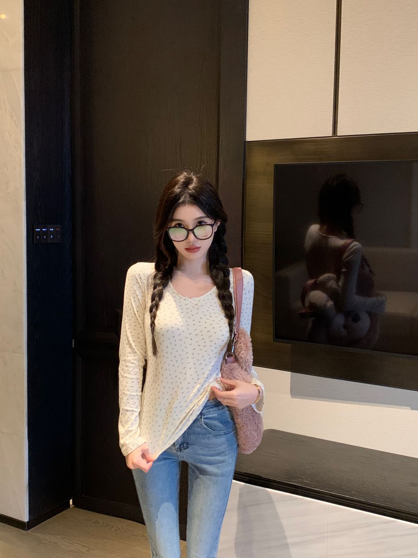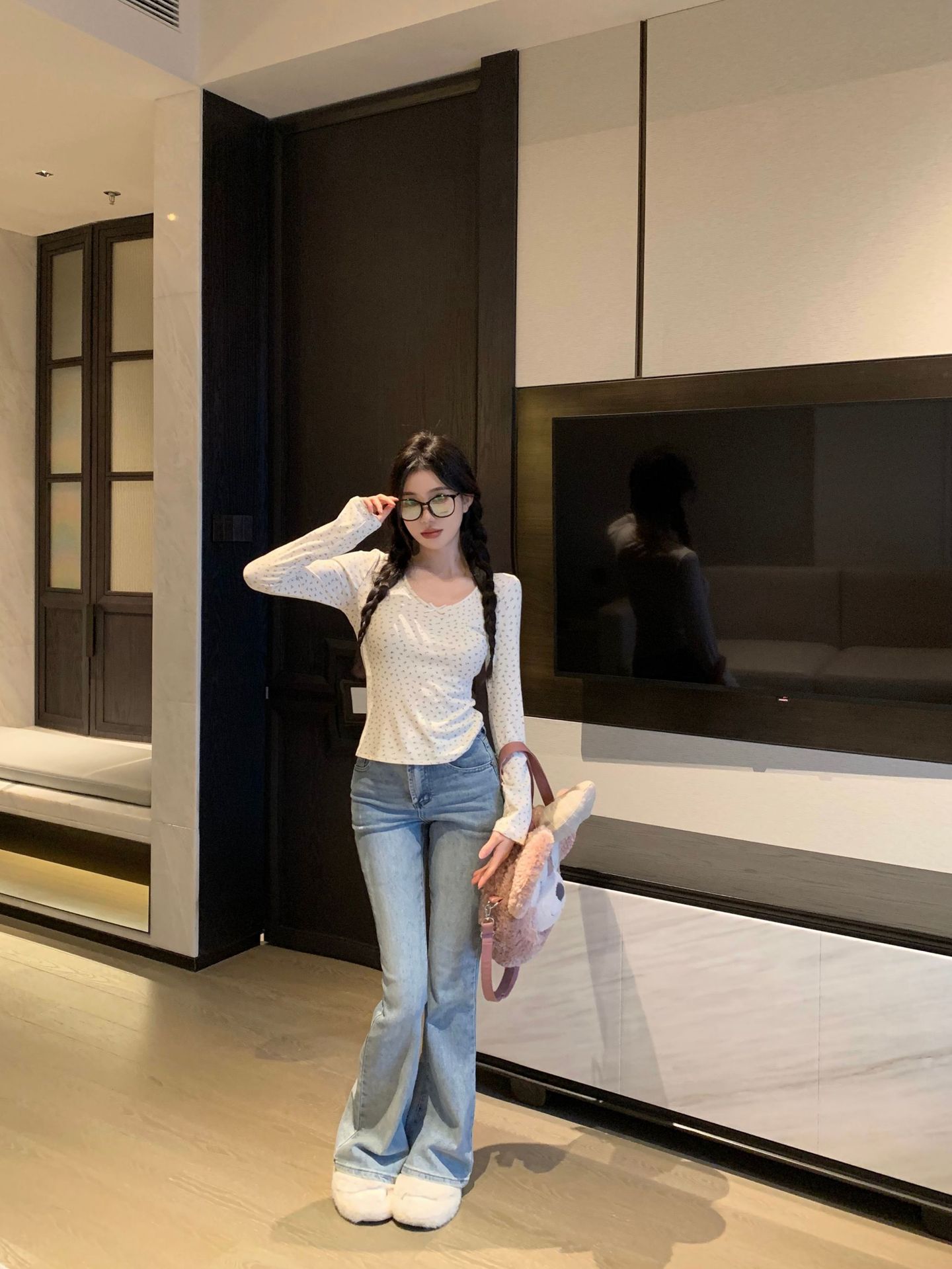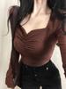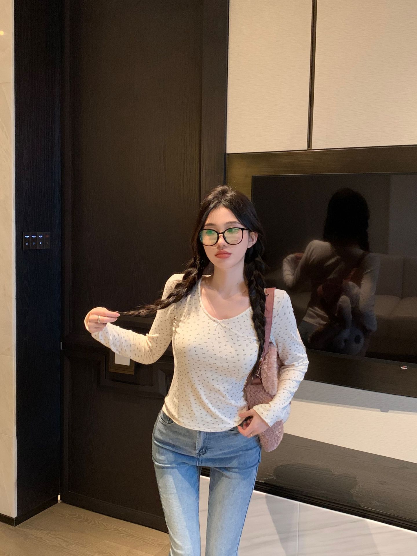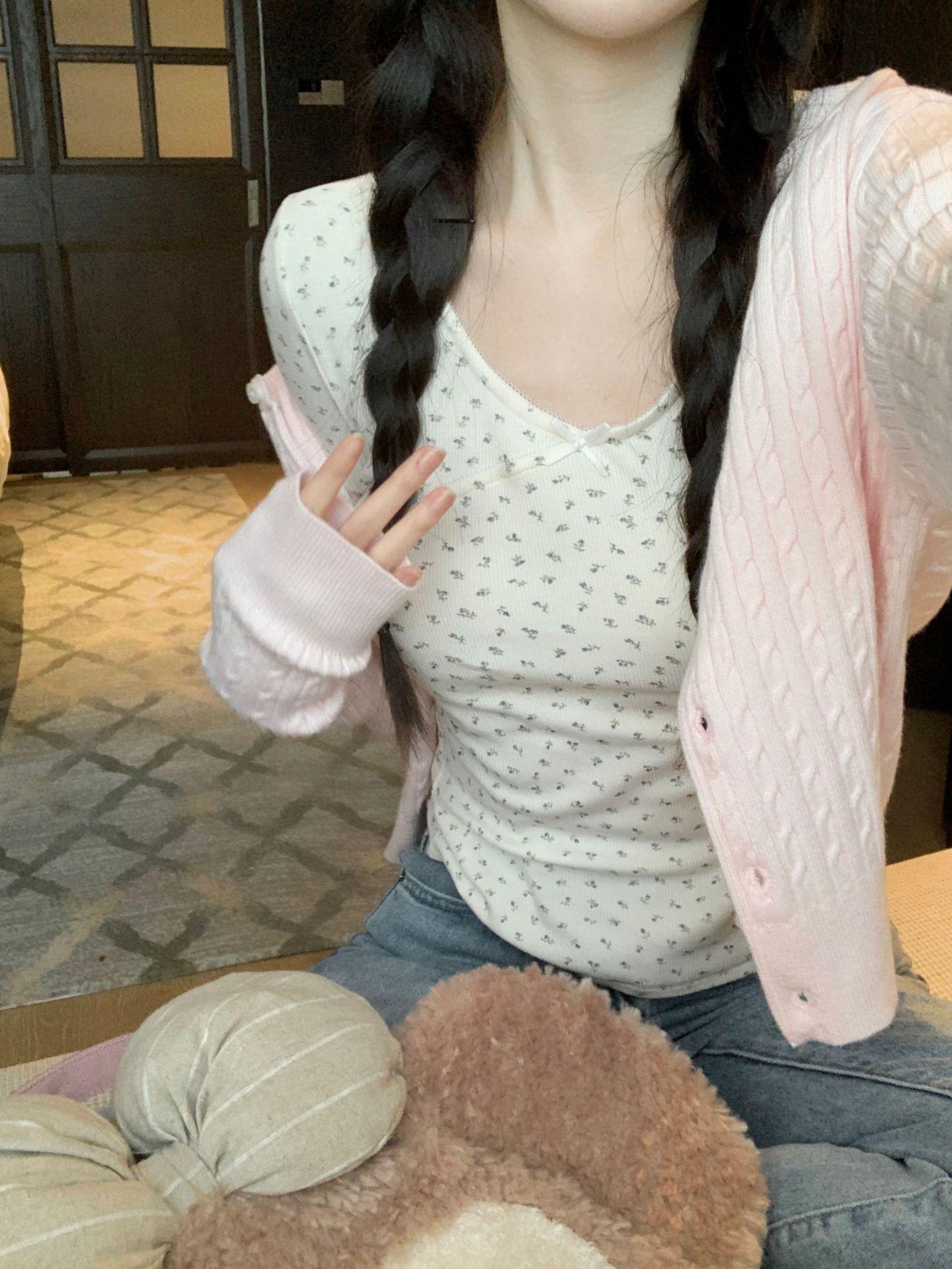 Camiseta de manga larga con lazo floral de Sweet Spice Girl, de principios de otoño, ajustada, adelgazante, Pure Desire, sexy, de nicho, de moda.