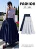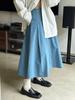 Falda Larga Casual Floral Azul Retro de Estilo Coreano para Mujer para Primavera, Otoño e Invierno, Falda A de Cintura Alta