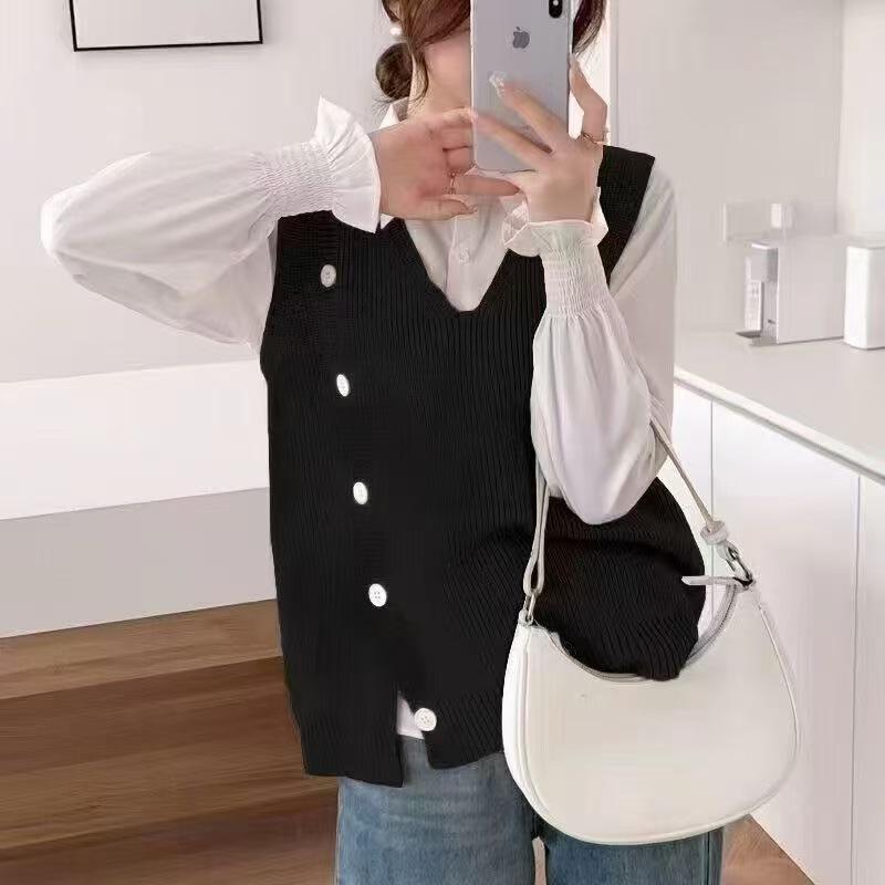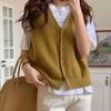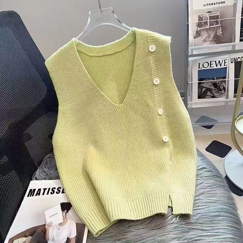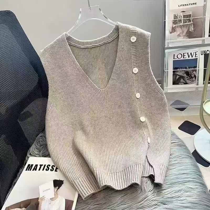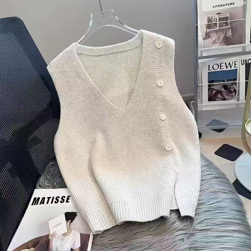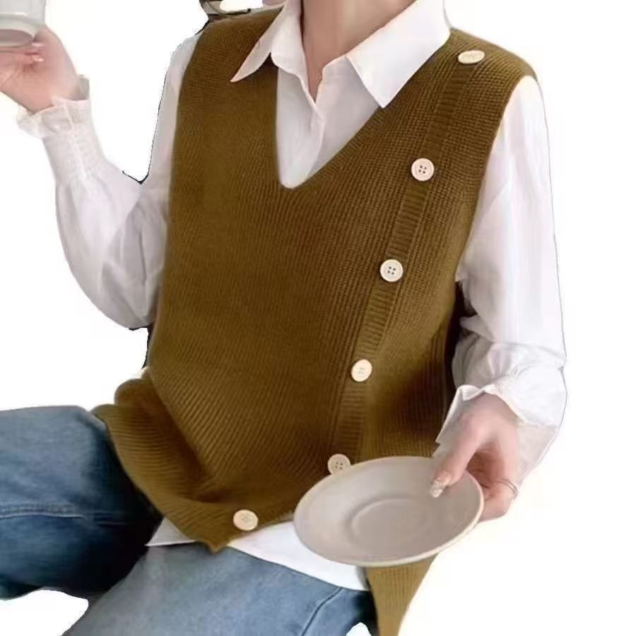 Primavera y Otoño 2025 Nuevo Estilo Académico Botón Chaleco de Punto Diseño Cuello en V Chaleco de Punto Top Chaleco para Mujer