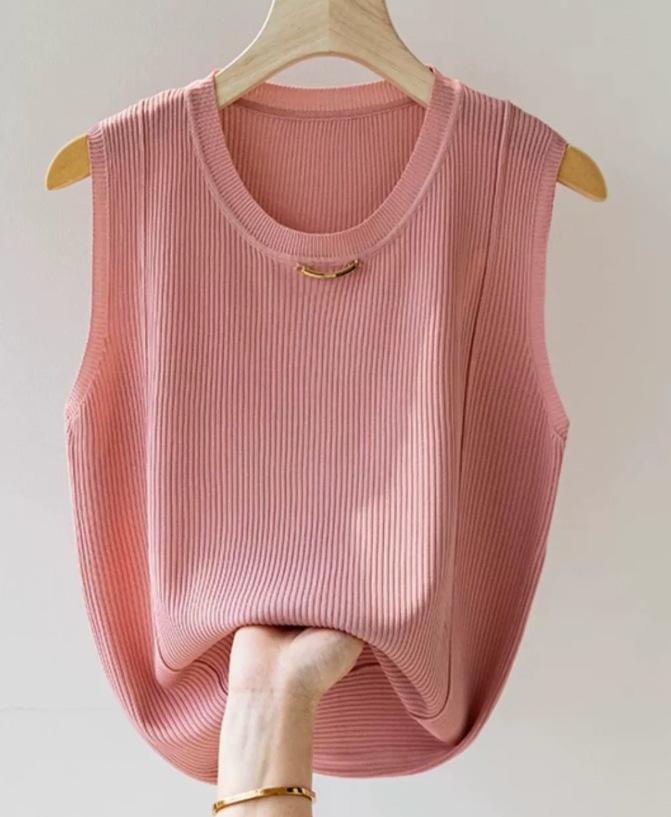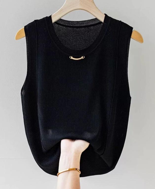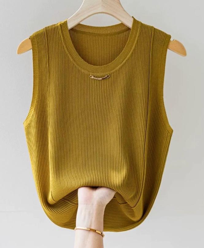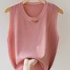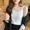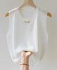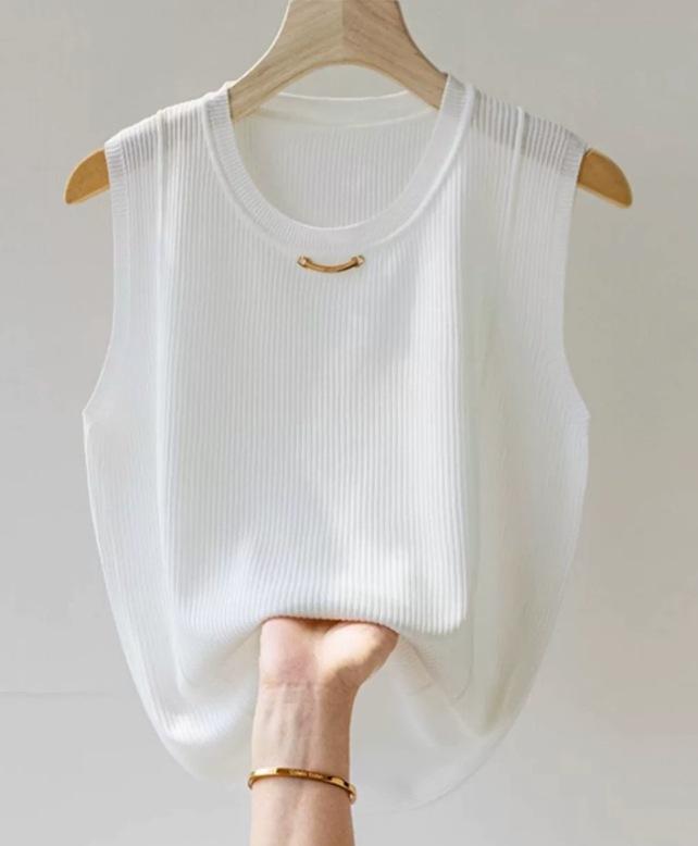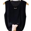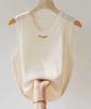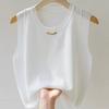 Camisola de seda de hielo para mujer, blanca, sin mangas, con base interior, holgada, a juego, para traje pequeño, de punto, nuevo estilo 2025