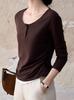 Outono 2025 Novo Design de Nicho Sense Falso Duas Peças Cor Sólida Gola Meio Aberta Botão Plissado Slim-fit Top para Mulheres