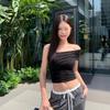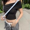 Verano 2024 Hombro Hombro Hombro Hombro Slim Look Slim Camiseta Slim Diseño Spice Girl Sense Navel Pure Desire Sexy Spice Girl Top