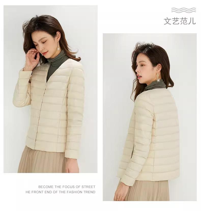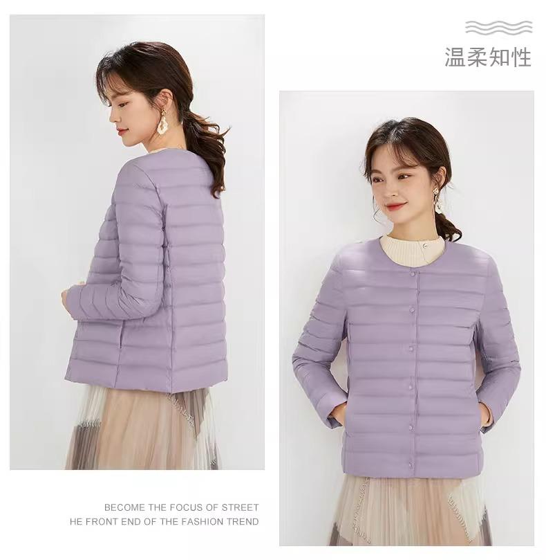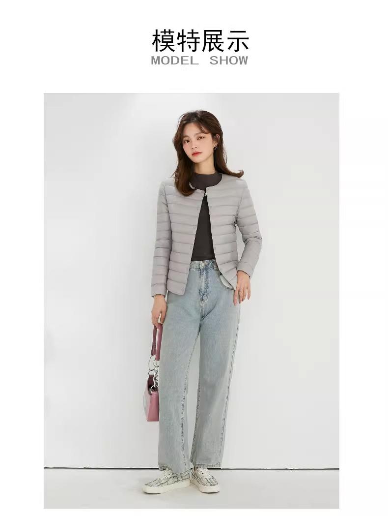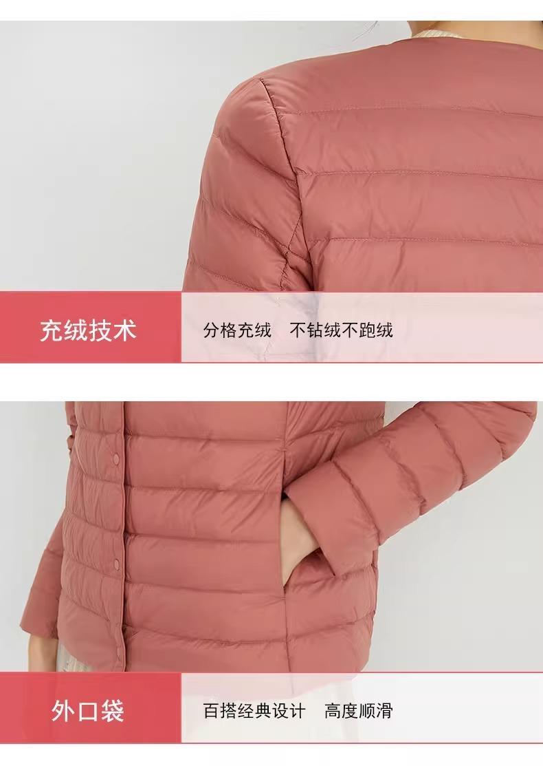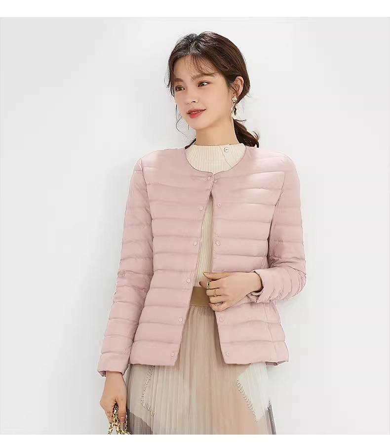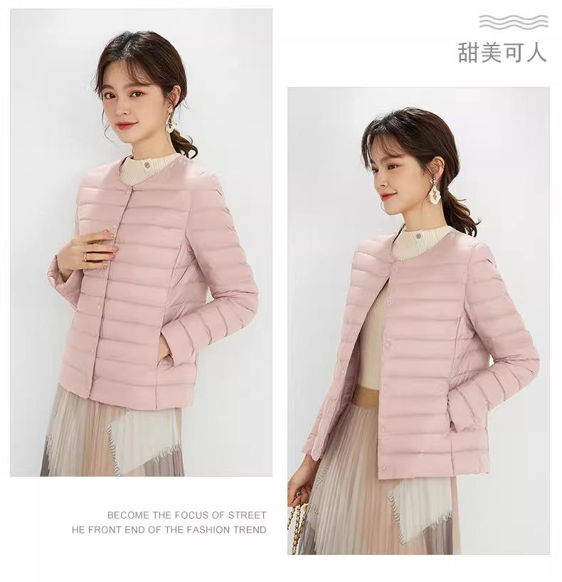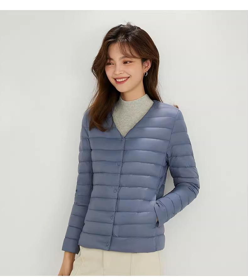 2025 Nuevo Chaqueta de Plumón Ligera 90 para Mujer Cuello Redondo Cálido Forro Corto Cuello en V Ropa de Otoño e Invierno para Mujer Sin Cuello